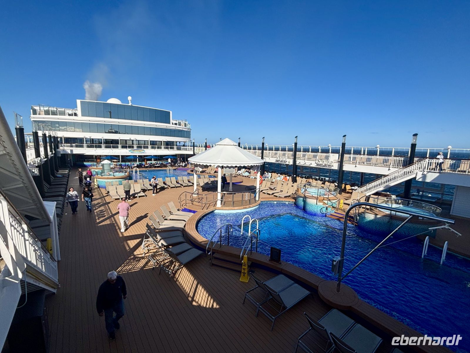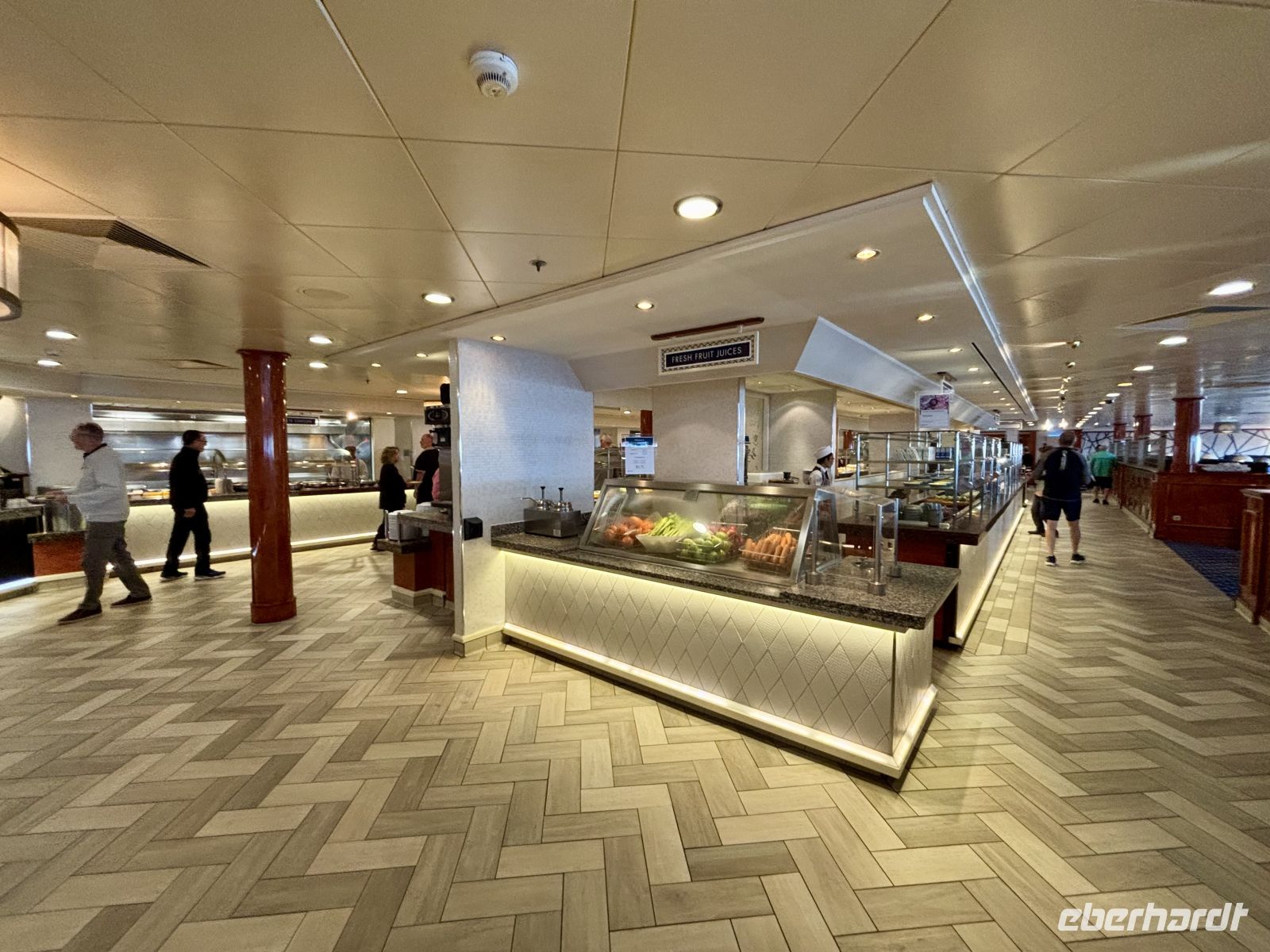 Nach den letzten Tagen unserer Rundreise mit ihrem vollem Programm und einer Fülle neuer Eindrücke haben wir uns einen Erholungstag redlich verdient. So lassen wir heute „die Seele baumeln“. Wir genießen das Schiff mit all seinen Angeboten, verbringen Zeit an Deck und Zunächst geht es auf Entdeckungstour, um all die 15 Decks mit ihrem überwältigendem Angebot an Restaurants und Cafés, an Bars und Shops, Fitnesscentern, Volleyball- und Tennisplatz, Spa und Pools, Theater und Entertainment, Bibliothek und Kapelle zu entdecken. Die Sonne scheint und wir genießen Blick auf Kanadas Ostküste. Vielleicht erspähen wir einen Wal oder zumindest Delfine? Im Buffet-Restaurant wird zum Abendessen sogar eine gemütliche Runde extra für uns reserviert. Hier tauschen wir lebhaft die Erlebnisse des Tages aus und überlegen, zu welcher Veranstaltung, Konzert, Vorführung oder Bar wir im Anschluss gehen…