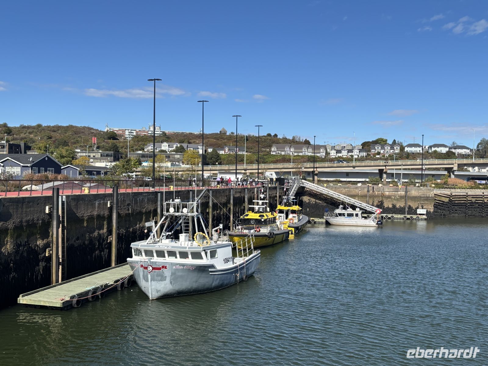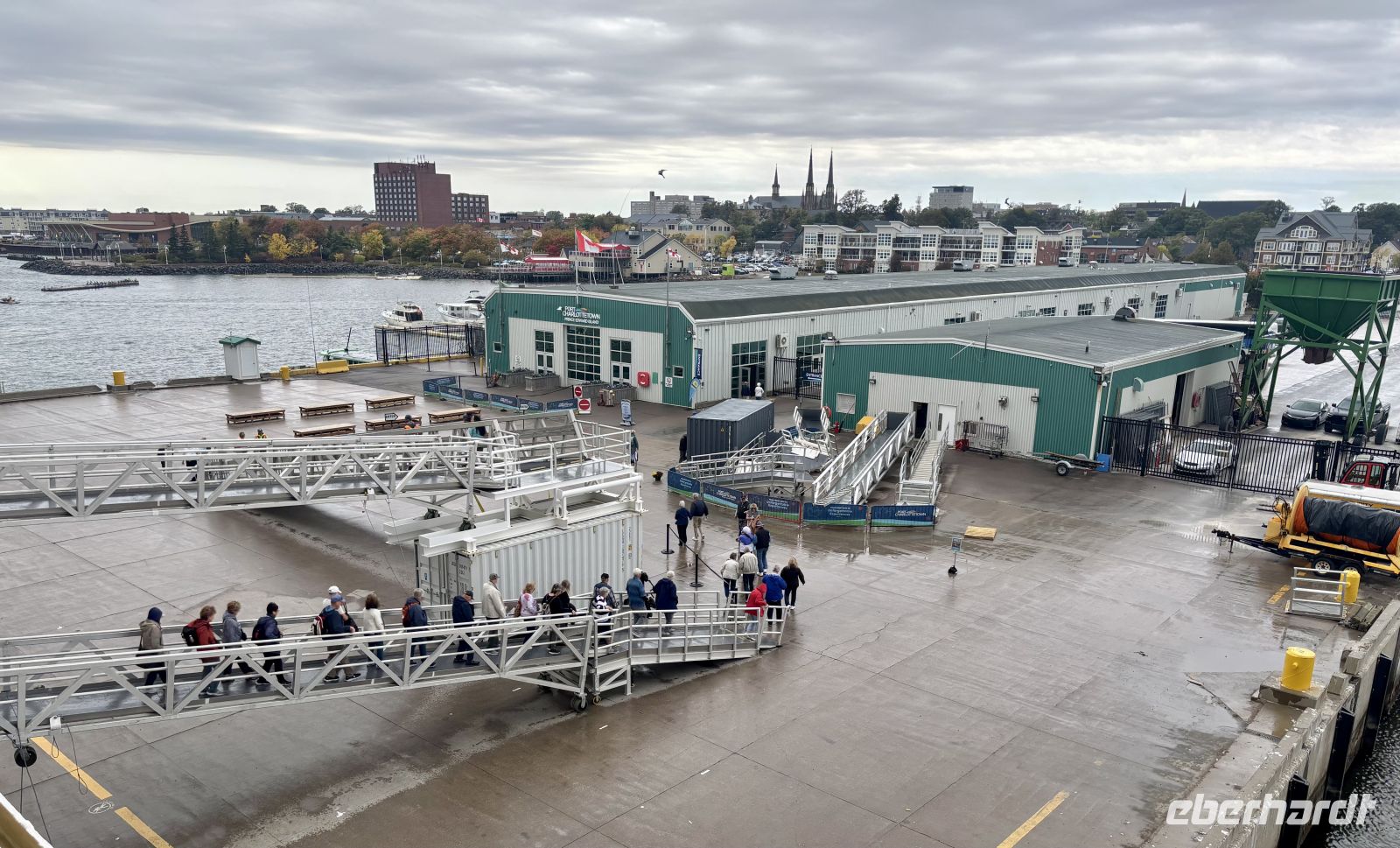 Dramatisch und stürmisch ist die Bucht von Fundy in New Brunswick, einer der atlantischen Provinzen Kanadas, die sich im Osten des Landes zwischen der Bay of Fundy, dem Sankt-Lorenz-Golf und der US-Grenze zu Maine erstreckt. Es ist nicht so bekannt wie Nova Scotia oder Prince Edward Island, sondern eher ein Geheimtipp für alle Naturliebhaber. Dichte Wälder, wilde Küsten und charmante kleine Städte prägen diesen Landstrich. Einige Gäste gehen auf die weite Fahrt nach Hopewell Rocks. Man kann hier die höchsten Gezeiten der Welt erleben, denn zweimal täglich steigt und fällt das Wasser um bis zu 16 Meter – ein Spektakel, das die Kräfte der Natur eindrucksvoll zur Schau stellt. Bei Ebbe taucht eine bizarre Welt auf: Der Ozean zieht sich zurück und gibt den Meeresboden frei, während die berühmten Felsformationen wie riesige Pilze aus dem nassen Sand ragen. Saint John mit seinen 70.000 Einwohnern ist ein Ort, an dem sich Geschichte und moderne Lebensart vermischen. An alte Zeiten erinnern die zahlreichen Leuchtfeuer an der Hafenmole und auch die backsteinernen Fassaden der ehemaligen Speicher und Kontore existieren noch. Die restaurierten viktorianischen Villen des Stadtzentrums erzählen von der Blütezeit des Holz- und Schiffbaus, während in den Gassen kleine Brauereien, Cafés und Boutiquen zum Bummeln einladen. Hier finden wir auch den ältesten Bauernmarkt Nordamerikas, den Saint John City Market, über ihm schwebt eine Duftwolke von frisch geräuchertem Lachs, hausgemachtem Ahornsirup und frischgebackenem Bannock-Brot. Gouda mit Kreuzkümmel und andere Käsesorten, Obst und Gemüse jeder Art sowie als „Spezialitäten der Region“ eingelegte junge Farntriebe, Hummer-Antipasto und Lappentang-Flocken kann man hier kaufen. Auch einige lokale Künstler sind in der Markthalle bei ihrer Arbeit anzutreffen. Schön ist ein Spaziergang entlang der Hafenpromenade Harbour Passage, die auch am neuen Marketsquare vorbeiführt. Bunt und fröhlich ist das kleine Containerdorf direkt am Terminal, lokales Kunsthandwerk, Souvenirs und typische Leckereien wie die Beavertails werden hier in entspannter Atmosphäre angeboten. Dies ist unser letzter kanadischer Hafen, morgen sind wir gespannt auf die Einreise in die USA.