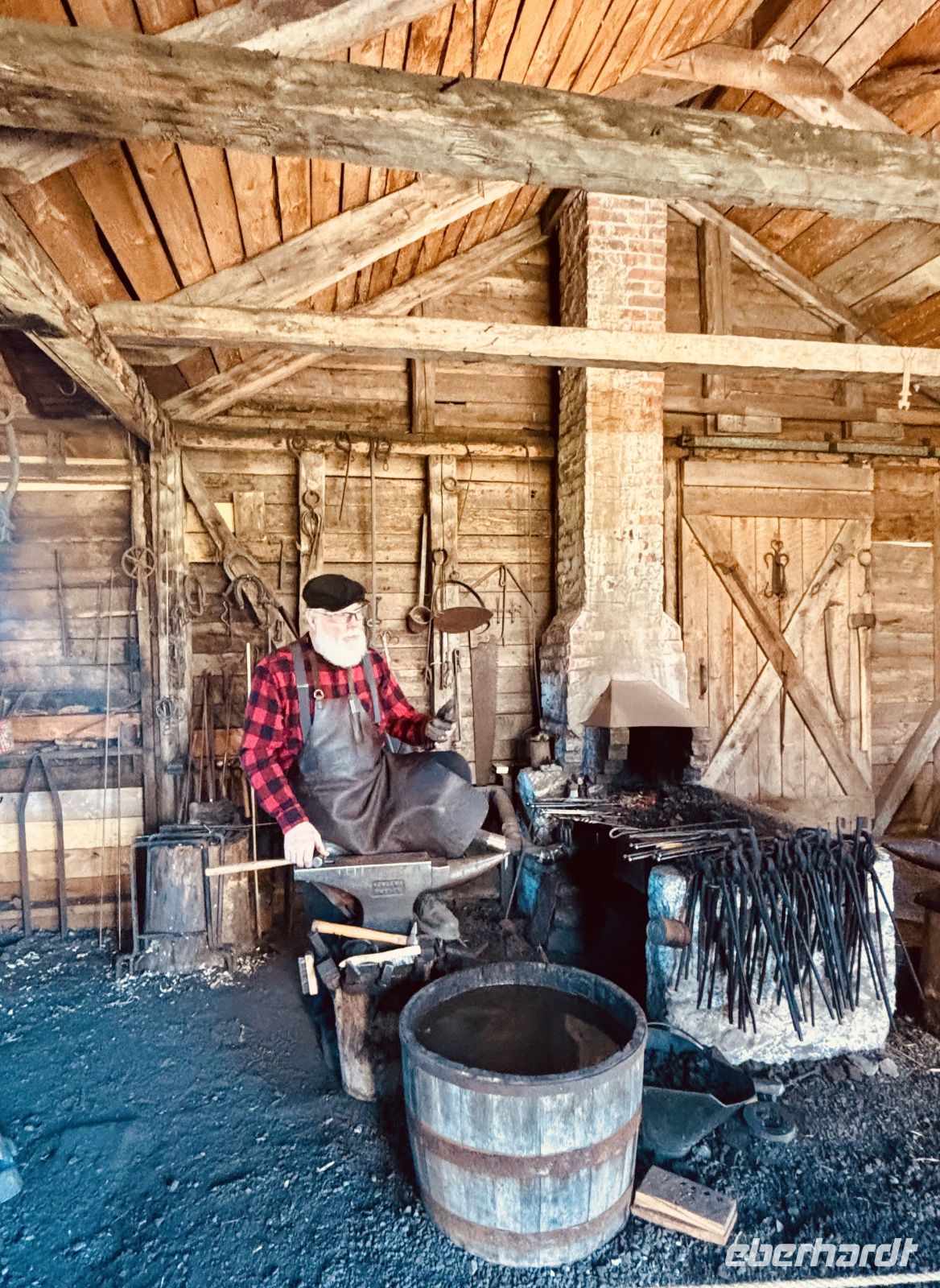 Heute ist der Kreuzfahrttourismus der wichtigste Wirtschaftszweig der Stadt, und allein in diesem Jahr legten über 100 Kreuzfahrtschiffe hier an. Bekannt ist die Region auch für ihre Austern- und Muschelfarmen. Einige Gäste haben den Ausflug „Heart of the Island“ gebucht. Wir fahren ungefähr eine Stunde in die Mitte der Insel nach Iona am Bras‘Or-See, der in seinen Ausmaßen einem Binnenmeer gleicht. Bei strahlendem Sonnenschein zeigt sich die Landschaft von ihrer schönsten Seite. Das flammende Rot der Ahornbäume sticht aus den Wäldern hervor und umrahmt die Ufer des tiefblauen Sees. Das „Baile nan Gāidheal Highland Village“ ist ein Freilichtmuseum auf einem Hügel über dem See. Die alten Häuser und Werkstätten geben Aufschluss über die Geschichte, Tradition und die gälische Kultur und Sprache. Mitarbeiter in Original-Kostümen stehen für Fragen bereit und führen altes Handwerk vor. Ob Ausflug oder individueller Bummel - dieser Tag in Sydney auf Cape Breton Island bei tiefblauem Himmel und strahlendem Sonnenschein war für alle ein Erlebnis. Am Abend besuchen wir noch die Cabaret-Show im Stardust Theater, ein musikalischer Genuss!