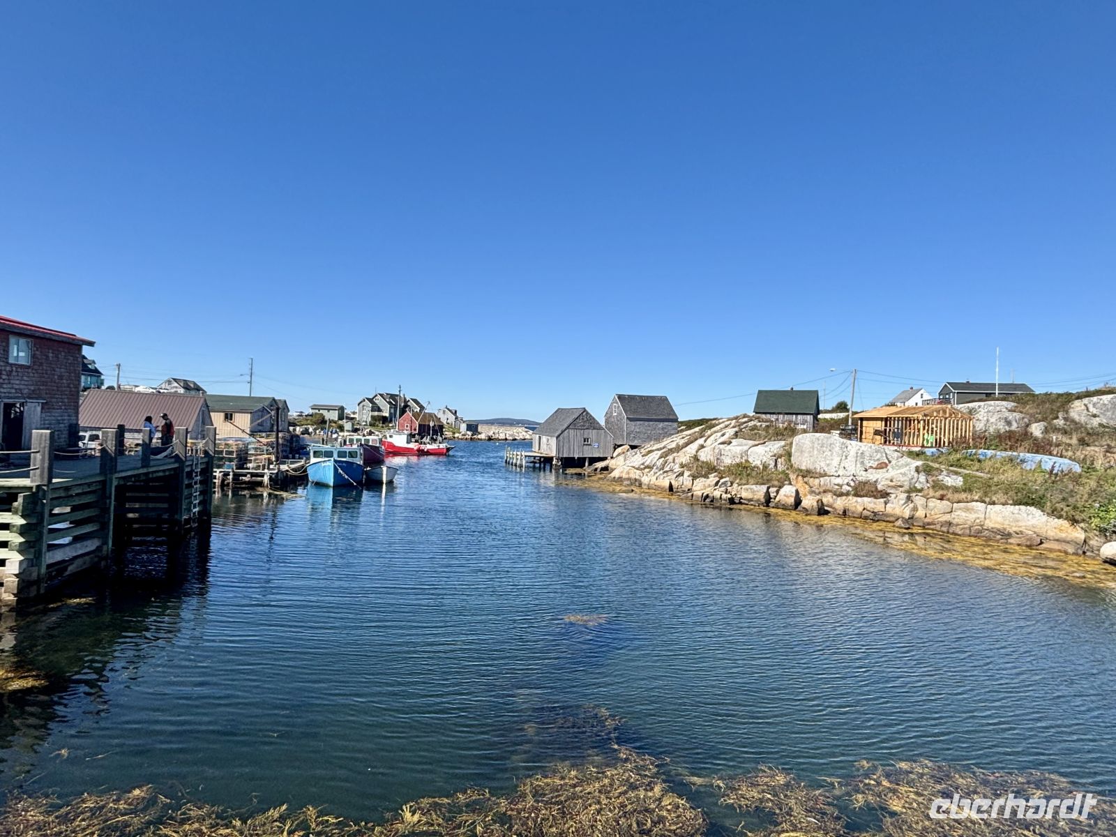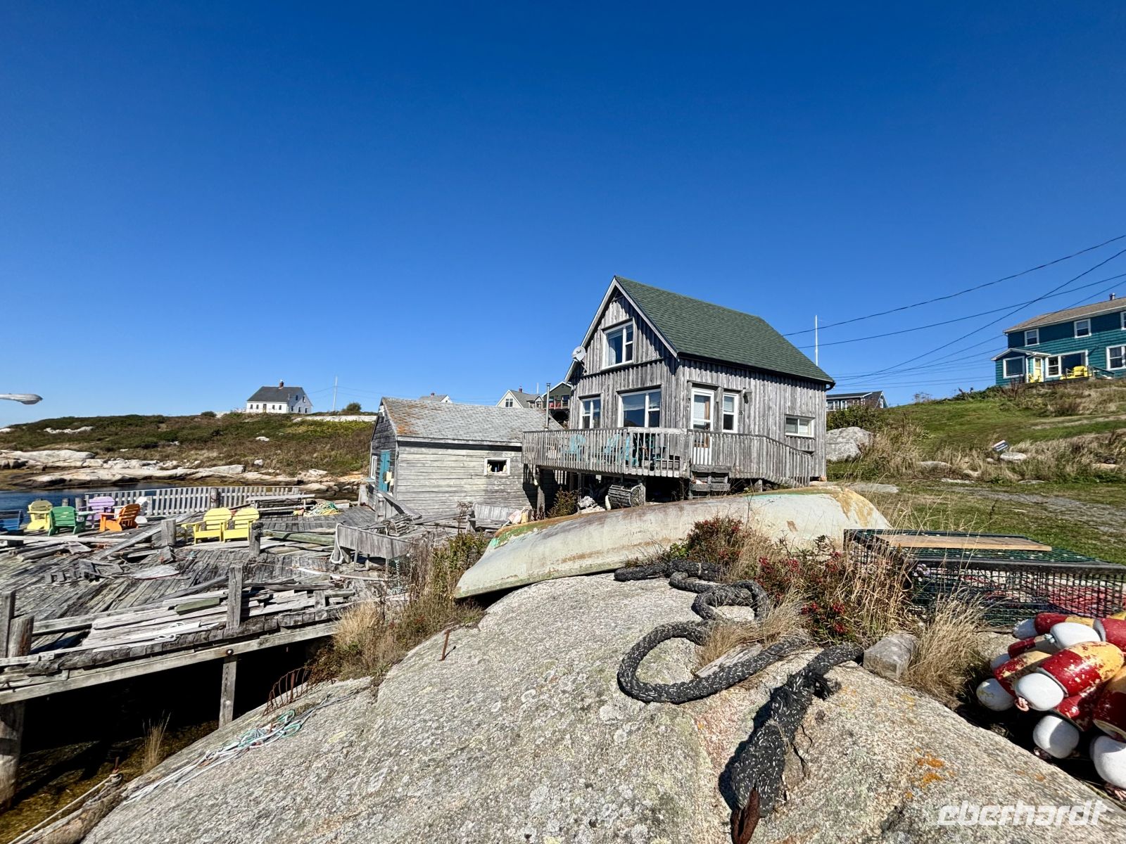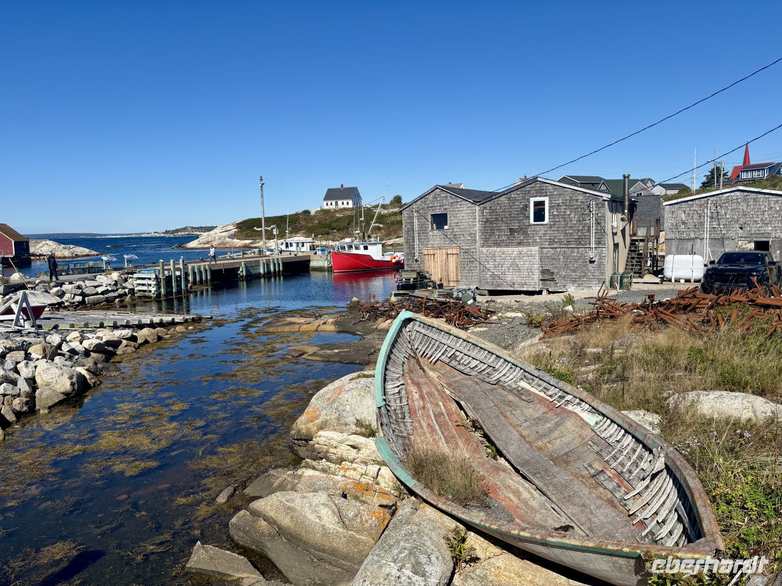 40 Kilometer entfernt kommen wir in eine andere Welt. Schon die Strecke mutet an wie die Reise durch ein Bilderbuch: Wunderschöne Holzhäuser und prunkvolle Villen säumen die Ufer, Segelyachten liegen vor Anker. Die Bäume erstrahlen in intensiven Herbstfarben, darüber ein tiefblauer Himmel. Dann sehen wir das weltberühmte Lighthouse von Peggy's Cove, dem pittoresken kleinen Fischerdorf an der Südküste von Nova Scotia. Der Leuchtturm wurde Jahr 1915 auf Granitfelsen über dem Meer errichtet und ist eines der beliebtesten Fotomotive Kanadas. Leider verbindet man den Ort Peggy's Cove auch mit einem tragischen Ereignis: der Swissair-Flug 111 stürzte 1998 hier vor der Küste in den Atlantik, weil an Bord ein Feuer ausgebrochen war. Alle 229 Personen an Bord kamen ums Leben, ein Gedenkstein erinnert an das schreckliche Unglück.