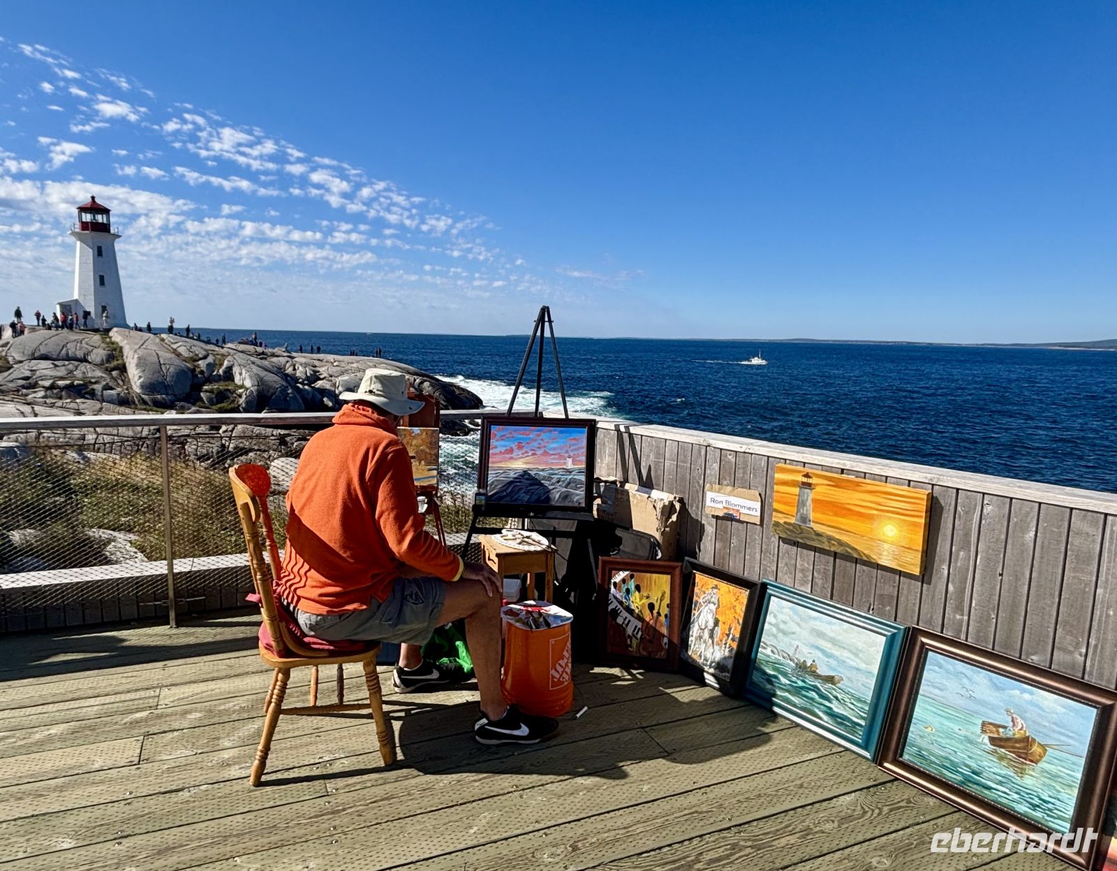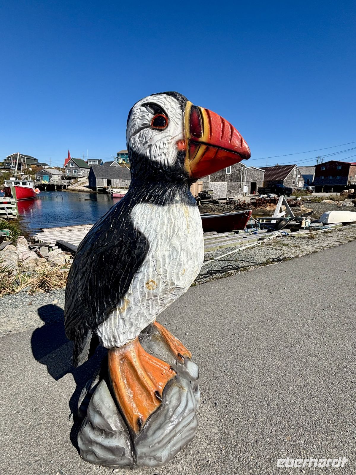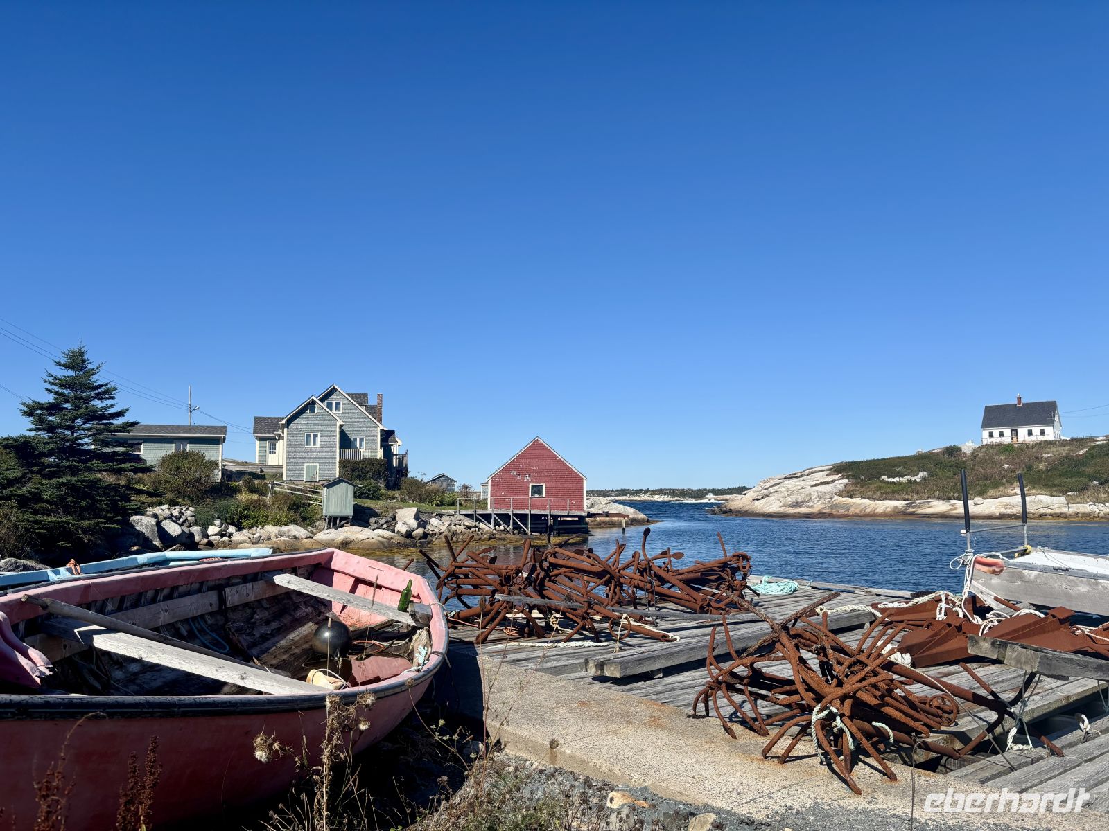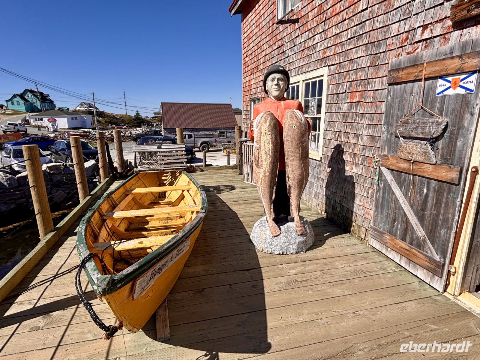 40 Kilometer entfernt kommen wir in eine andere Welt. Schon die Strecke mutet an wie die Reise durch ein Bilderbuch: Wunderschöne Holzhäuser und prunkvolle Villen säumen die Ufer, Segelyachten liegen vor Anker. Die Bäume erstrahlen in intensiven Herbstfarben, darüber ein tiefblauer Himmel. Dann sehen wir das weltberühmte Lighthouse von Peggy's Cove, dem pittoresken kleinen Fischerdorf an der Südküste von Nova Scotia. Der Leuchtturm wurde Jahr 1915 auf Granitfelsen über dem Meer errichtet und ist eines der beliebtesten Fotomotive Kanadas. Leider verbindet man den Ort Peggy's Cove auch mit einem tragischen Ereignis: der Swissair-Flug 111 stürzte 1998 hier vor der Küste in den Atlantik, weil an Bord ein Feuer ausgebrochen war. Alle 229 Personen an Bord kamen ums Leben, ein Gedenkstein erinnert an das schreckliche Unglück.