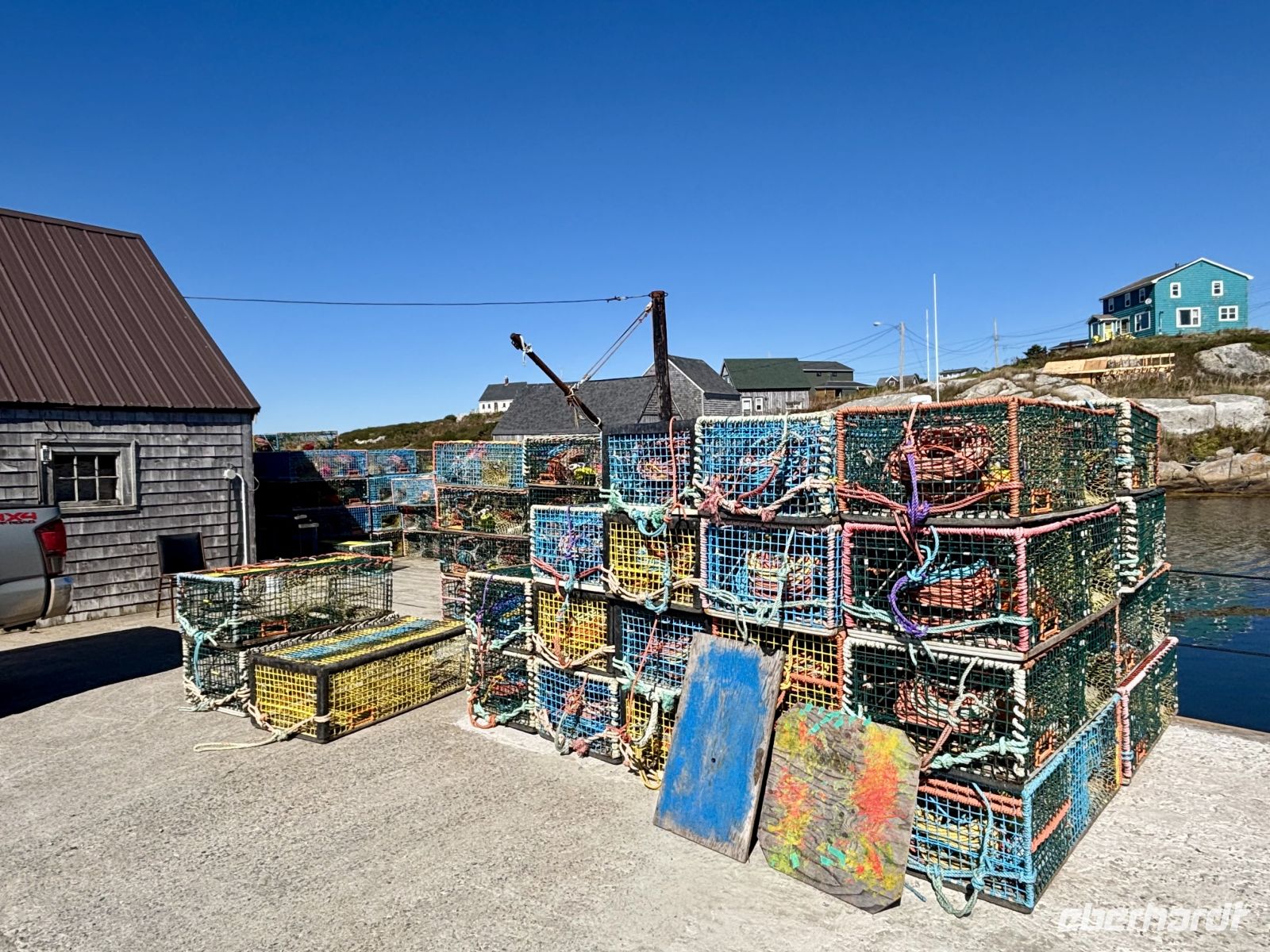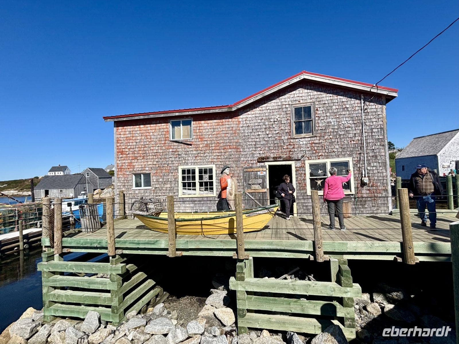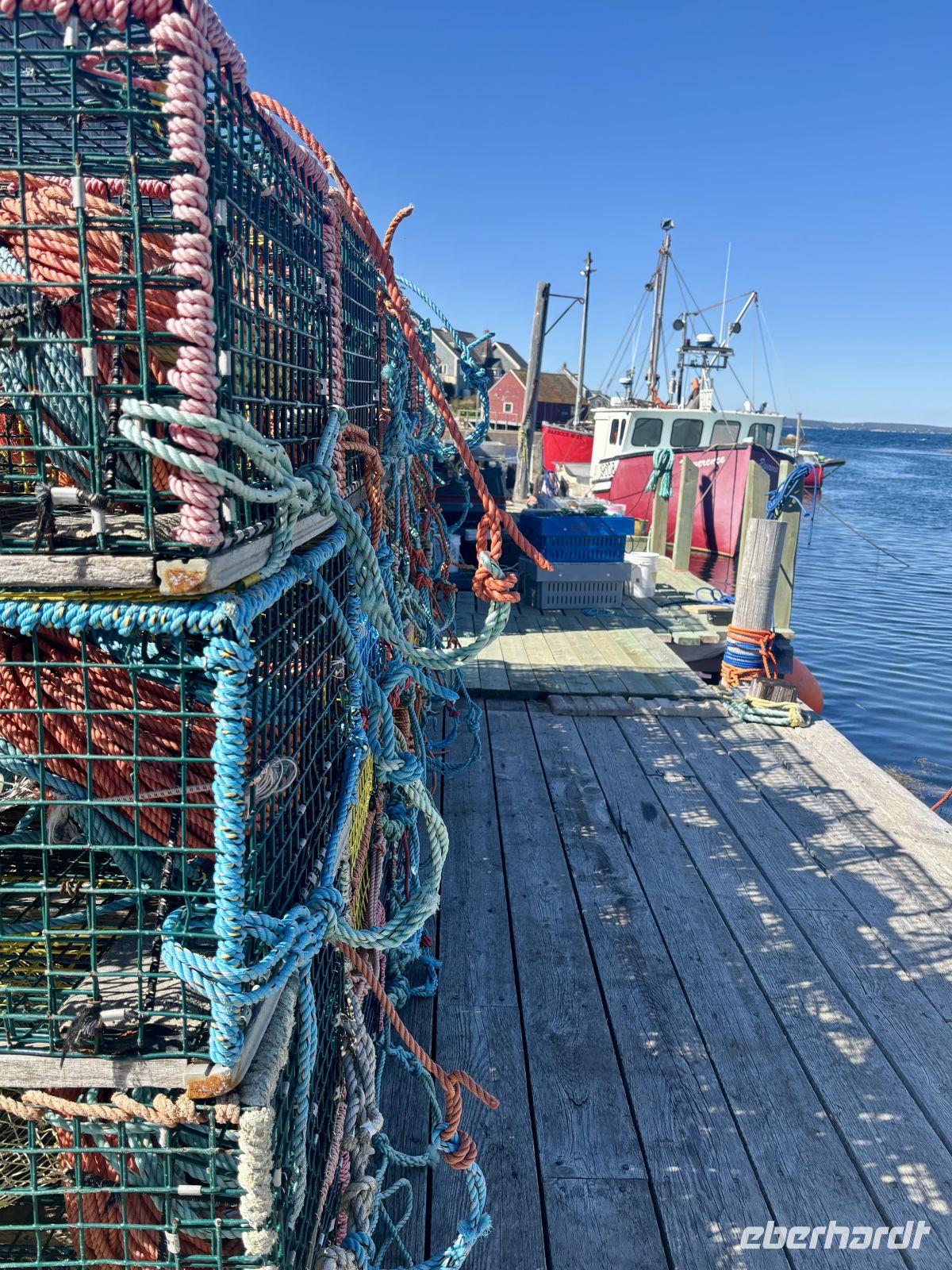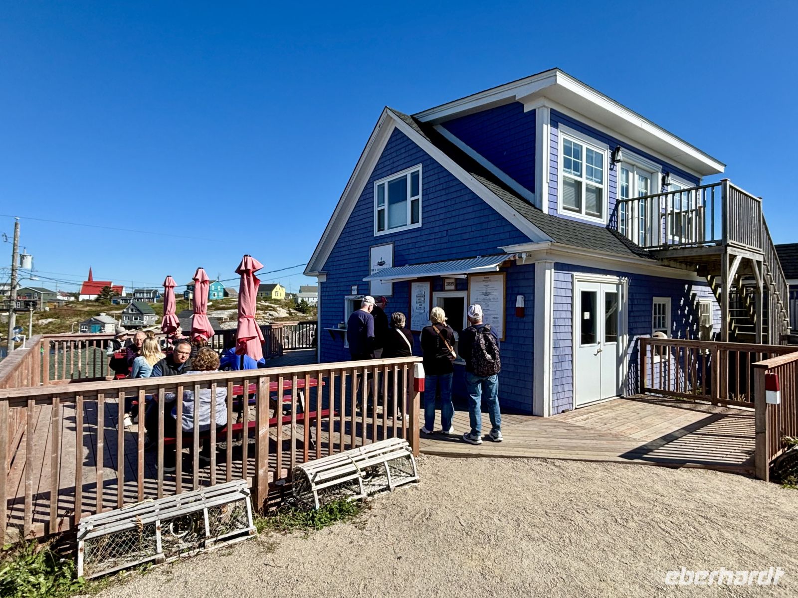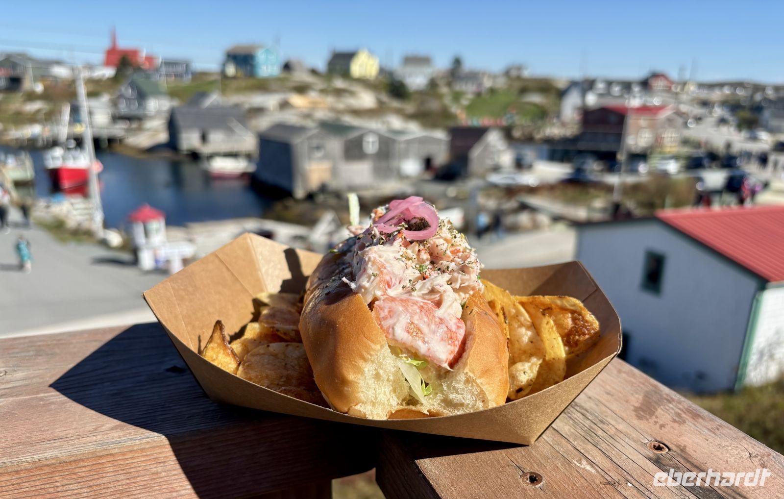 Wir bummeln durch Peggy's Cove mit seinen kleinen Läden und Restaurants. Einst war es ein Fischerdorf und auch heute noch werden hier Hummer gefangen. Der Haupterwerbszweig ist nun jedoch der Tourismus, der malerische Ort lockt jedes Jahr Tausende von Besuchern. Das merken wir auch heute, denn im Hafen von Halifax liegen sechs große Kreuzfahrtschiffe und entsprechend viele ihrer Ausflugsbusse drängen sich auf dem Parkplatz. Doch trotz der vielen Besucher strahlt der kleine Ort einen maritimen Charme aus und jeder findet eine ruhige Ecke, ein besonders schönes Fotomotiv. Beatrice, unsere Reiseleiterin, empfiehlt die Lobster Rolls (Hummerbrötchen) in „Tom‘s Lobster Shack“, malerisch über dem Hafen gelegen - und viele Gäste nutzen die Gelegenheit. Köstlich!!!