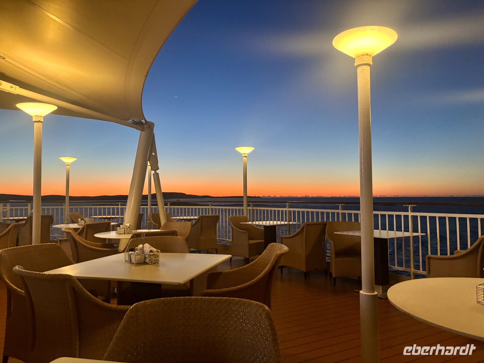 Ein letztes Dinner, ein letzter Abend an Bord. Die Koffer sind bereits gepackt, denn noch vor dem Schlafengehen müssen wir sie vor die Kabinentür stellen.
