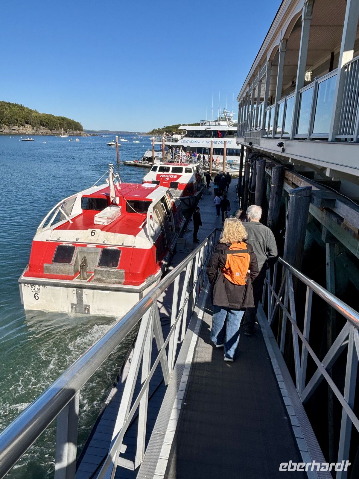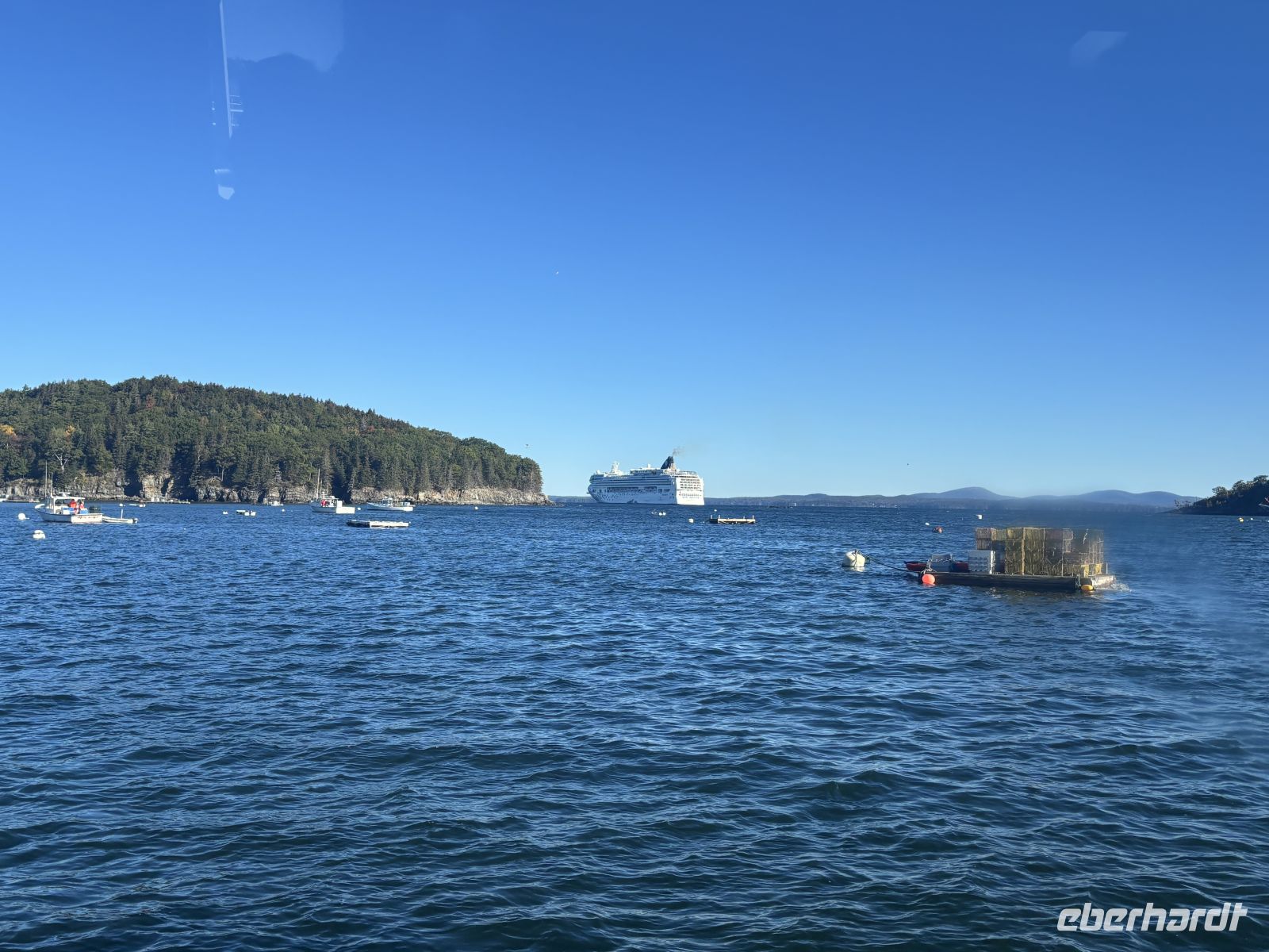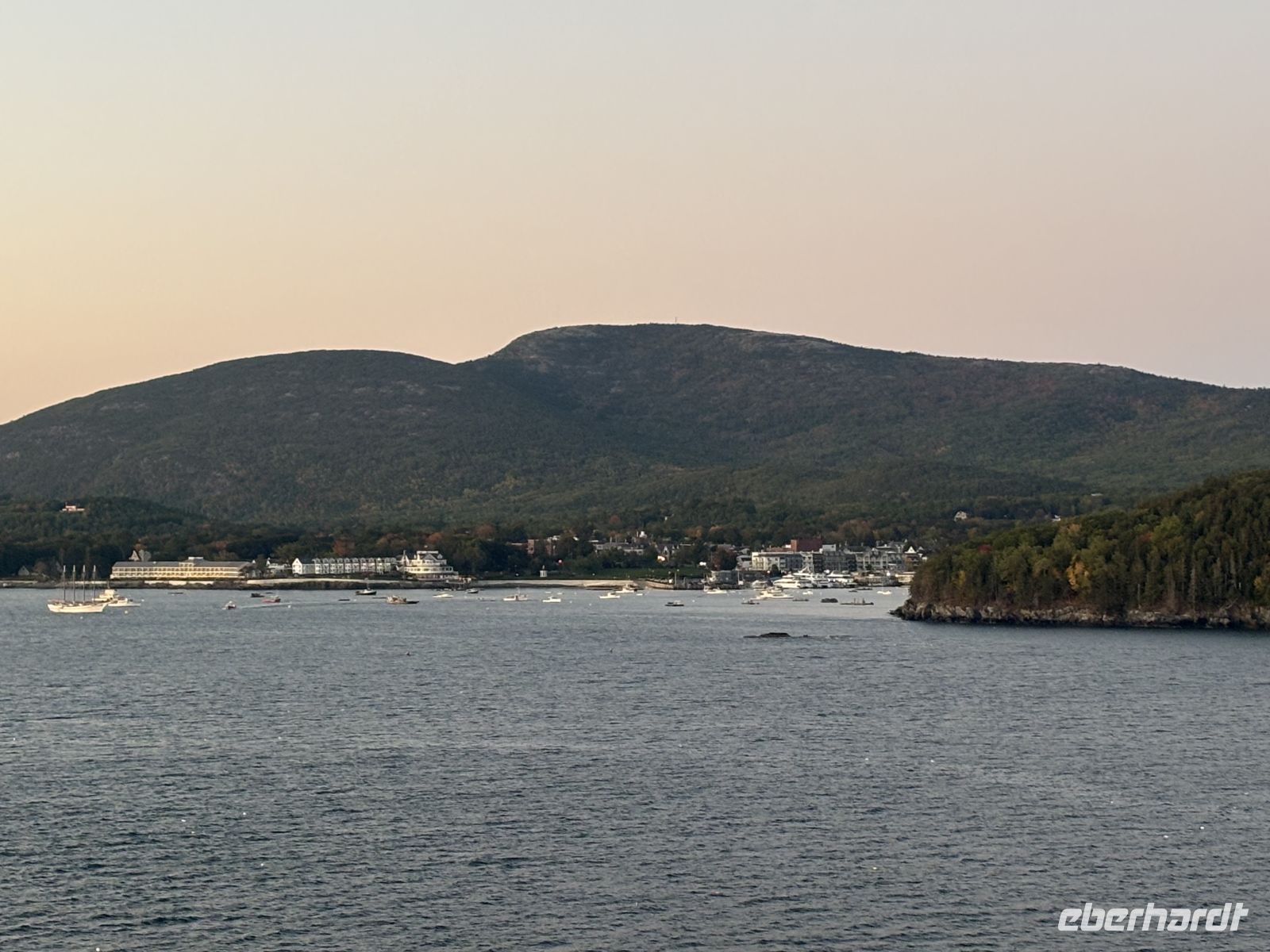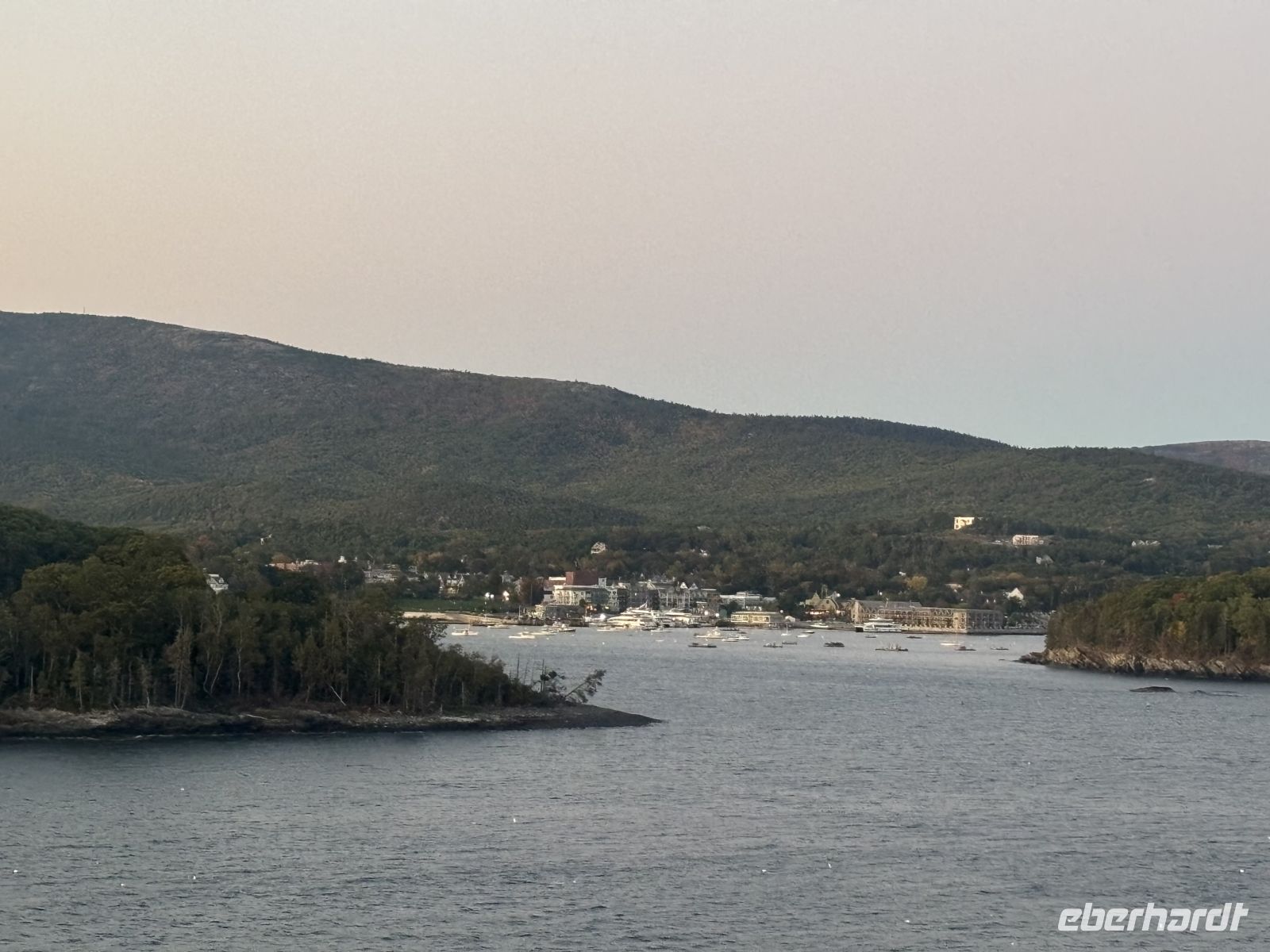 Der letzte Hafen unserer wunderschönen Kreuzfahrt liegt bereits in den USA, es ist die romantische Kleinstadt Bar Harbor im Bundesstaat Maine mit etwa 5.000 Einwohnern. Hier liegen wir nicht an der Pier im Hafen, sondern in der Bucht vor Anker und Tenderboote bringen uns an Land. Trotz der zahlreichen Touristen, die hier mit Kreuzfahrtschiffen oder auf Rundreisen unterwegs sind, strahlt das Städtchen einen liebenswerten Charme aus. Die schmucke Hauptstraße mit ihren Geschäften und Restaurants, der Park am Wasser und die kleinen Gassen verleihen Bar Harbor das Prädikat einer lebenswerten Stadt. Für einige von uns ist es der Ausgangspunkt zum Besuch des Acadia Nationalparks an der Atlantikküste. Er ist bekannt für seine rauen Felsstrände, imposanten Berge, üppigen Wälder und die vielfältige Tierwelt, darunter der Virginia-Uhu, Weißkopfseeadler, Elche und Kojoten. Der Acadia National Park wurde gegründet, um die Schönheit der Felsenküste Maines mit ihren vorgelagerten Inseln und seiner Bergkette zu bewahren. Der Cadillac Mountain ist mit 470 m die höchste Erhebung. Während der Wintermonate gilt er als erster Ort, an dem die Sonne in den kontinentalen Vereinigten Staaten erscheint. Er bietet einen herrlichen Blick auf die vergletscherte Küsten- und Insellandschaft.