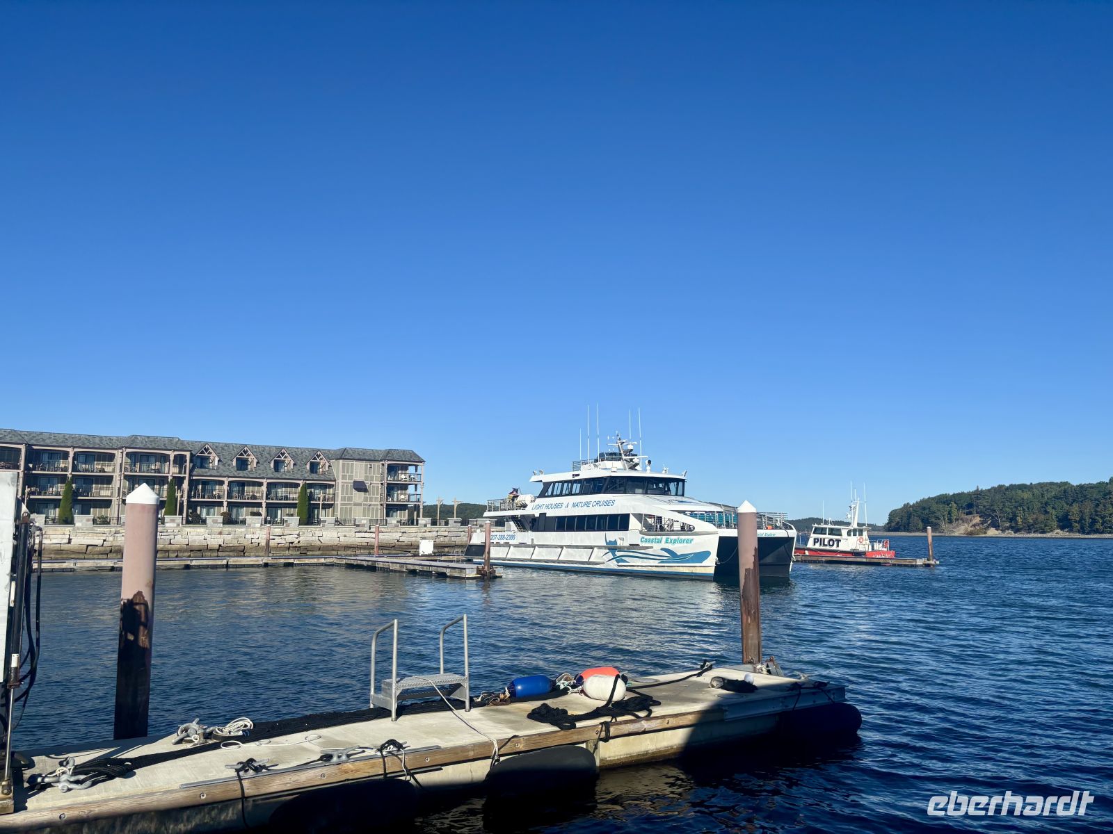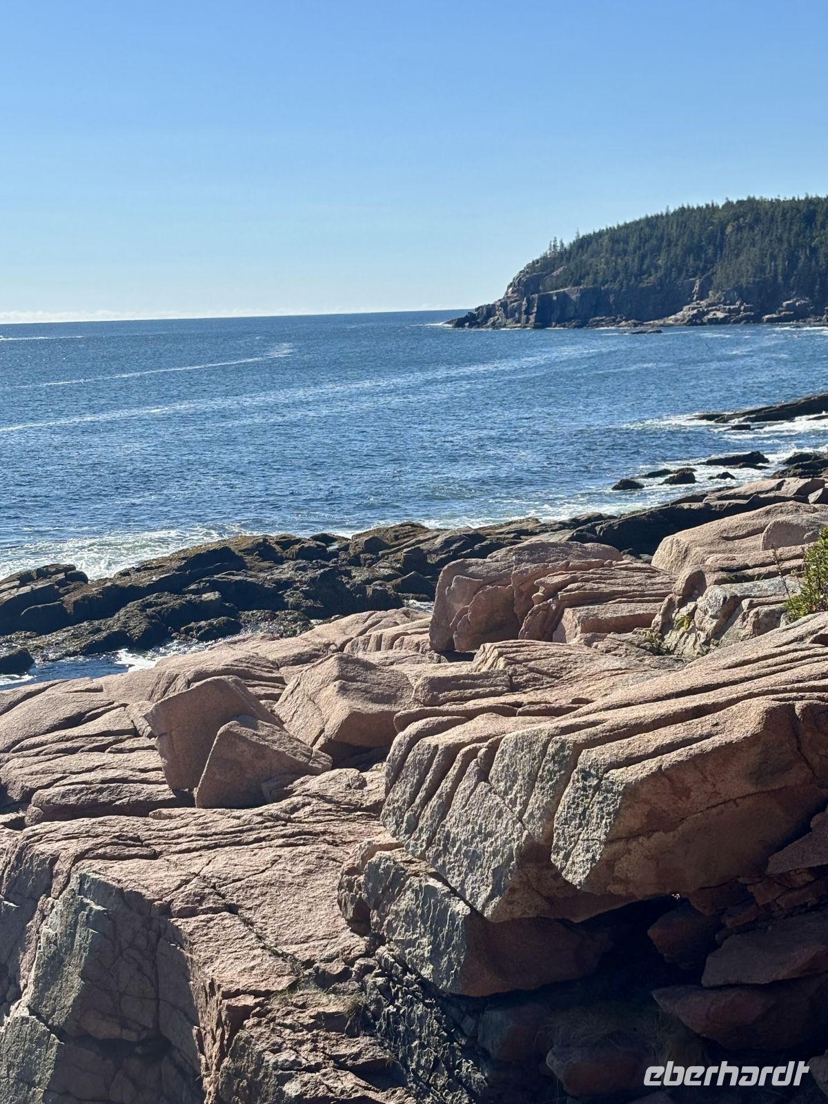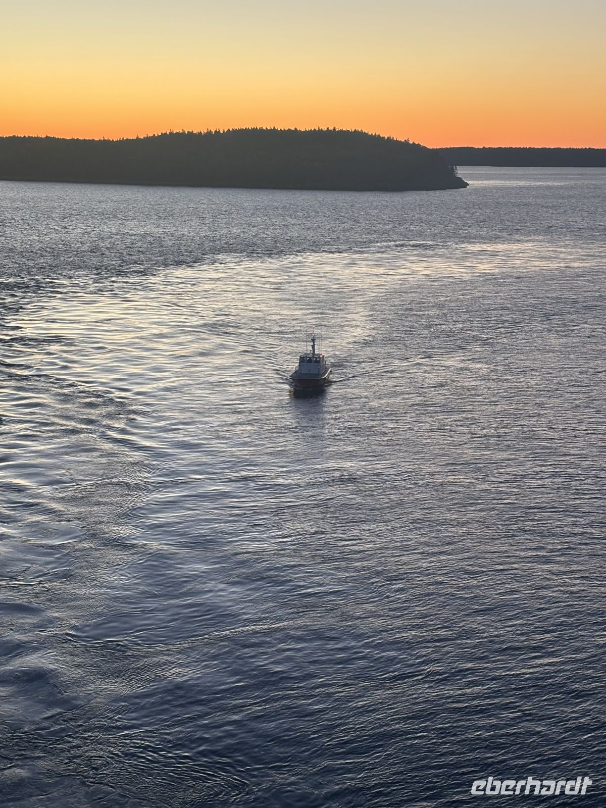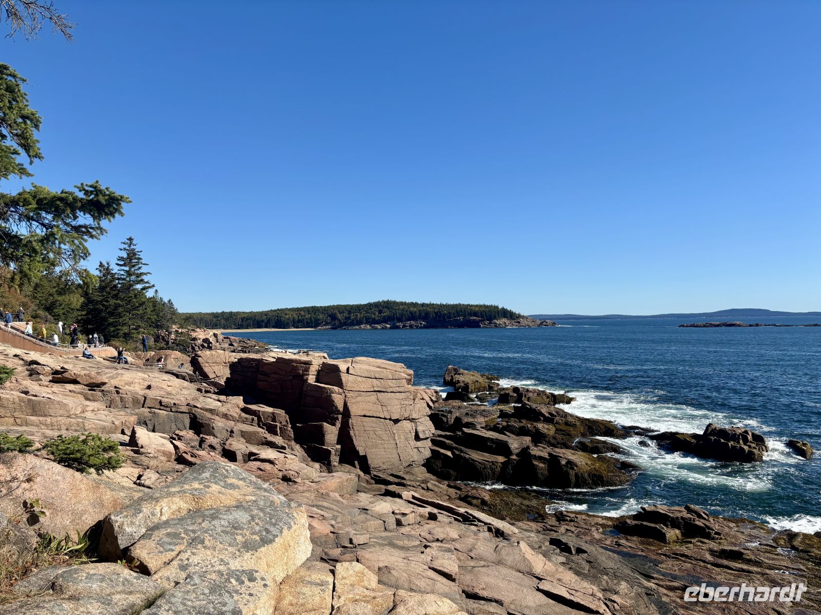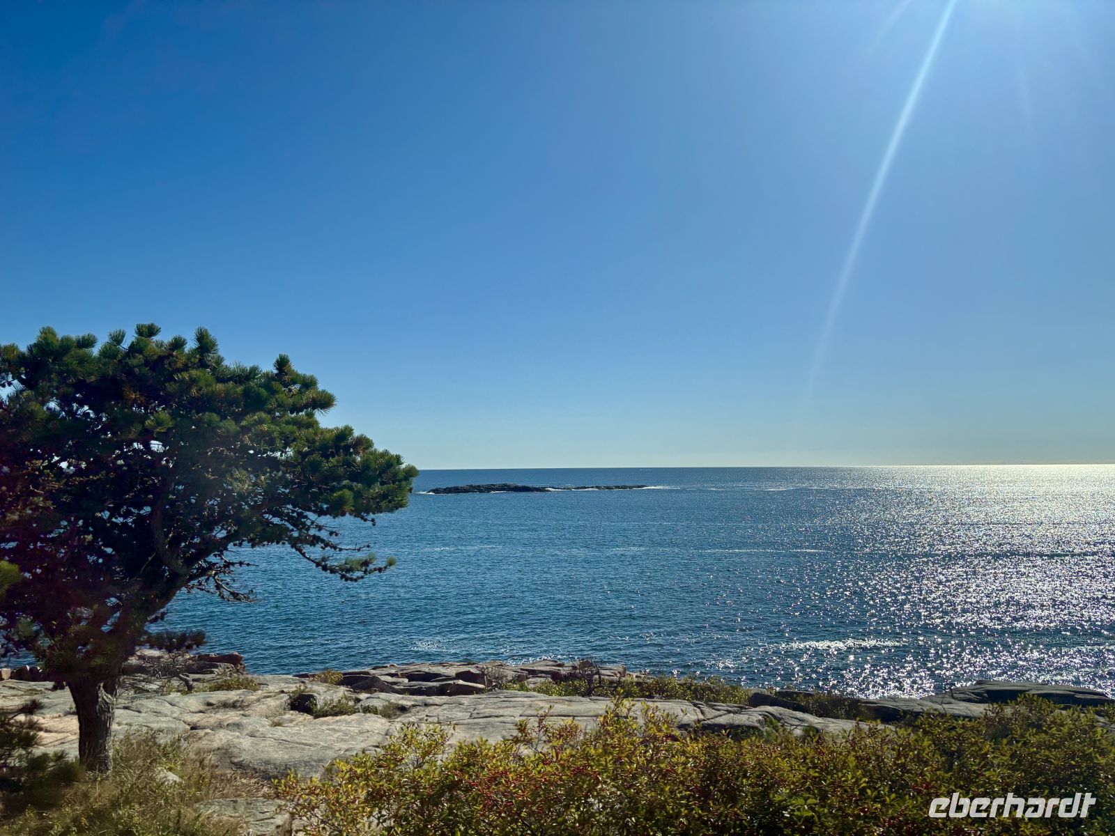 Der letzte Hafen unserer wunderschönen Kreuzfahrt liegt bereits in den USA, es ist die romantische Kleinstadt Bar Harbor im Bundesstaat Maine mit etwa 5.000 Einwohnern. Hier liegen wir nicht an der Pier im Hafen, sondern in der Bucht vor Anker und Tenderboote bringen uns an Land. Trotz der zahlreichen Touristen, die hier mit Kreuzfahrtschiffen oder auf Rundreisen unterwegs sind, strahlt das Städtchen einen liebenswerten Charme aus. Die schmucke Hauptstraße mit ihren Geschäften und Restaurants, der Park am Wasser und die kleinen Gassen verleihen Bar Harbor das Prädikat einer lebenswerten Stadt. Für einige von uns ist es der Ausgangspunkt zum Besuch des Acadia Nationalparks an der Atlantikküste. Er ist bekannt für seine rauen Felsstrände, imposanten Berge, üppigen Wälder und die vielfältige Tierwelt, darunter der Virginia-Uhu, Weißkopfseeadler, Elche und Kojoten. Der Acadia National Park wurde gegründet, um die Schönheit der Felsenküste Maines mit ihren vorgelagerten Inseln und seiner Bergkette zu bewahren. Der Cadillac Mountain ist mit 470 m die höchste Erhebung. Während der Wintermonate gilt er als erster Ort, an dem die Sonne in den kontinentalen Vereinigten Staaten erscheint. Er bietet einen herrlichen Blick auf die vergletscherte Küsten- und Insellandschaft.