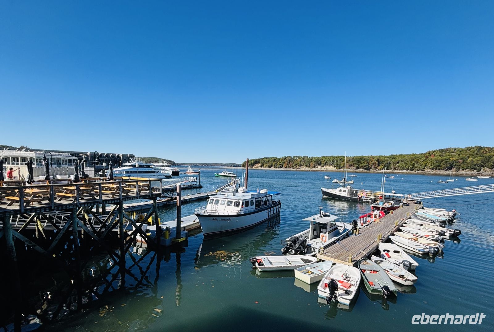 Die meisten Gäste bummeln individuell durch Bar Harbor, besichtigen die schönen Waterfront-Hotels, gehen durch die belebte Hauptstraße oder bleiben in einem der kleinen Restaurants am Hafen und beobachten die Boote, die dort vor Anker liegen.