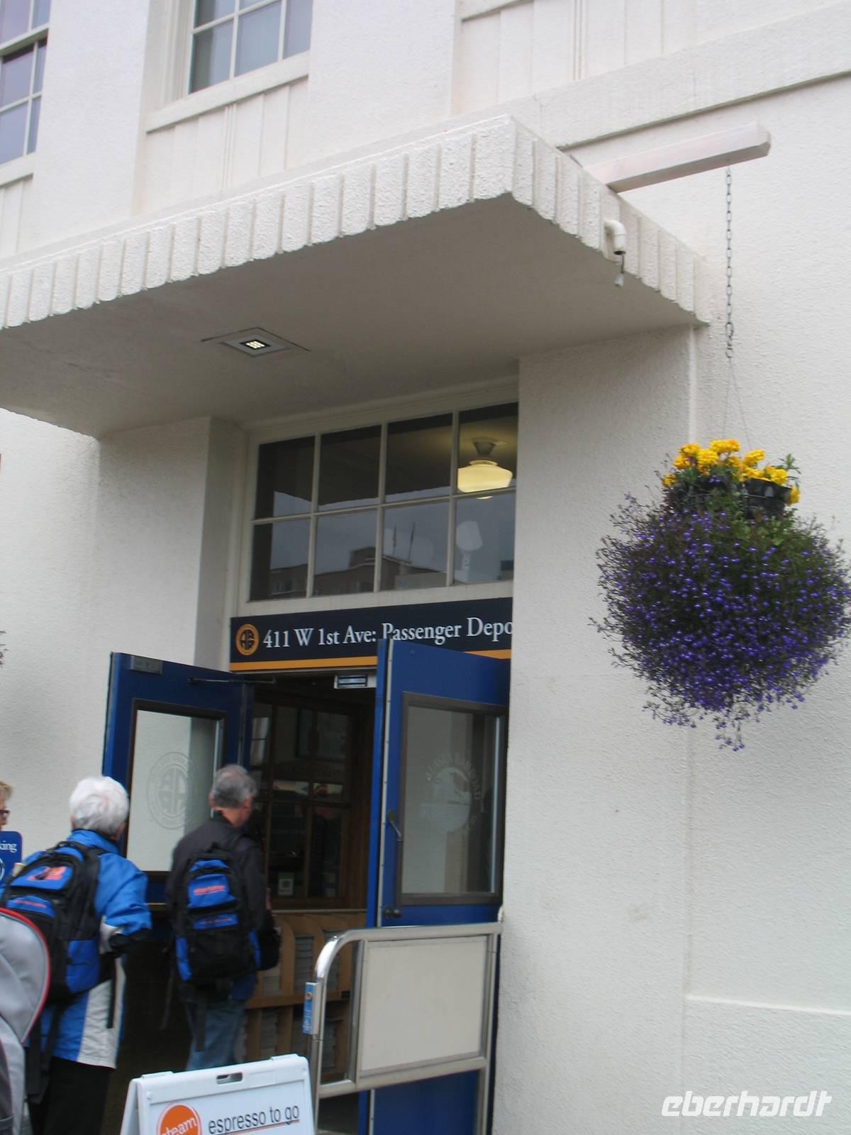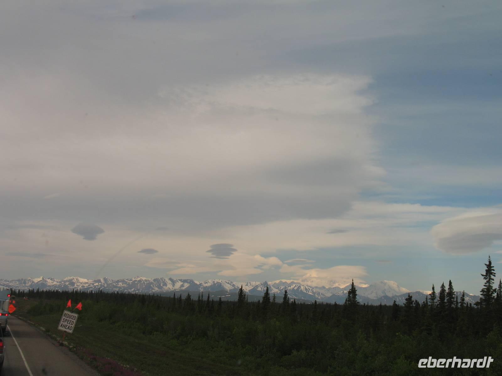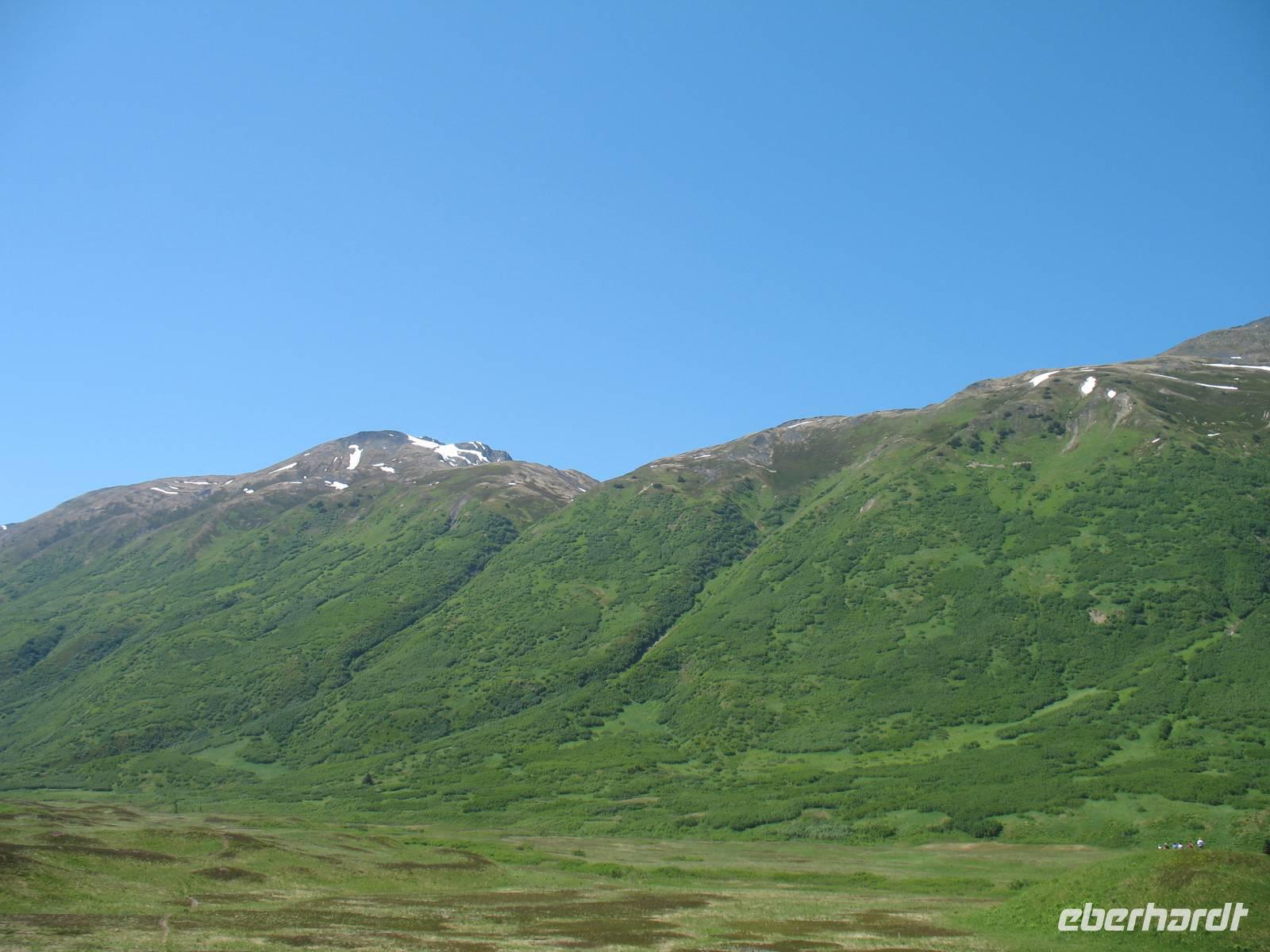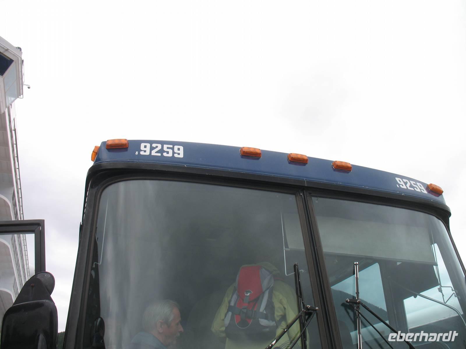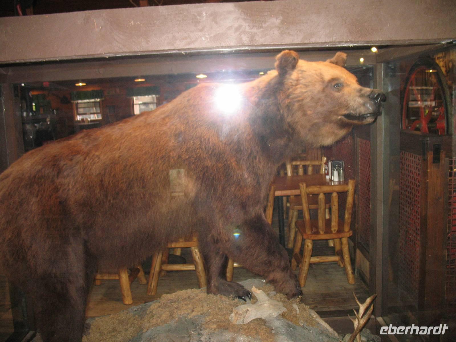 Nach einem erneuten sehr leckerem Frühstück treffen wir uns mit den Koffern am Bus und starten pünktlich um 08.30 Uhr in Richtung Talkeetna. Nach zwei Stunden Busfahrt vorbei an wunderschöner Landschaft und bei traumhaften Wetter legen wir einen Fotostopp beim Denali State Park Visitor Information mit großartigem Blick auf den Mount McKinley ein. Natürlich nutzen wir die Gelegenheit gleich für ein tolles Gruppenfoto :-) Dann geht es auch schon weiter nach Talkeetna. Kurz bevor wir dieses kleine Örtchen erreichen, halten wir noch einmal für einen letzten Blick auf den berühmten Mount McKinley an. In Talkeetna bleiben wir rund eine Stunde. Einige Gäste nutzen die Zeit zum Kauf von Souvenirs, für einen kleinen Snack oder einfach nur, um durch diesen kleinen Ort zu spazieren und die Atmosphäre zu genießen. Danach halten wir noch an einem Supermarkt rund zehn Minuten von Talkeetna an. Wir kaufen unter anderem kleine Snacks, Kekse und Getränke. Auf unserer Weiterfahrt nach Anchorage entdecken wir dann aber eine dunkle Wolke am Horizont. Bei näherer Betrachtung zeigt sich, dass es sich um den Rauch eines Waldbrandes handelt. Die Feuerwehr ist auch schon zu sehen. Es gibt nur eine Straße nach Anchorage, diese führt genau entlang des Waldbrandes. Aber wir haben ganz viel Glück, wir können ohne Stau durchfahren. Am nächsten Tag auf dem Schiff werden wir jedoch von anderen Reisegruppen erfahren, dass diese unter anderem mehrere Stunden im Stau verbracht haben oder auch wieder nach Talkeetna zurückfahren mussten, um dort zu übernachten. Also können wir wirklich froh sein, dass uns diese Aufregung erspart geblieben ist!!! Eigentlich steht auf unserem heutigem Plan noch das Alaska Native Heritage Center, dies verschieben wir aber auf den sechsten Tag, da wir sonst zu wenig Zeit dafür gehabt hätten. Stattdessen unternehmen wir die für den nächsten Morgen geplante Stadtrundfahrt. Dazu legen wir auch einen Stopp am Earthquake Park ein. Am späten Nachmittag gegen 17.00 Uhr checken wir im für uns bereits bekanntem 3-Sterne-Hotel "Westmark Hotel and Conference Center" in Anchorage ein. Die kurze freie Zeit bis zum Abendessen nutzen wir hauptsächlich zum Erfrischen. Um 19.00 Uhr werden wir von einem Busshuttle abgeholt und zum Restaurant "Sourdough Mining Co." gebracht. Dies ist wieder ein sehr uriges Restaurant, dem gegenüber befindet sich ein Souvenirladen und ein Geschäft mit selbstgemachter Schokolade. Unser heutiges Abendessen besteht aus mehreren Gänge wie verschiedenen Kartoffelvarianten, Rippchen und Weißfisch. Als Dessert gibt es Eis, die Sorte und Zutaten kann sich jeder selbst wählen. Nach dem Essen schauen wir noch im Souvenirladen vorbei, wo ein riesiger unechter Bär direkt im Eingang aufgestellt ist. Im Anschluss werden wieder zum Hotel chauffiert. Während sich der Großteil auf die Zimmer zurückzieht, genießen einige Gäste noch das warme Wetter bei einem tollen Abendspaziergang.