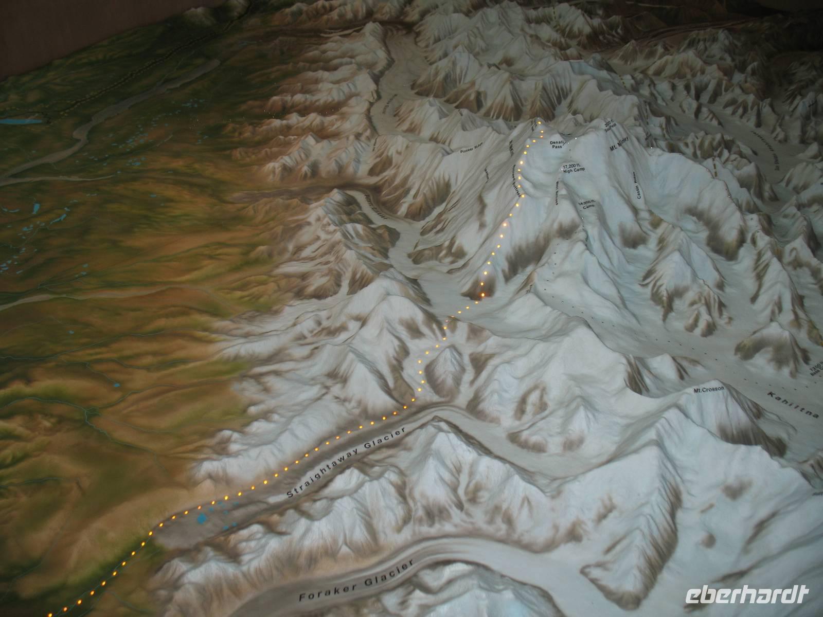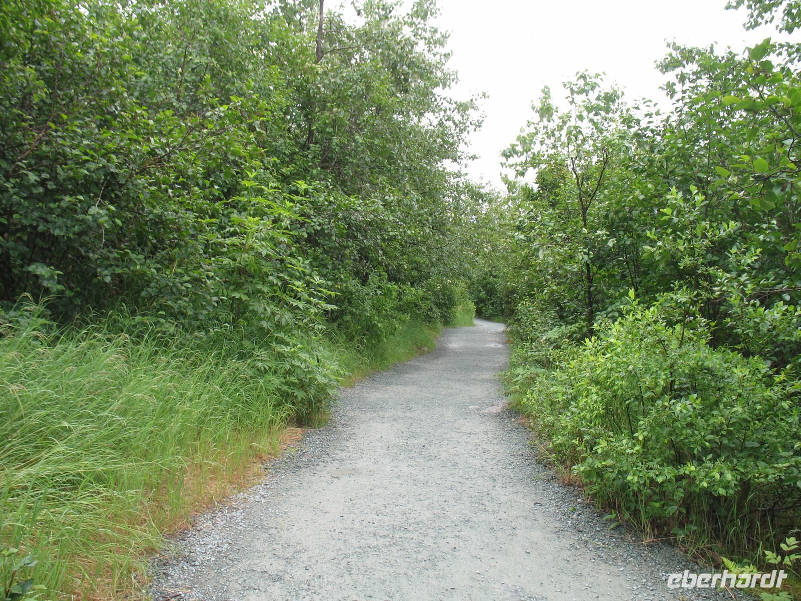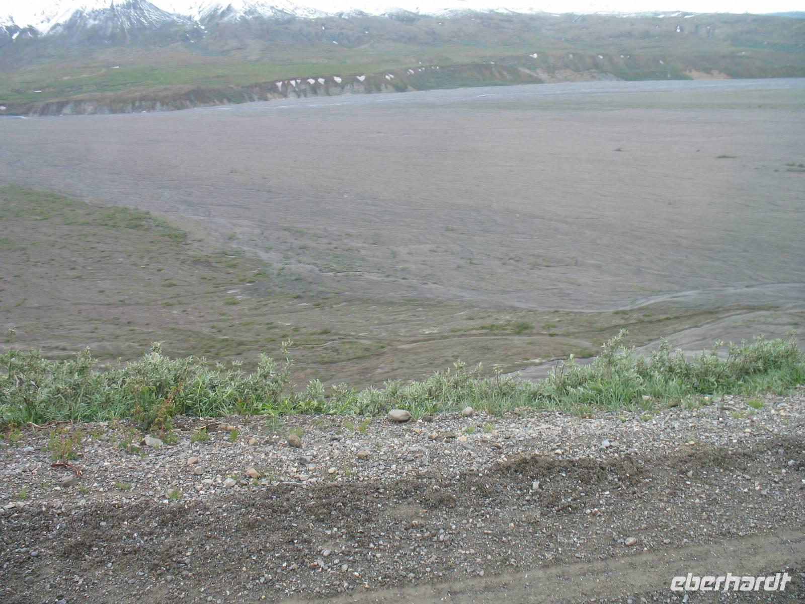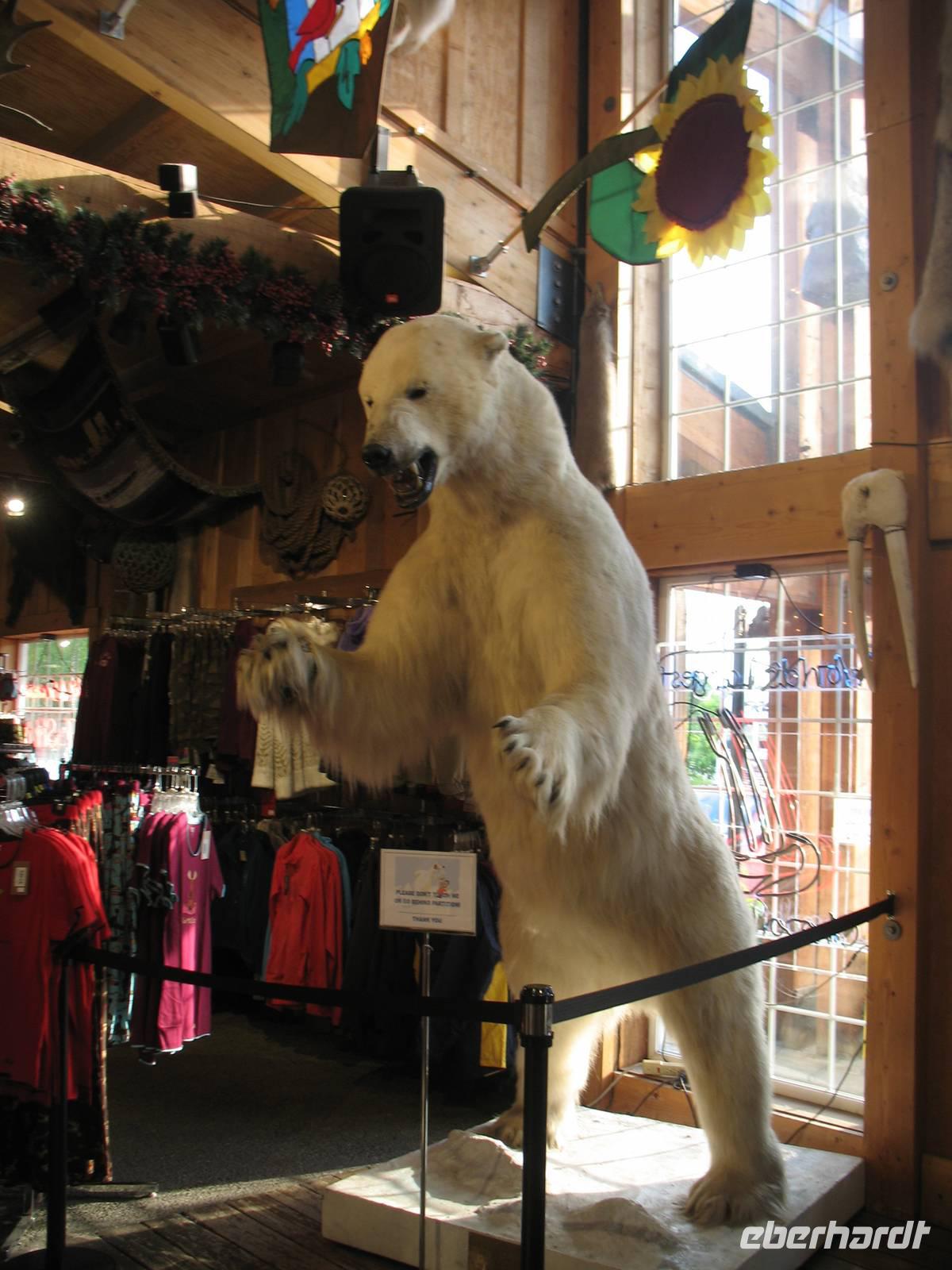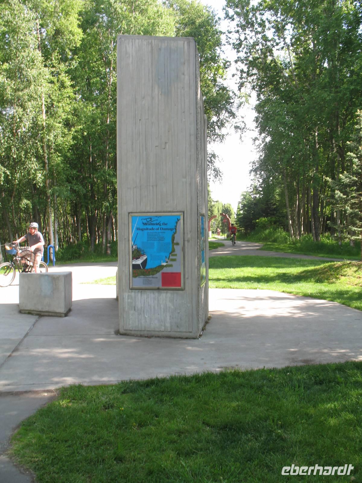 Nach einem erneuten sehr leckerem Frühstück treffen wir uns mit den Koffern am Bus und starten pünktlich um 08.30 Uhr in Richtung Talkeetna. Nach zwei Stunden Busfahrt vorbei an wunderschöner Landschaft und bei traumhaften Wetter legen wir einen Fotostopp beim Denali State Park Visitor Information mit großartigem Blick auf den Mount McKinley ein. Natürlich nutzen wir die Gelegenheit gleich für ein tolles Gruppenfoto :-) Dann geht es auch schon weiter nach Talkeetna. Kurz bevor wir dieses kleine Örtchen erreichen, halten wir noch einmal für einen letzten Blick auf den berühmten Mount McKinley an. In Talkeetna bleiben wir rund eine Stunde. Einige Gäste nutzen die Zeit zum Kauf von Souvenirs, für einen kleinen Snack oder einfach nur, um durch diesen kleinen Ort zu spazieren und die Atmosphäre zu genießen. Danach halten wir noch an einem Supermarkt rund zehn Minuten von Talkeetna an. Wir kaufen unter anderem kleine Snacks, Kekse und Getränke. Auf unserer Weiterfahrt nach Anchorage entdecken wir dann aber eine dunkle Wolke am Horizont. Bei näherer Betrachtung zeigt sich, dass es sich um den Rauch eines Waldbrandes handelt. Die Feuerwehr ist auch schon zu sehen. Es gibt nur eine Straße nach Anchorage, diese führt genau entlang des Waldbrandes. Aber wir haben ganz viel Glück, wir können ohne Stau durchfahren. Am nächsten Tag auf dem Schiff werden wir jedoch von anderen Reisegruppen erfahren, dass diese unter anderem mehrere Stunden im Stau verbracht haben oder auch wieder nach Talkeetna zurückfahren mussten, um dort zu übernachten. Also können wir wirklich froh sein, dass uns diese Aufregung erspart geblieben ist!!! Eigentlich steht auf unserem heutigem Plan noch das Alaska Native Heritage Center, dies verschieben wir aber auf den sechsten Tag, da wir sonst zu wenig Zeit dafür gehabt hätten. Stattdessen unternehmen wir die für den nächsten Morgen geplante Stadtrundfahrt. Dazu legen wir auch einen Stopp am Earthquake Park ein. Am späten Nachmittag gegen 17.00 Uhr checken wir im für uns bereits bekanntem 3-Sterne-Hotel "Westmark Hotel and Conference Center" in Anchorage ein. Die kurze freie Zeit bis zum Abendessen nutzen wir hauptsächlich zum Erfrischen. Um 19.00 Uhr werden wir von einem Busshuttle abgeholt und zum Restaurant "Sourdough Mining Co." gebracht. Dies ist wieder ein sehr uriges Restaurant, dem gegenüber befindet sich ein Souvenirladen und ein Geschäft mit selbstgemachter Schokolade. Unser heutiges Abendessen besteht aus mehreren Gänge wie verschiedenen Kartoffelvarianten, Rippchen und Weißfisch. Als Dessert gibt es Eis, die Sorte und Zutaten kann sich jeder selbst wählen. Nach dem Essen schauen wir noch im Souvenirladen vorbei, wo ein riesiger unechter Bär direkt im Eingang aufgestellt ist. Im Anschluss werden wieder zum Hotel chauffiert. Während sich der Großteil auf die Zimmer zurückzieht, genießen einige Gäste noch das warme Wetter bei einem tollen Abendspaziergang.