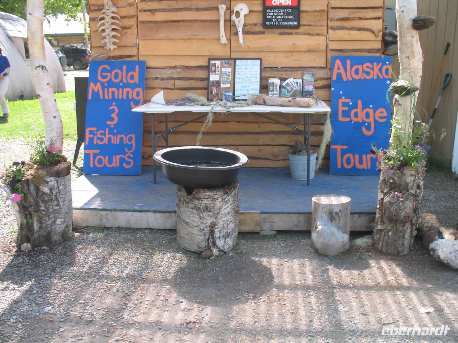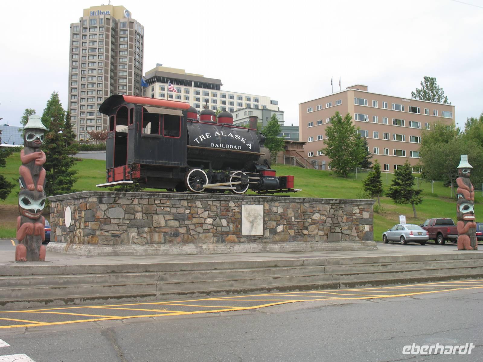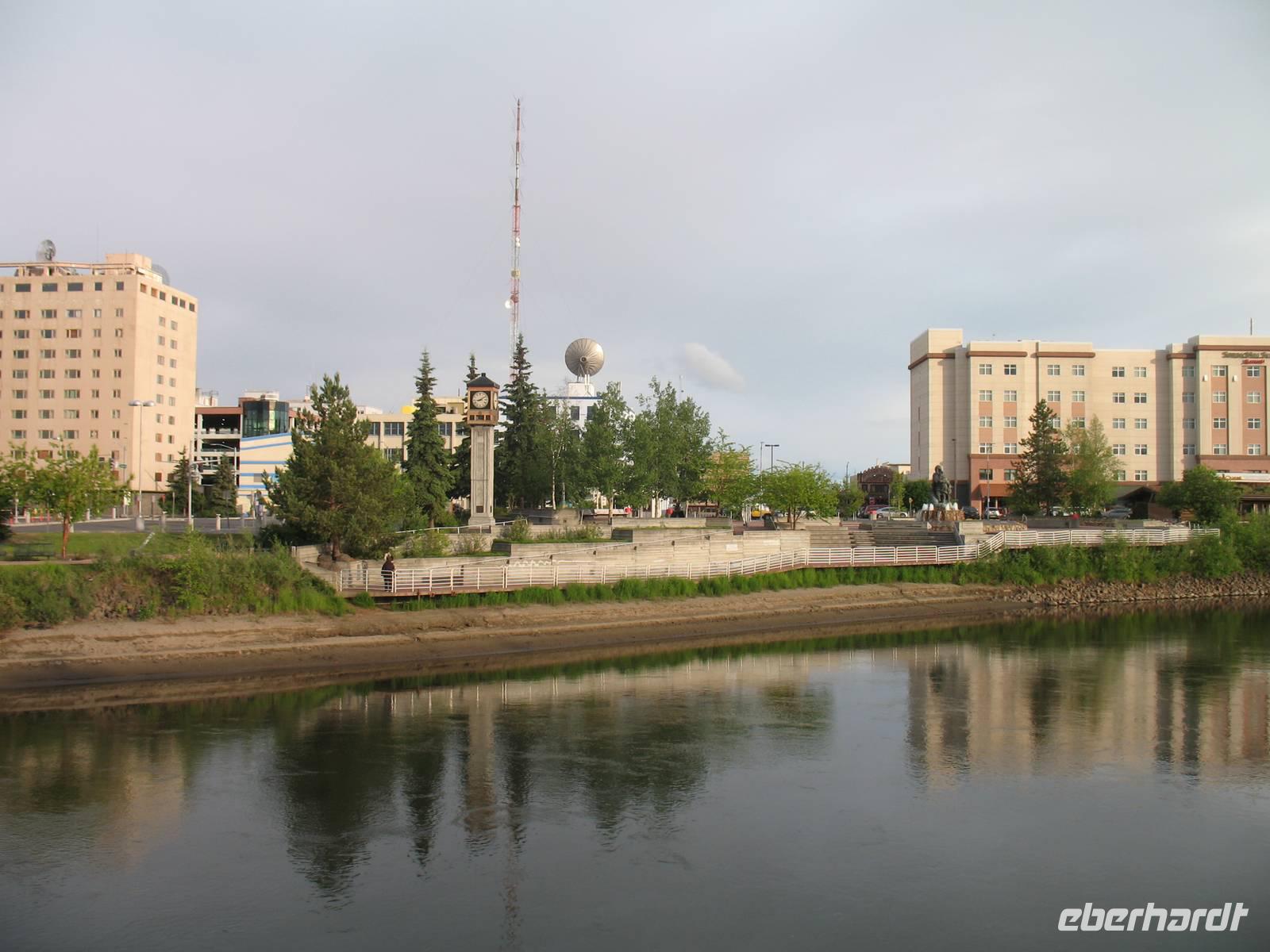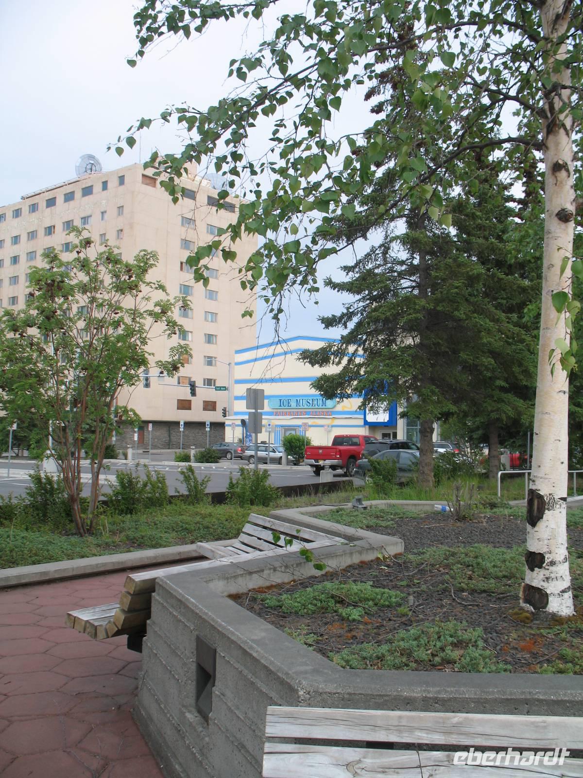 Dieser Tag steht ganz im Sinne der Frage: "Wo steht das Haus?" Dazu aber später mehr :-) Nach einer kurzen Nacht treffen wir uns alle mit unseren Koffern, um gemeinsam zum Bahnhof von Anchorage zu fahren. Das erste Highlight unserer spannenden Reise wird die Zugfahrt im Denali Star Gold Service von Anchorage nach Fairbanks sein, welche rund 568 Kilometer beträgt. Die Busfahrt zum Bahnhof dauert nur wenige Minuten und wir checken nach 07.00 Uhr unsere Koffer ein. Die freie Zeit bs zur Abfahrt 08.15 Uhr nutzen wir unter anderem zum Kauf von Ansichtskarten oder Getränken in der kleinen Bahnhofshalle. Dann geht es auch schon los ;-) Das Zugabteil besteht aus zwei Etagen. Auf der oberen Ebene sind unsere Sitzplätze. Wir haben das Glück, dass wir auf der Fahrt von Anchorage bis Denali freie Sitzplatzwahl haben. Während der Fahrt werden wir mit Frühstück, Mittagessen und Abendessen versorgt. Gegen 09.00 Uhr haben wir die Wahl zwischen einem herzhaften Frühstück mit Ei, Rentierwurst und Toastbrot, French Toast oder Jogurt. Denn Hunger haben wir jetzt auch!!! Dann genießen wir wieder die tolle Aussicht und traumhafte Landschaft. Jedes Zugabteil besitzt zudem eine überdachte Aussichtsplattform. Draußen ist es zwar windig und kühl, aber wir haben vorgesorgt und zudem warme Sachen eingepackt, obwohl wir diese Sachen die kommenden Tage nicht unbedingt benötigen werden ;-) Während wir unser Frühstück gern so früh wie möglich einnehmen, haben wir es mit dem Mittagessen nicht so eilig. Dank eines sehr leckeren Frühstücks kann Mittag ruhig noch warten! Kommen wir nun aber zur Frage: "Wo steht das Haus?". Über Lautsprecher ist uns gesagt worden, dass bald ein sehr interessantes Haus kommen soll, das berühmte Dr. Seuss House bei Willow. Das Besondere ist, dass es ausschaut, als wären mehrere Häuser übereinander gebaut wurden. Einige von uns haben daraufhin bei kühlem Wind auf der Aussichtsplattform gewartet, bis endlich dieses Haus zu sehen ist. Jedoch werden wir auch nach mehrmaligen Nachfragen bei der Sprecherin im Zug andauernd vertröstet, dass es doch gleich kommen soll. Letztendlich haben wir das Haus aber verpasst, da es leider nur bei den ersten Waggons rechtzeitig angekündigt wurde, bei uns ist dies leider zu spät erfolgt. Daher trägt dieser Tag den Titel: "Wo ist das Haus?" :-) Am Nachmittag gegen 14.00 Uhr begeben wir uns wieder in den Esswaggon auf der unteren Ebene. Das Mittagessen mit der Wahl zwischen Salat, Sandwich, Burger oder eine Art Schmorbraten ist genauso köstlich wie auch schon das Frühstück. Nach dem Essen genießen wir abermals die unglaubliche Aussicht bei einer sehr entspannten Zugfahrt. Einige erhaschen sogar einen kurzen Blick auf einen im Gras sitzenden Bären :-) Um 18.30 Uhr lassen wir uns ein weiteres leckeres Abendessen in Form von Weißfisch, Nudelpfanne, Hühnerbrust, Salat oder Suppe sowie ein besonders tolles Dessert schmecken. Dann erreichen wir auch schon unsere Endhaltestelle Fairbanks, wo wir um 20.00 Uhr ankommen. Wir holen unsere Koffer ab und fahren zum 2-Sterne-Plus-Hotel "Bridgewater Hotel" in Fairbanks, welches wir eine halbe Stunde später erreichen. Während der Großteil der Gäste sich nur noch auf ihre Zimmer zurückziehen möchte, unternehmen die anderen Reisegäste einen kleinen Spaziergang zum fünf Gehminuten entfernten "Golden Heart Plaza". Die Bergbaustadt Fairbanks ist besonders durch den ersten Goldfund 1902 des italienischen Einwanderers Felix Pedro bekannt. Das Pedro Monument zu seinen Ehren befindet sich heute rund 25 Kilometer von der Stelle der Stadt entfernt, wo er das Gold gefunden hatte. Damals zur gleichen Zeit ließ Captain E. T. Barnette zufällig eine Handelsstation am Flussufer des Chena River errichten. Zudem folgten nördlich von Fairbanks weitere beachtliche Goldfunde. Die Zeit des Goldrausches hatte also zu dieser Zeit begonnen! Nur ein Jahr später, nämlich 1903, hatte diese Stadt mit einer Dreiviertelmehrheit den Gemeindestatus erhalten. Nach unserem schönen Spaziergang freuen auch wir uns auf ein wenig Schlaf und wünschen eine gute Nacht!