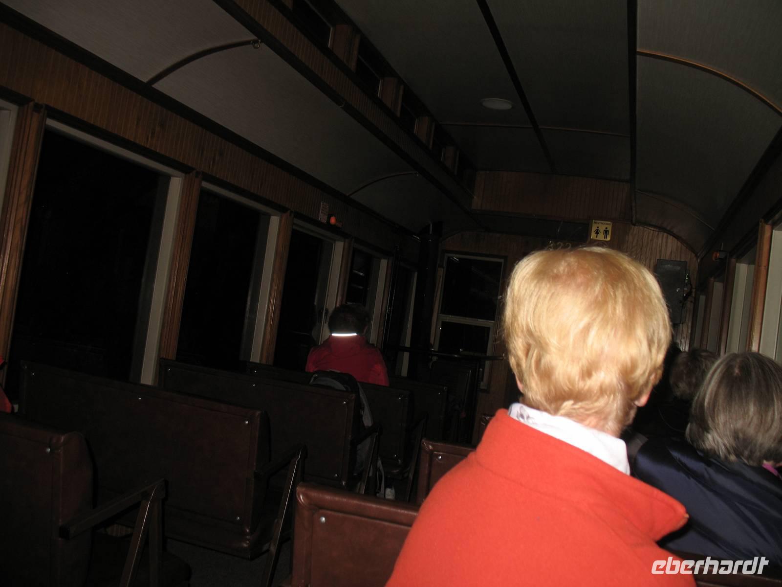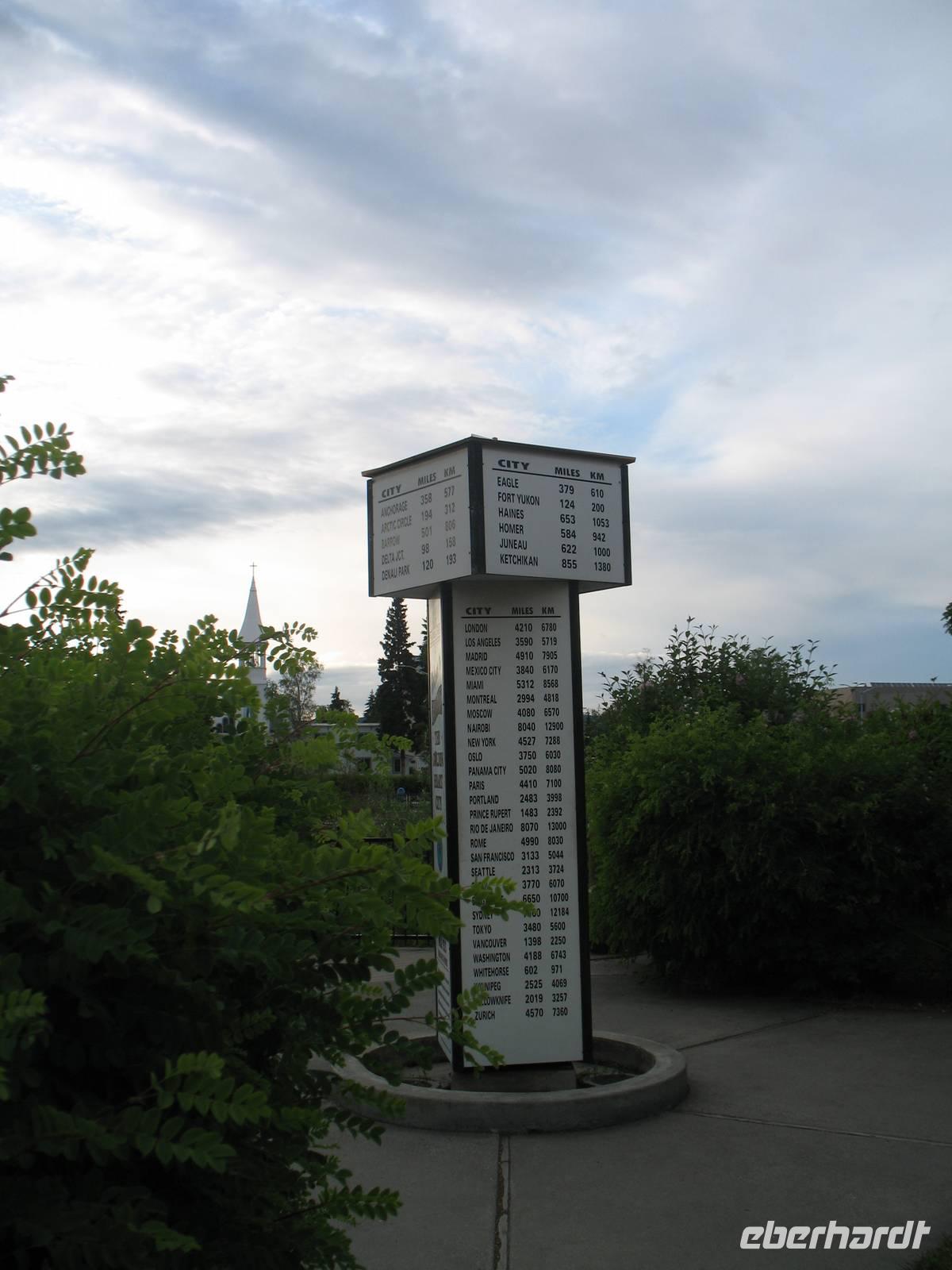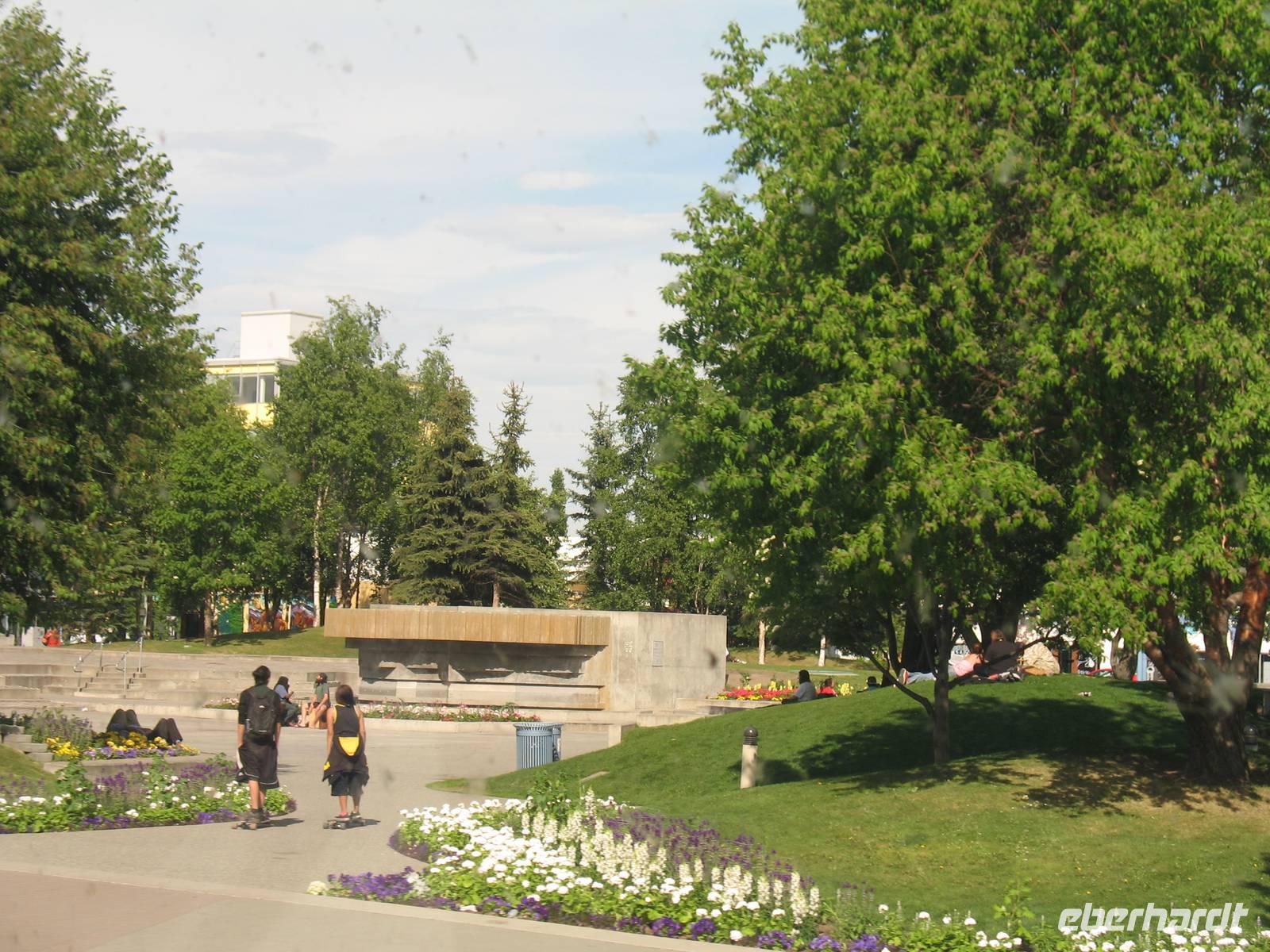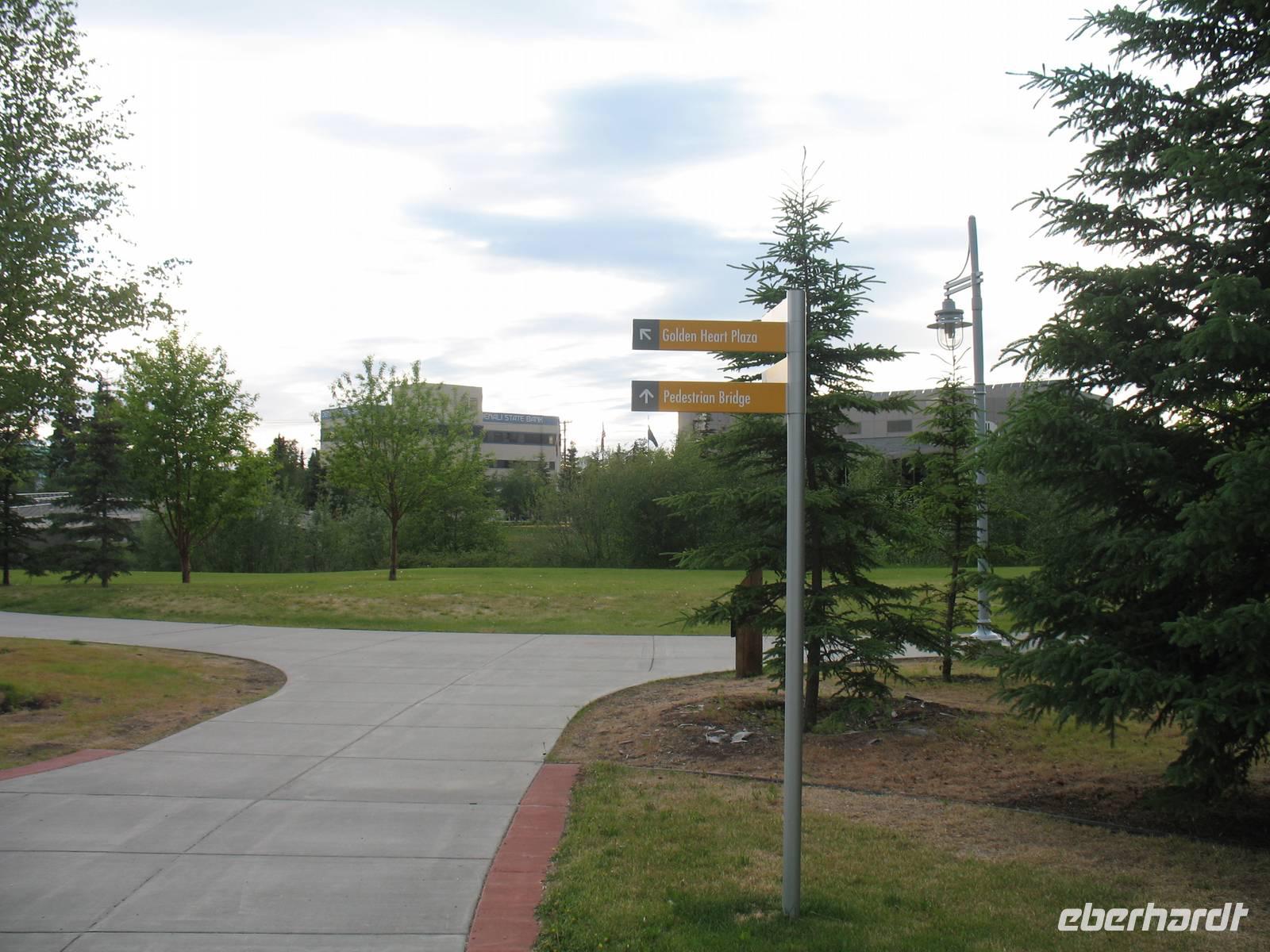 Dieser Tag steht ganz im Sinne der Frage: "Wo steht das Haus?" Dazu aber später mehr :-) Nach einer kurzen Nacht treffen wir uns alle mit unseren Koffern, um gemeinsam zum Bahnhof von Anchorage zu fahren. Das erste Highlight unserer spannenden Reise wird die Zugfahrt im Denali Star Gold Service von Anchorage nach Fairbanks sein, welche rund 568 Kilometer beträgt. Die Busfahrt zum Bahnhof dauert nur wenige Minuten und wir checken nach 07.00 Uhr unsere Koffer ein. Die freie Zeit bs zur Abfahrt 08.15 Uhr nutzen wir unter anderem zum Kauf von Ansichtskarten oder Getränken in der kleinen Bahnhofshalle. Dann geht es auch schon los ;-) Das Zugabteil besteht aus zwei Etagen. Auf der oberen Ebene sind unsere Sitzplätze. Wir haben das Glück, dass wir auf der Fahrt von Anchorage bis Denali freie Sitzplatzwahl haben. Während der Fahrt werden wir mit Frühstück, Mittagessen und Abendessen versorgt. Gegen 09.00 Uhr haben wir die Wahl zwischen einem herzhaften Frühstück mit Ei, Rentierwurst und Toastbrot, French Toast oder Jogurt. Denn Hunger haben wir jetzt auch!!! Dann genießen wir wieder die tolle Aussicht und traumhafte Landschaft. Jedes Zugabteil besitzt zudem eine überdachte Aussichtsplattform. Draußen ist es zwar windig und kühl, aber wir haben vorgesorgt und zudem warme Sachen eingepackt, obwohl wir diese Sachen die kommenden Tage nicht unbedingt benötigen werden ;-) Während wir unser Frühstück gern so früh wie möglich einnehmen, haben wir es mit dem Mittagessen nicht so eilig. Dank eines sehr leckeren Frühstücks kann Mittag ruhig noch warten! Kommen wir nun aber zur Frage: "Wo steht das Haus?". Über Lautsprecher ist uns gesagt worden, dass bald ein sehr interessantes Haus kommen soll, das berühmte Dr. Seuss House bei Willow. Das Besondere ist, dass es ausschaut, als wären mehrere Häuser übereinander gebaut wurden. Einige von uns haben daraufhin bei kühlem Wind auf der Aussichtsplattform gewartet, bis endlich dieses Haus zu sehen ist. Jedoch werden wir auch nach mehrmaligen Nachfragen bei der Sprecherin im Zug andauernd vertröstet, dass es doch gleich kommen soll. Letztendlich haben wir das Haus aber verpasst, da es leider nur bei den ersten Waggons rechtzeitig angekündigt wurde, bei uns ist dies leider zu spät erfolgt. Daher trägt dieser Tag den Titel: "Wo ist das Haus?" :-) Am Nachmittag gegen 14.00 Uhr begeben wir uns wieder in den Esswaggon auf der unteren Ebene. Das Mittagessen mit der Wahl zwischen Salat, Sandwich, Burger oder eine Art Schmorbraten ist genauso köstlich wie auch schon das Frühstück. Nach dem Essen genießen wir abermals die unglaubliche Aussicht bei einer sehr entspannten Zugfahrt. Einige erhaschen sogar einen kurzen Blick auf einen im Gras sitzenden Bären :-) Um 18.30 Uhr lassen wir uns ein weiteres leckeres Abendessen in Form von Weißfisch, Nudelpfanne, Hühnerbrust, Salat oder Suppe sowie ein besonders tolles Dessert schmecken. Dann erreichen wir auch schon unsere Endhaltestelle Fairbanks, wo wir um 20.00 Uhr ankommen. Wir holen unsere Koffer ab und fahren zum 2-Sterne-Plus-Hotel "Bridgewater Hotel" in Fairbanks, welches wir eine halbe Stunde später erreichen. Während der Großteil der Gäste sich nur noch auf ihre Zimmer zurückziehen möchte, unternehmen die anderen Reisegäste einen kleinen Spaziergang zum fünf Gehminuten entfernten "Golden Heart Plaza". Die Bergbaustadt Fairbanks ist besonders durch den ersten Goldfund 1902 des italienischen Einwanderers Felix Pedro bekannt. Das Pedro Monument zu seinen Ehren befindet sich heute rund 25 Kilometer von der Stelle der Stadt entfernt, wo er das Gold gefunden hatte. Damals zur gleichen Zeit ließ Captain E. T. Barnette zufällig eine Handelsstation am Flussufer des Chena River errichten. Zudem folgten nördlich von Fairbanks weitere beachtliche Goldfunde. Die Zeit des Goldrausches hatte also zu dieser Zeit begonnen! Nur ein Jahr später, nämlich 1903, hatte diese Stadt mit einer Dreiviertelmehrheit den Gemeindestatus erhalten. Nach unserem schönen Spaziergang freuen auch wir uns auf ein wenig Schlaf und wünschen eine gute Nacht!