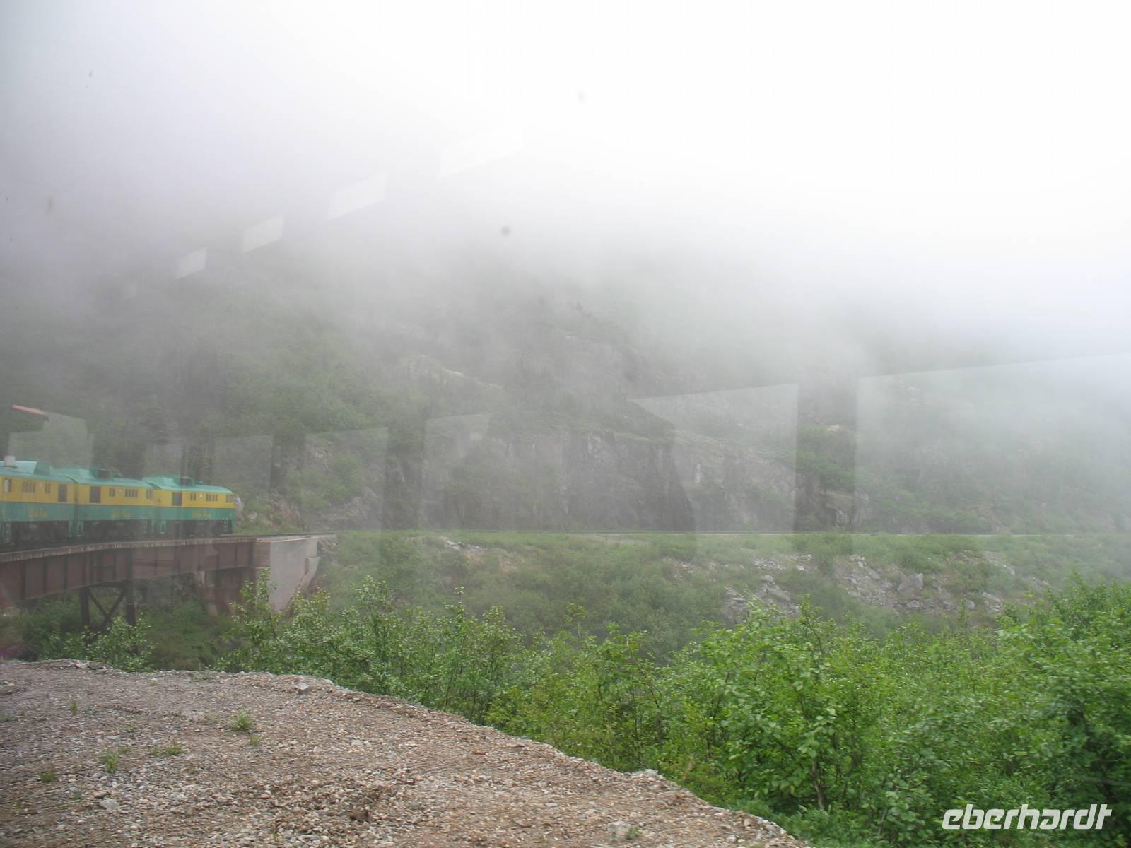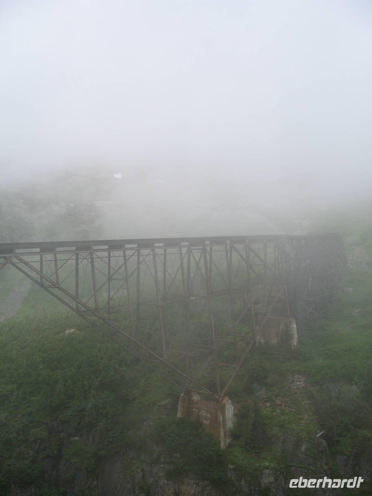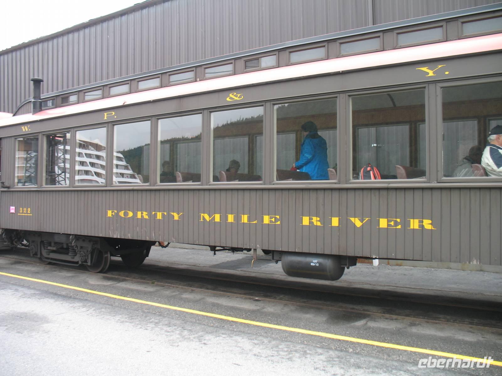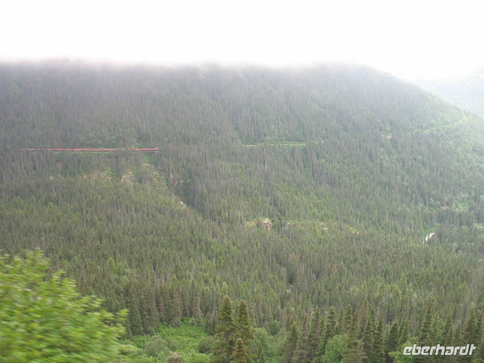 Unser heutiger Ausflug startet wieder sehr früh, so dass wir bereits gegen 06.45 Uhr frühstücken. Rund eine Stunde später treffen sich 15 Reisegäste zum gemeinsamen Ausflug "White Pass Scenic Railway" an der Rezeption auf Deck 5, um gemeinsam an Land zu gehen. Heute haben wir den Vorteil, einen deutschen Waggon zu haben, das heißt, die Übertragung im Zug ist in deutscher Sprache. Die Erklärungen und geschichtlichen Hintergründe während der Fahrt sind zudem mit Musik und Tiergeräuschen unterlegt. Dies gefällt uns wirklich richtig gut :-) Wir erfahren unter anderem, dass die Waggons Namen der schönsten Seen und Flüsse von Yukon, Alaska und British Columbia erhalten haben. Am 17. August 1896 wurde Gold in Klondike entdeckt, Ende Mai 1898 hatte der Bau der Route White Pass & Yukon begonnen und nur rund zwei Monate später am 21. Juli 1898 erfolgte der Einsatz der ersten Lokomotive. Die Zugfahrt dauert insgesamt 3,5 Stunden. Auf 32 Kilometer über dem Meeresspiegel steigt die Eisenbahn mit einer Erhebung von 3,9 Prozent auf über 900 Meter zum White Pass hinauf. Diese Schmalspurbahn besitzt ein drei Meter breites Gleisbett, die Schienen sind mit einer Spurweite von 914 Millimeter verlegt wurden und umfassen rund 177 Schienenkilometer. Die gesamte Strecke von Skagway bis zur Endhaltestelle Whitehorse in Kanada beträgt 110,4 Meilen. Wir werden aber nur bis zum White Pass fahren, also lediglich eine kleine Strecke von 20,4 Meilen bei einer Passhöhe von rund 873 Metern an der amerikanisch-kanadischen Grenze. Hier wird dann die Lokomotive umgehängt, die Stühle umgeklappt und die Seiten gewechselt :-) Während wir auf der Hinfahrt zum White Pass noch Nebel haben und die Aussicht nicht ganz so gut ist, erleben wir auf der Rückfahrt wieder Traumwetter. Aber wie sollte es auch anders sein, wir haben doch den Sonnenschein für unsere komplette Reise bestellt ;-) Die vorbeiziehende Landschaft ist wunderschön. Bei diesem Zug haben wir wieder die Möglichkeit, eine kleine Aussichtsplattform zu nutzen. Interessante Haltepunkte während unserer Fahrt sind zum Beispiel die Stationen "Denver" (5,8 Meilen), "Rocky Point" (6,9 Meilen), "Brackett Toad" (7,3 Meilen), "Buchanan Fels" (8,8 Meilen), "Black Cross Fels" (10,4 Meilen), "Stahlbrücke" (18,6 Meilen) und auch der "Pfad von 1898" (19,3 Meilen). Zudem passieren wir zwei Tunnel bei 16 Meilen und bei 18,8 Meilen. Gegen 11.30 Uhr erreichen wir den Bahnhof in Skagway. Während die Mehrheit der Gäste bereits jetzt aussteigt, besteht auch die Möglichkeit, zum Schiff zurückzufahren, Mittag zu essen und dann noch einmal in die Stadt zu gehen. Wir starten an diesem Tag erst um 17.00 Uhr in Richtung Ketchikan. In Skagway gibt es ebenfalls einen Saloon, obwohl derjenige in Juneau wohl eher originalgetreu erhalten ist. Einer der bekanntesten Persönlichkeiten dieses Örtchen ist der Kriminelle "Soapy" Smith, welcher seinen Namen aufgrund des Verkaufs spezieller Seifen erhalten hatte und auch durch sein Duell mit dem Landvermesser Frank H. Reid berühmt wurde. Weiterhin befinden sich viele Juweliere und Souvenirläden auf der Hauptstraße. In der Bibliothek ist zudem kostenloses WLAN vorhanden, wer dies eventuell benötigen sollte ;-) Spätestens 17.30 Uhr treffen sich einige Reisegäste wieder im Raum Borneo/Malaysia, um gemeinsam die wichtigsten Daten und Fakten für den Tagesauflug in Ketchikan am nächsten Tag zu besprechen. Den Abend lassen ein paar Gäste gemeinsam 20.00 Uhr im Menü-Restaurant "Four Seasons" bei sehr gutem Essen und leckeren Drinks ausklingen.