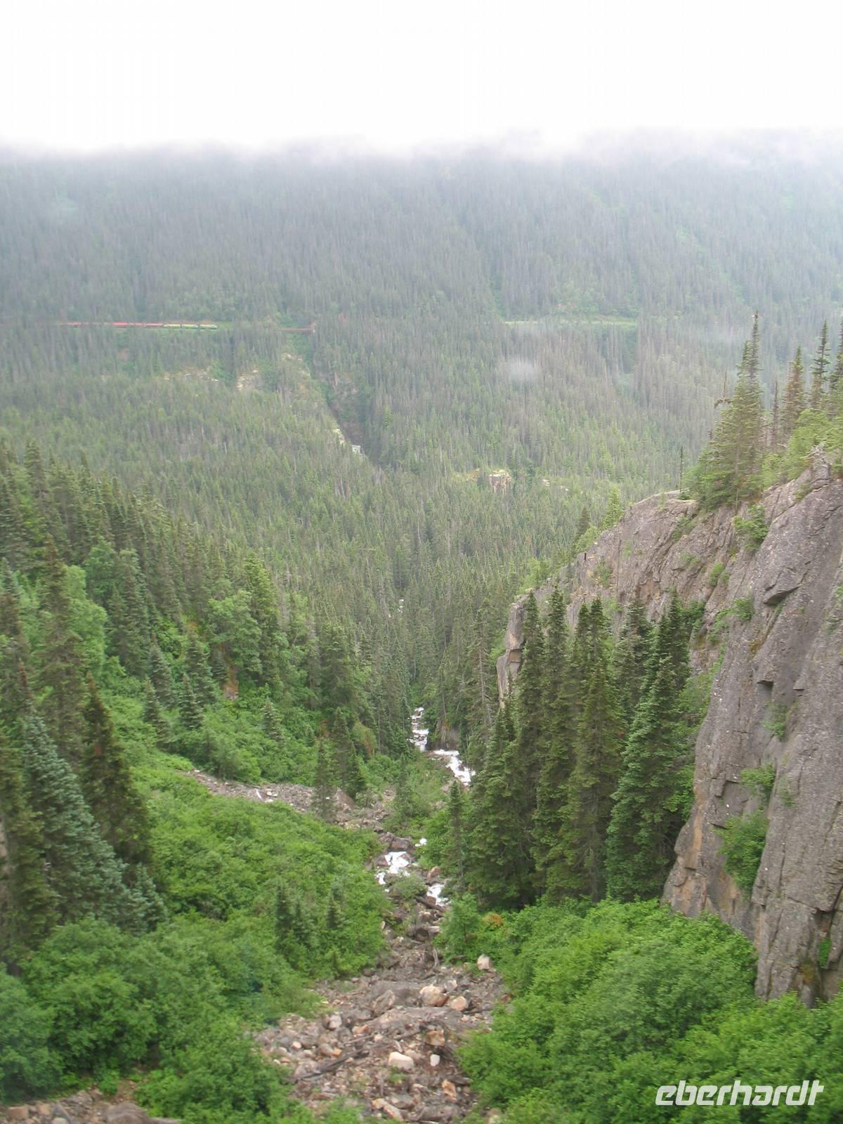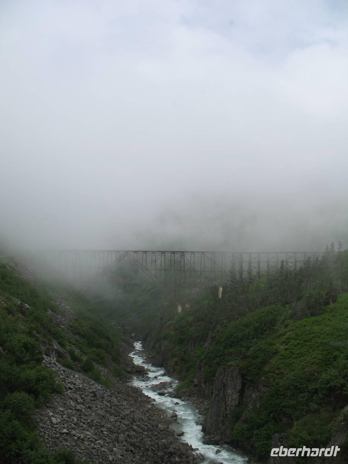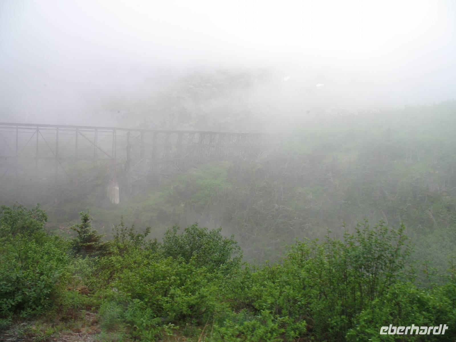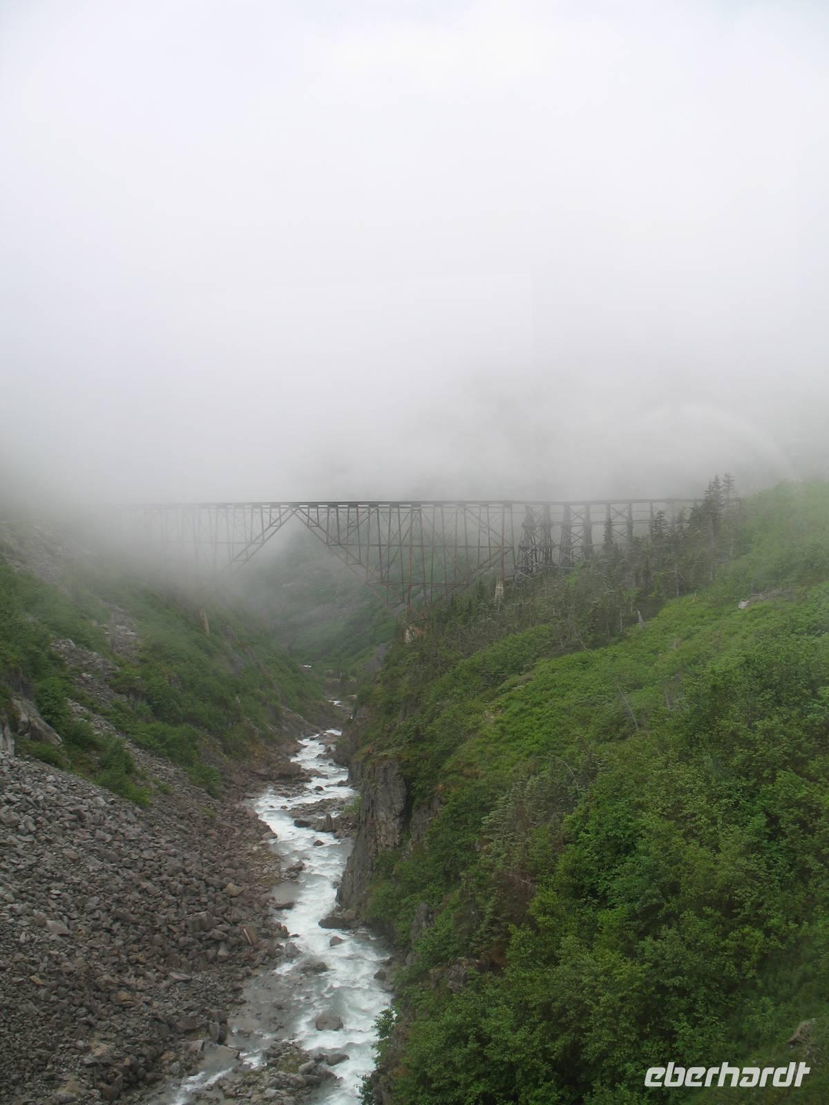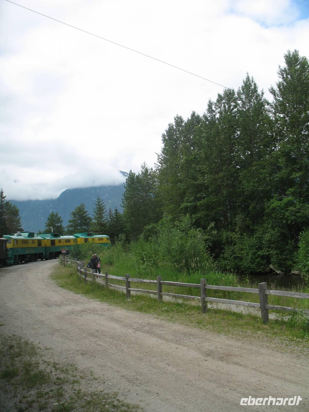Unser heutiger Ausflug startet wieder sehr früh, so dass wir bereits gegen 06.45 Uhr frühstücken. Rund eine Stunde später treffen sich 15 Reisegäste zum gemeinsamen Ausflug "White Pass Scenic Railway" an der Rezeption auf Deck 5, um gemeinsam an Land zu gehen. Heute haben wir den Vorteil, einen deutschen Waggon zu haben, das heißt, die Übertragung im Zug ist in deutscher Sprache. Die Erklärungen und geschichtlichen Hintergründe während der Fahrt sind zudem mit Musik und Tiergeräuschen unterlegt. Dies gefällt uns wirklich richtig gut :-) Wir erfahren unter anderem, dass die Waggons Namen der schönsten Seen und Flüsse von Yukon, Alaska und British Columbia erhalten haben. Am 17. August 1896 wurde Gold in Klondike entdeckt, Ende Mai 1898 hatte der Bau der Route White Pass & Yukon begonnen und nur rund zwei Monate später am 21. Juli 1898 erfolgte der Einsatz der ersten Lokomotive. Die Zugfahrt dauert insgesamt 3,5 Stunden. Auf 32 Kilometer über dem Meeresspiegel steigt die Eisenbahn mit einer Erhebung von 3,9 Prozent auf über 900 Meter zum White Pass hinauf. Diese Schmalspurbahn besitzt ein drei Meter breites Gleisbett, die Schienen sind mit einer Spurweite von 914 Millimeter verlegt wurden und umfassen rund 177 Schienenkilometer. Die gesamte Strecke von Skagway bis zur Endhaltestelle Whitehorse in Kanada beträgt 110,4 Meilen. Wir werden aber nur bis zum White Pass fahren, also lediglich eine kleine Strecke von 20,4 Meilen bei einer Passhöhe von rund 873 Metern an der amerikanisch-kanadischen Grenze. Hier wird dann die Lokomotive umgehängt, die Stühle umgeklappt und die Seiten gewechselt :-) Während wir auf der Hinfahrt zum White Pass noch Nebel haben und die Aussicht nicht ganz so gut ist, erleben wir auf der Rückfahrt wieder Traumwetter. Aber wie sollte es auch anders sein, wir haben doch den Sonnenschein für unsere komplette Reise bestellt ;-) Die vorbeiziehende Landschaft ist wunderschön. Bei diesem Zug haben wir wieder die Möglichkeit, eine kleine Aussichtsplattform zu nutzen. Interessante Haltepunkte während unserer Fahrt sind zum Beispiel die Stationen "Denver" (5,8 Meilen), "Rocky Point" (6,9 Meilen), "Brackett Toad" (7,3 Meilen), "Buchanan Fels" (8,8 Meilen), "Black Cross Fels" (10,4 Meilen), "Stahlbrücke" (18,6 Meilen) und auch der "Pfad von 1898" (19,3 Meilen). Zudem passieren wir zwei Tunnel bei 16 Meilen und bei 18,8 Meilen. Gegen 11.30 Uhr erreichen wir den Bahnhof in Skagway. Während die Mehrheit der Gäste bereits jetzt aussteigt, besteht auch die Möglichkeit, zum Schiff zurückzufahren, Mittag zu essen und dann noch einmal in die Stadt zu gehen. Wir starten an diesem Tag erst um 17.00 Uhr in Richtung Ketchikan. In Skagway gibt es ebenfalls einen Saloon, obwohl derjenige in Juneau wohl eher originalgetreu erhalten ist. Einer der bekanntesten Persönlichkeiten dieses Örtchen ist der Kriminelle "Soapy" Smith, welcher seinen Namen aufgrund des Verkaufs spezieller Seifen erhalten hatte und auch durch sein Duell mit dem Landvermesser Frank H. Reid berühmt wurde. Weiterhin befinden sich viele Juweliere und Souvenirläden auf der Hauptstraße. In der Bibliothek ist zudem kostenloses WLAN vorhanden, wer dies eventuell benötigen sollte ;-) Spätestens 17.30 Uhr treffen sich einige Reisegäste wieder im Raum Borneo/Malaysia, um gemeinsam die wichtigsten Daten und Fakten für den Tagesauflug in Ketchikan am nächsten Tag zu besprechen. Den Abend lassen ein paar Gäste gemeinsam 20.00 Uhr im Menü-Restaurant "Four Seasons" bei sehr gutem Essen und leckeren Drinks ausklingen.
