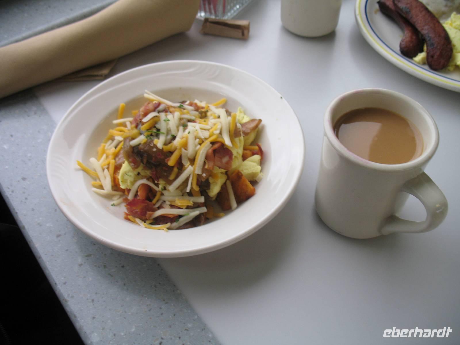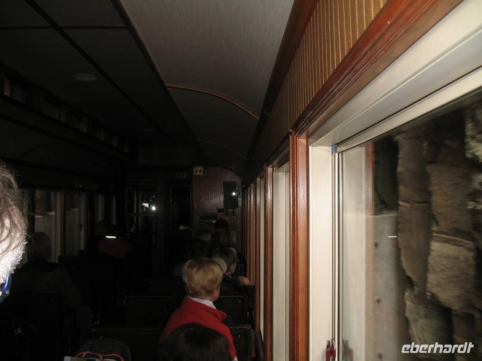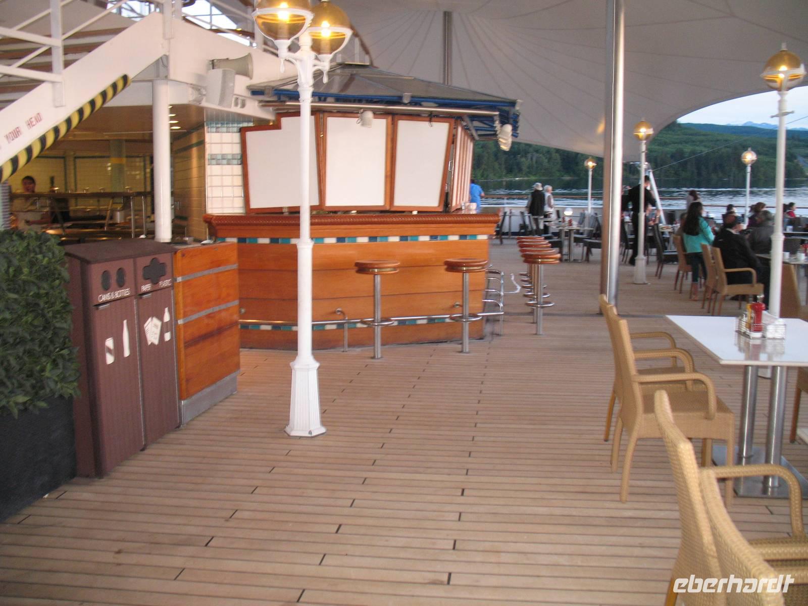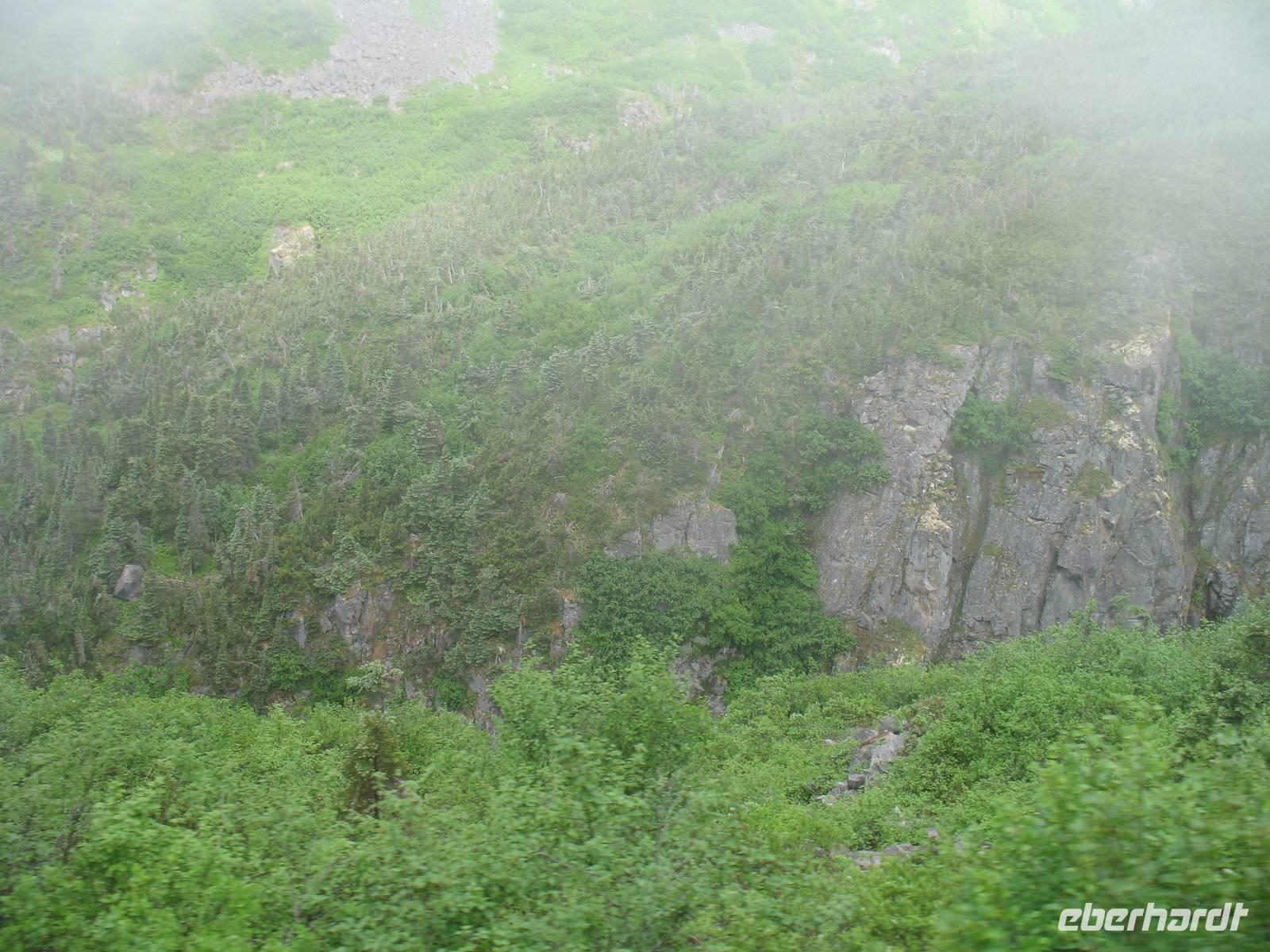 Unser heutiger Ausflug startet wieder sehr früh, so dass wir bereits gegen 06.45 Uhr frühstücken. Rund eine Stunde später treffen sich 15 Reisegäste zum gemeinsamen Ausflug "White Pass Scenic Railway" an der Rezeption auf Deck 5, um gemeinsam an Land zu gehen. Heute haben wir den Vorteil, einen deutschen Waggon zu haben, das heißt, die Übertragung im Zug ist in deutscher Sprache. Die Erklärungen und geschichtlichen Hintergründe während der Fahrt sind zudem mit Musik und Tiergeräuschen unterlegt. Dies gefällt uns wirklich richtig gut :-) Wir erfahren unter anderem, dass die Waggons Namen der schönsten Seen und Flüsse von Yukon, Alaska und British Columbia erhalten haben. Am 17. August 1896 wurde Gold in Klondike entdeckt, Ende Mai 1898 hatte der Bau der Route White Pass & Yukon begonnen und nur rund zwei Monate später am 21. Juli 1898 erfolgte der Einsatz der ersten Lokomotive. Die Zugfahrt dauert insgesamt 3,5 Stunden. Auf 32 Kilometer über dem Meeresspiegel steigt die Eisenbahn mit einer Erhebung von 3,9 Prozent auf über 900 Meter zum White Pass hinauf. Diese Schmalspurbahn besitzt ein drei Meter breites Gleisbett, die Schienen sind mit einer Spurweite von 914 Millimeter verlegt wurden und umfassen rund 177 Schienenkilometer. Die gesamte Strecke von Skagway bis zur Endhaltestelle Whitehorse in Kanada beträgt 110,4 Meilen. Wir werden aber nur bis zum White Pass fahren, also lediglich eine kleine Strecke von 20,4 Meilen bei einer Passhöhe von rund 873 Metern an der amerikanisch-kanadischen Grenze. Hier wird dann die Lokomotive umgehängt, die Stühle umgeklappt und die Seiten gewechselt :-) Während wir auf der Hinfahrt zum White Pass noch Nebel haben und die Aussicht nicht ganz so gut ist, erleben wir auf der Rückfahrt wieder Traumwetter. Aber wie sollte es auch anders sein, wir haben doch den Sonnenschein für unsere komplette Reise bestellt ;-) Die vorbeiziehende Landschaft ist wunderschön. Bei diesem Zug haben wir wieder die Möglichkeit, eine kleine Aussichtsplattform zu nutzen. Interessante Haltepunkte während unserer Fahrt sind zum Beispiel die Stationen "Denver" (5,8 Meilen), "Rocky Point" (6,9 Meilen), "Brackett Toad" (7,3 Meilen), "Buchanan Fels" (8,8 Meilen), "Black Cross Fels" (10,4 Meilen), "Stahlbrücke" (18,6 Meilen) und auch der "Pfad von 1898" (19,3 Meilen). Zudem passieren wir zwei Tunnel bei 16 Meilen und bei 18,8 Meilen. Gegen 11.30 Uhr erreichen wir den Bahnhof in Skagway. Während die Mehrheit der Gäste bereits jetzt aussteigt, besteht auch die Möglichkeit, zum Schiff zurückzufahren, Mittag zu essen und dann noch einmal in die Stadt zu gehen. Wir starten an diesem Tag erst um 17.00 Uhr in Richtung Ketchikan. In Skagway gibt es ebenfalls einen Saloon, obwohl derjenige in Juneau wohl eher originalgetreu erhalten ist. Einer der bekanntesten Persönlichkeiten dieses Örtchen ist der Kriminelle "Soapy" Smith, welcher seinen Namen aufgrund des Verkaufs spezieller Seifen erhalten hatte und auch durch sein Duell mit dem Landvermesser Frank H. Reid berühmt wurde. Weiterhin befinden sich viele Juweliere und Souvenirläden auf der Hauptstraße. In der Bibliothek ist zudem kostenloses WLAN vorhanden, wer dies eventuell benötigen sollte ;-) Spätestens 17.30 Uhr treffen sich einige Reisegäste wieder im Raum Borneo/Malaysia, um gemeinsam die wichtigsten Daten und Fakten für den Tagesauflug in Ketchikan am nächsten Tag zu besprechen. Den Abend lassen ein paar Gäste gemeinsam 20.00 Uhr im Menü-Restaurant "Four Seasons" bei sehr gutem Essen und leckeren Drinks ausklingen.