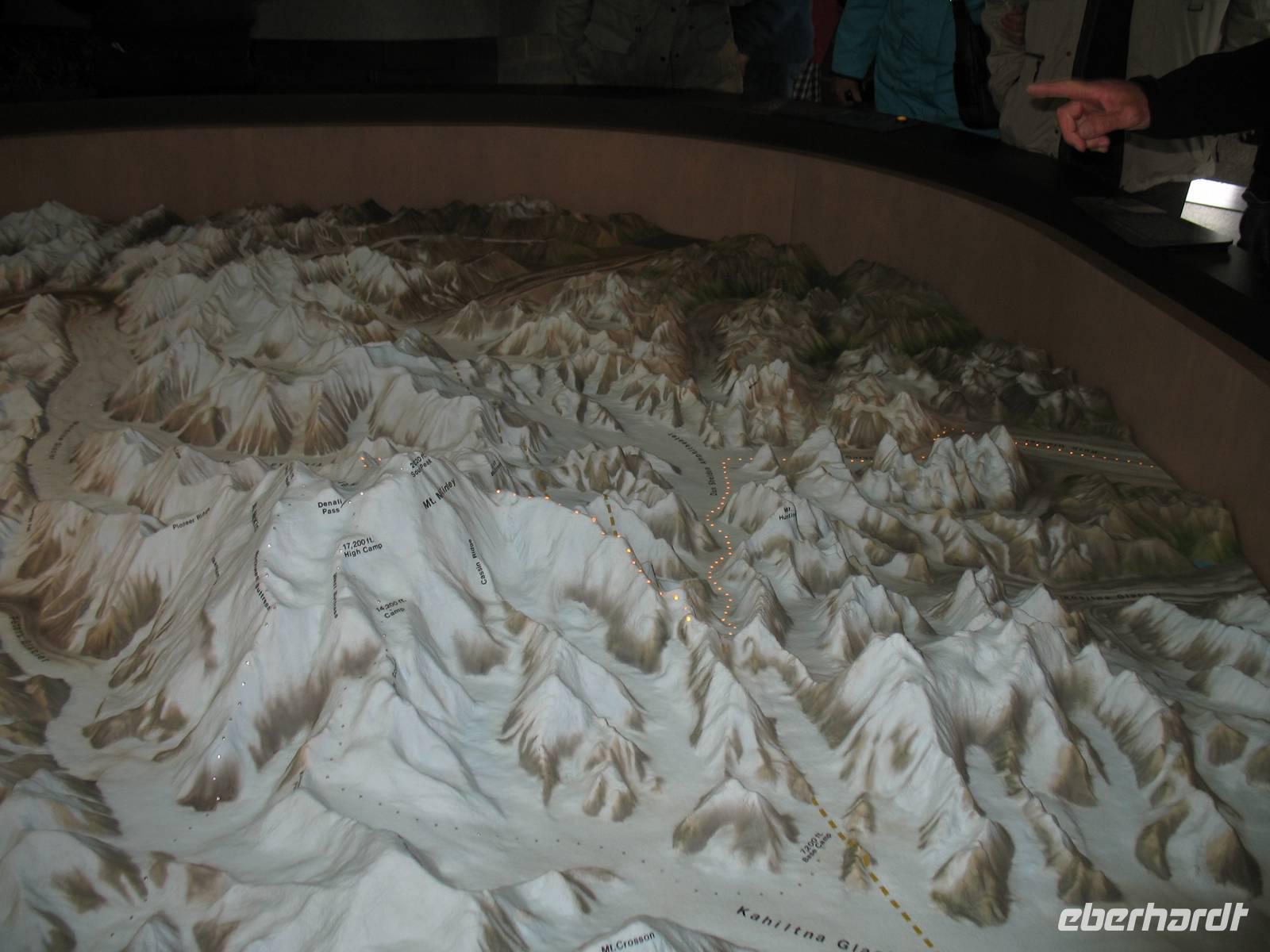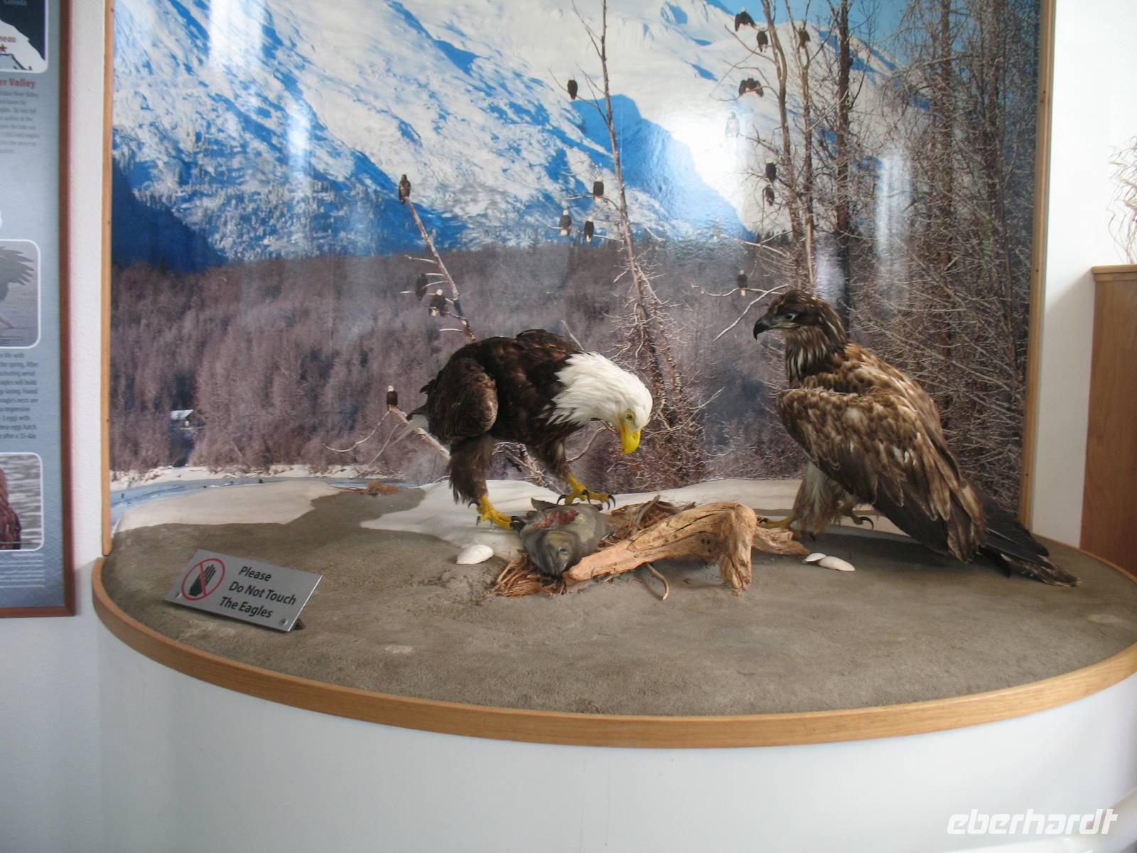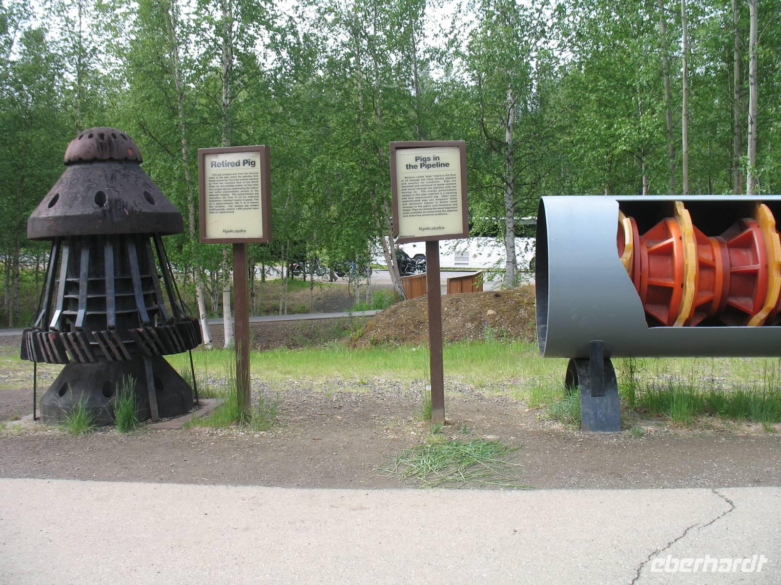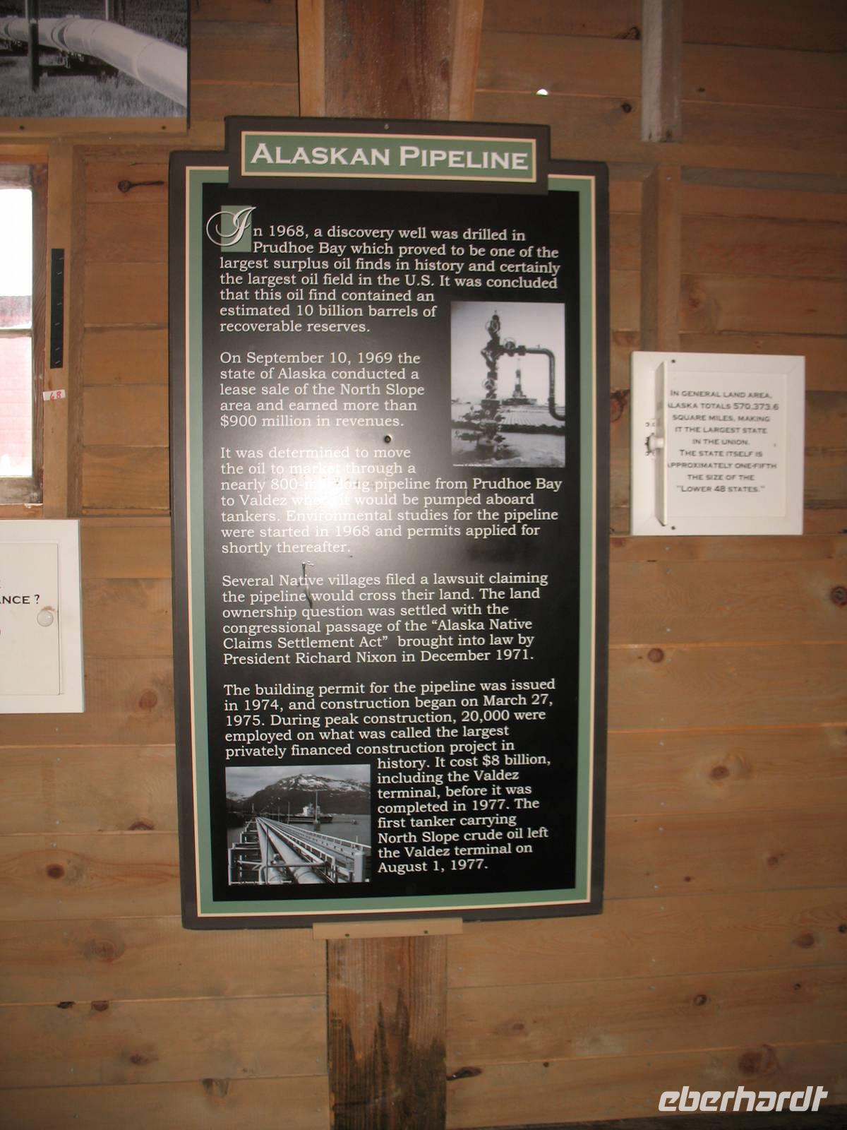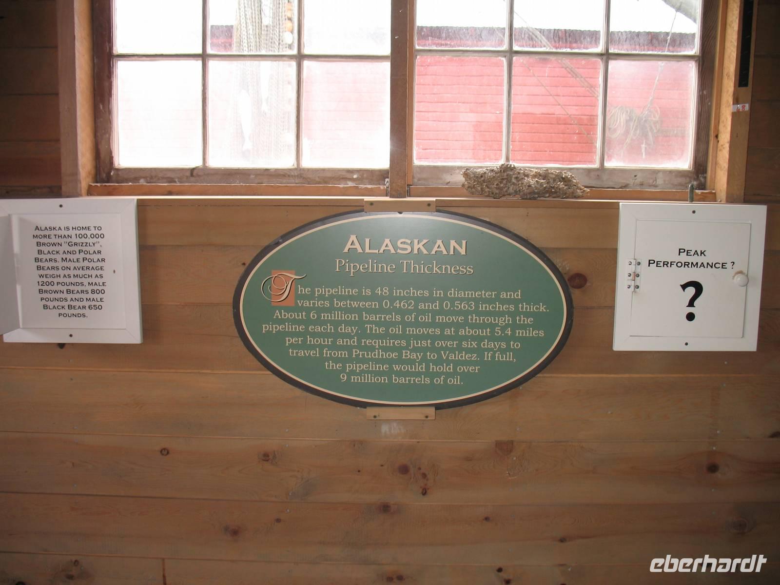 Gutgelaunt starten wir mit einem leckeren Frühstück in den Tag. Danach heißt es wieder Kofferladen, dazu treffen wir uns alle 08.30 Uhr am Bus. Während der Bus mit unserem Gepäck zur Touristeninformation vorfährt, unternehmen wir einen Stadtrundgang vorbei an der kleinen Kirche und dem "Golden Heart Plaza" bis zur Touristeninformation, von welcher wir ganz begeistert sind. Es gibt eine Menge Informationsmaterial, eine große 3D-Landkarte von Alaska und Nachbildungen zur Geschichte Alaskas. Kommen wir doch gleich zu ein paar Zahlen und Fakten. Unter anderem beinhaltet Alaska 17 der 20 höchsten Spitzen der USA und ist zudem weniger als drei Meilen von Russland entfernt. Bezüglich der Fläche ist der 49. Bundesstaat Amerikas größer als die vier größten Bundesstaaten zusammen. Zum Beispiel ist Kodiak die zweitgrößte Insel der USA. In Alaska sind über drei Millionen Seen zu finden. Zudem besitzt dieser Bundesstaat eine größere Küste als alle anderen US-Staaten zusammen. Wenn New York die gleiche Bevölkerungsdichte wie Alaska hätte, dann würden nur 16 Menschen in Manhatten wohnen!!!! Über die Hälfte der Bevölkerung lebt in Anchorage und Umgebung, mit rund 1.955 Quadratmeilen ist sie die größte Stadt Alaskas. Mehr als die Häfte der aktiven Gletscher weltweit gibt es in Alaska. Des Weiteren befinden sich 124 geothermische Gebiete in Alaska wie Chena, Circle, Melozi und Manley in der Nähe von Fairbanks, welche auch heiße Quellen aufweisen. Dies sind nur einige interessante Fakten über Alaska, dessen Geschichten und Mythen aber ebenso beeindruckend sind ;-) Bei unserem Rundgang sehen wir unterschiedliche Pflanzen und Bäume, besonders der Virginische Traubenkirschbaum "Choke Cherry" mit seinen weißen Blüten ist auffallend. Gegen 10.00 Uhr fahren wir zur Pipeline beim Alyeska Pipeline Visitor Center in Fairbanks. Hier legen wir einen Fotostopp von 20 Minuten ein. Danach führt uns unsere Reise weiter zum Supermarkt Fred Meyers in Fairbanks, wo wir unsere Mittagspause verbringen. Dieser Supermarkt ist einfach nur riesig und besonders die Auswahl an Obst und Gemüse ist großartig. Es gibt zudem eine Theke, wo bereits zubereitete Gerichte in individueller Menge gekauft und im Sitzbereich im Supermarkt gegessen werden können. Andere Gäste ohne gebuchter Halbpension haben hier die Möglichkeit, sich ausreichend mit Lebensmitteln, Salaten und Sandwich selbst zu versorgen. Gegen 12.30 Uhr fahren wir weiter zur Universität von Fairbanks mit kurzem Fotostopp. Rund eine Stunde später legen wir einen halbstündigen Zwischenstopp im Örtchen Nenana ein, bevor wir weiter nach Denali fahren. Einige Reisegäste spazieren durch den Ort, während andere Gäste sich einfach auf eine Bank setzen und die Sonnenstahlen auf ihr Gesicht scheinen lassen. Das Wetter verwöhnt uns nämlich :-) Während es in Deutschland eher kühl und regnerisch ist, haben wir strahlenden Sonnenschein. Aber wenn Engel reisen, dann lacht ja bekanntlich der Himmel! Die sonnigen Tage werden uns auf der Reise auch erhalten bleiben ;-) Am späten Nachmittag erreichen wir dann unser Hotel für die nächsten zwei Nächte, das 4-Sterne-Hotel "Grande Denali Lodge" in Parks Hwy, Denali. Das Hotel ist umgeben von großartiger Natur und besonders die ruhige Lage gefällt uns sehr, einfach perfekt zum Entspannen und um die atemberaubende Landschaft zu genießen :-) Die Gäste ohne gebuchter Halbpension sehen wir erst am nächsten Morgen wieder. Die Anderen haben rund zwei Stunden Freizeit bis zum Abendessen. Wir fahren gemeinsam mit dem Shuttle gegen 18.00 Uhr ins Restaurant "Denali Park Salmon". Unser Menüessen besteht aus Salat, Fish & Chips oder Surf & Turf sowie Kuchen. Dazu gibt es Wein, Bier und Softdrinks auf eigene Rechnung. Das Essen im sehr rustikalem und urigem Restaurant schmeckt uns gut. Während der Großteil der Gäste auf den Busshuttle wartet, spazieren zwei Gäste und Hannelore zum Hotel zurück. Der Weg wirkt dabei länger als gedacht :-) Unsere Spaziergänger sind aber noch vor uns am Hotel, also wollen wir am nächsten Tag die Strecke ebenfalls testen! Wieder zurück im Hotel freuen wir uns schon auf eine angenehme ruhige Nacht!