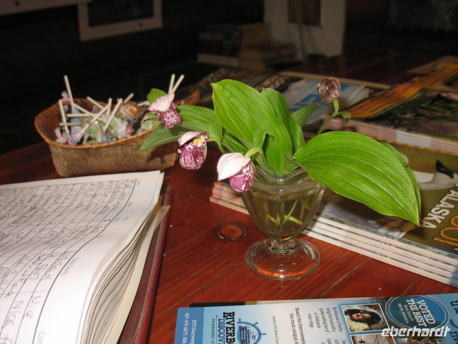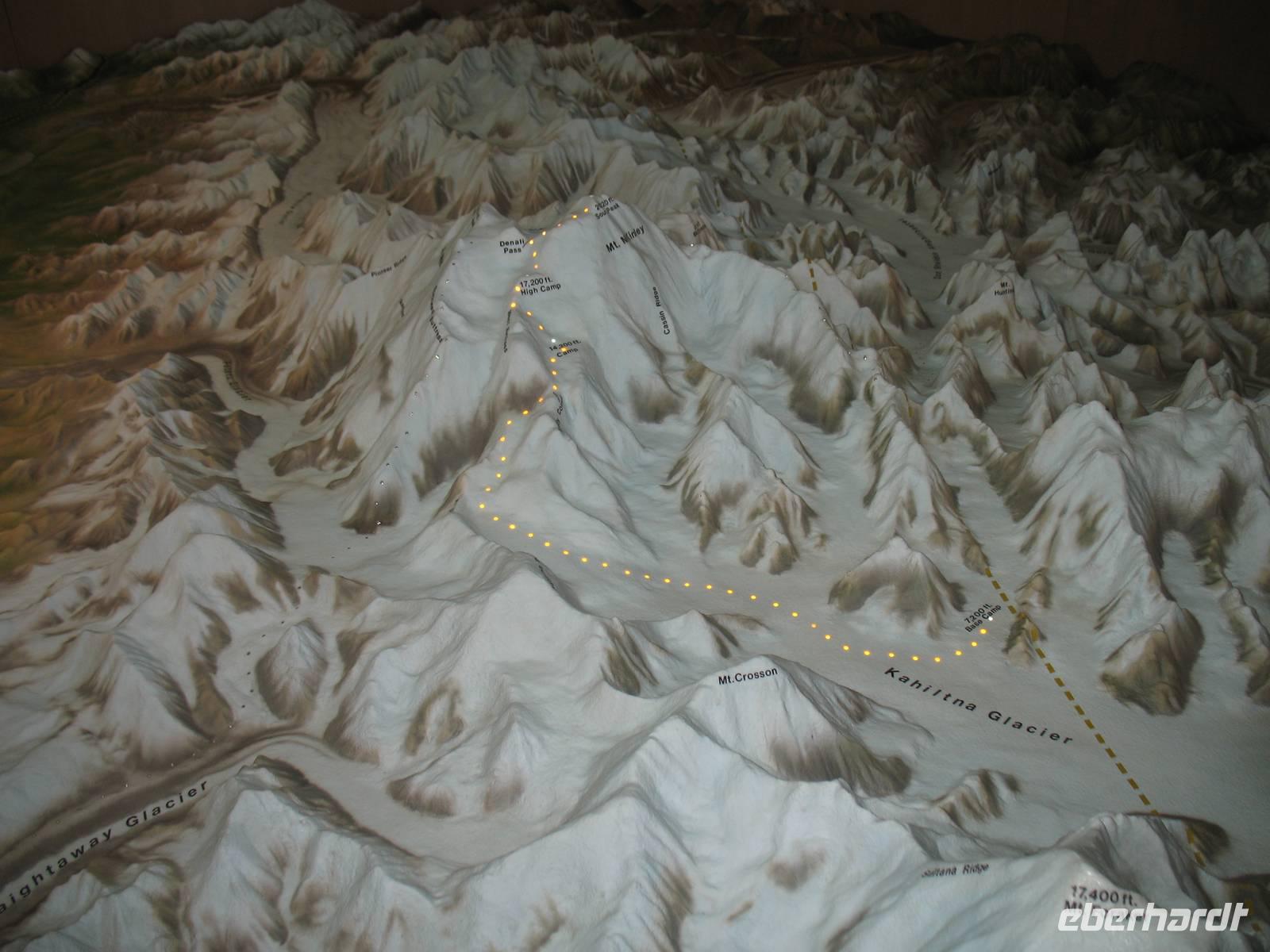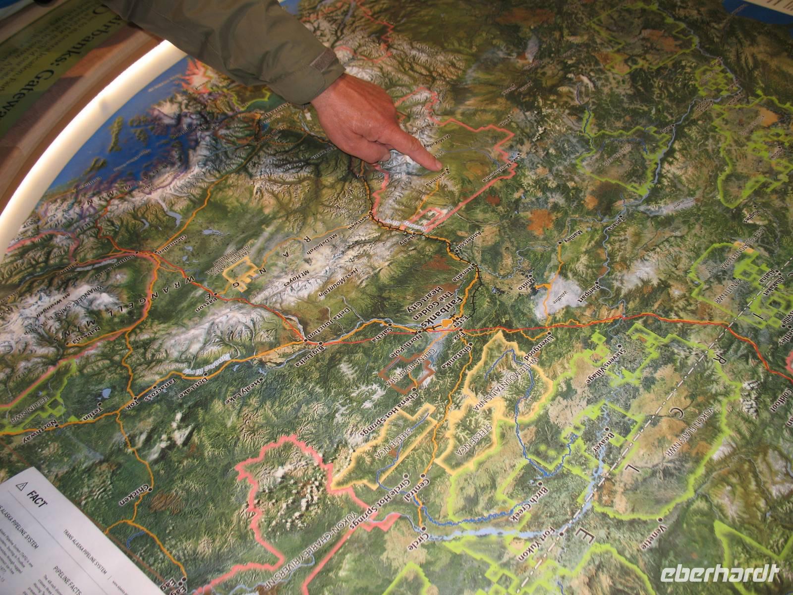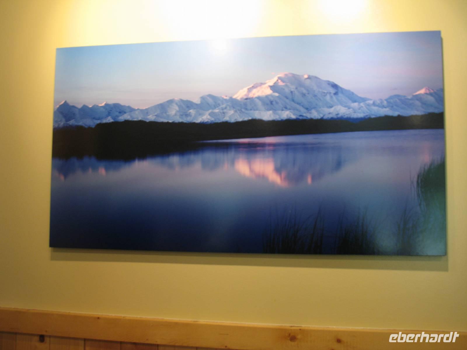 Gutgelaunt starten wir mit einem leckeren Frühstück in den Tag. Danach heißt es wieder Kofferladen, dazu treffen wir uns alle 08.30 Uhr am Bus. Während der Bus mit unserem Gepäck zur Touristeninformation vorfährt, unternehmen wir einen Stadtrundgang vorbei an der kleinen Kirche und dem "Golden Heart Plaza" bis zur Touristeninformation, von welcher wir ganz begeistert sind. Es gibt eine Menge Informationsmaterial, eine große 3D-Landkarte von Alaska und Nachbildungen zur Geschichte Alaskas. Kommen wir doch gleich zu ein paar Zahlen und Fakten. Unter anderem beinhaltet Alaska 17 der 20 höchsten Spitzen der USA und ist zudem weniger als drei Meilen von Russland entfernt. Bezüglich der Fläche ist der 49. Bundesstaat Amerikas größer als die vier größten Bundesstaaten zusammen. Zum Beispiel ist Kodiak die zweitgrößte Insel der USA. In Alaska sind über drei Millionen Seen zu finden. Zudem besitzt dieser Bundesstaat eine größere Küste als alle anderen US-Staaten zusammen. Wenn New York die gleiche Bevölkerungsdichte wie Alaska hätte, dann würden nur 16 Menschen in Manhatten wohnen!!!! Über die Hälfte der Bevölkerung lebt in Anchorage und Umgebung, mit rund 1.955 Quadratmeilen ist sie die größte Stadt Alaskas. Mehr als die Häfte der aktiven Gletscher weltweit gibt es in Alaska. Des Weiteren befinden sich 124 geothermische Gebiete in Alaska wie Chena, Circle, Melozi und Manley in der Nähe von Fairbanks, welche auch heiße Quellen aufweisen. Dies sind nur einige interessante Fakten über Alaska, dessen Geschichten und Mythen aber ebenso beeindruckend sind ;-) Bei unserem Rundgang sehen wir unterschiedliche Pflanzen und Bäume, besonders der Virginische Traubenkirschbaum "Choke Cherry" mit seinen weißen Blüten ist auffallend. Gegen 10.00 Uhr fahren wir zur Pipeline beim Alyeska Pipeline Visitor Center in Fairbanks. Hier legen wir einen Fotostopp von 20 Minuten ein. Danach führt uns unsere Reise weiter zum Supermarkt Fred Meyers in Fairbanks, wo wir unsere Mittagspause verbringen. Dieser Supermarkt ist einfach nur riesig und besonders die Auswahl an Obst und Gemüse ist großartig. Es gibt zudem eine Theke, wo bereits zubereitete Gerichte in individueller Menge gekauft und im Sitzbereich im Supermarkt gegessen werden können. Andere Gäste ohne gebuchter Halbpension haben hier die Möglichkeit, sich ausreichend mit Lebensmitteln, Salaten und Sandwich selbst zu versorgen. Gegen 12.30 Uhr fahren wir weiter zur Universität von Fairbanks mit kurzem Fotostopp. Rund eine Stunde später legen wir einen halbstündigen Zwischenstopp im Örtchen Nenana ein, bevor wir weiter nach Denali fahren. Einige Reisegäste spazieren durch den Ort, während andere Gäste sich einfach auf eine Bank setzen und die Sonnenstahlen auf ihr Gesicht scheinen lassen. Das Wetter verwöhnt uns nämlich :-) Während es in Deutschland eher kühl und regnerisch ist, haben wir strahlenden Sonnenschein. Aber wenn Engel reisen, dann lacht ja bekanntlich der Himmel! Die sonnigen Tage werden uns auf der Reise auch erhalten bleiben ;-) Am späten Nachmittag erreichen wir dann unser Hotel für die nächsten zwei Nächte, das 4-Sterne-Hotel "Grande Denali Lodge" in Parks Hwy, Denali. Das Hotel ist umgeben von großartiger Natur und besonders die ruhige Lage gefällt uns sehr, einfach perfekt zum Entspannen und um die atemberaubende Landschaft zu genießen :-) Die Gäste ohne gebuchter Halbpension sehen wir erst am nächsten Morgen wieder. Die Anderen haben rund zwei Stunden Freizeit bis zum Abendessen. Wir fahren gemeinsam mit dem Shuttle gegen 18.00 Uhr ins Restaurant "Denali Park Salmon". Unser Menüessen besteht aus Salat, Fish & Chips oder Surf & Turf sowie Kuchen. Dazu gibt es Wein, Bier und Softdrinks auf eigene Rechnung. Das Essen im sehr rustikalem und urigem Restaurant schmeckt uns gut. Während der Großteil der Gäste auf den Busshuttle wartet, spazieren zwei Gäste und Hannelore zum Hotel zurück. Der Weg wirkt dabei länger als gedacht :-) Unsere Spaziergänger sind aber noch vor uns am Hotel, also wollen wir am nächsten Tag die Strecke ebenfalls testen! Wieder zurück im Hotel freuen wir uns schon auf eine angenehme ruhige Nacht!