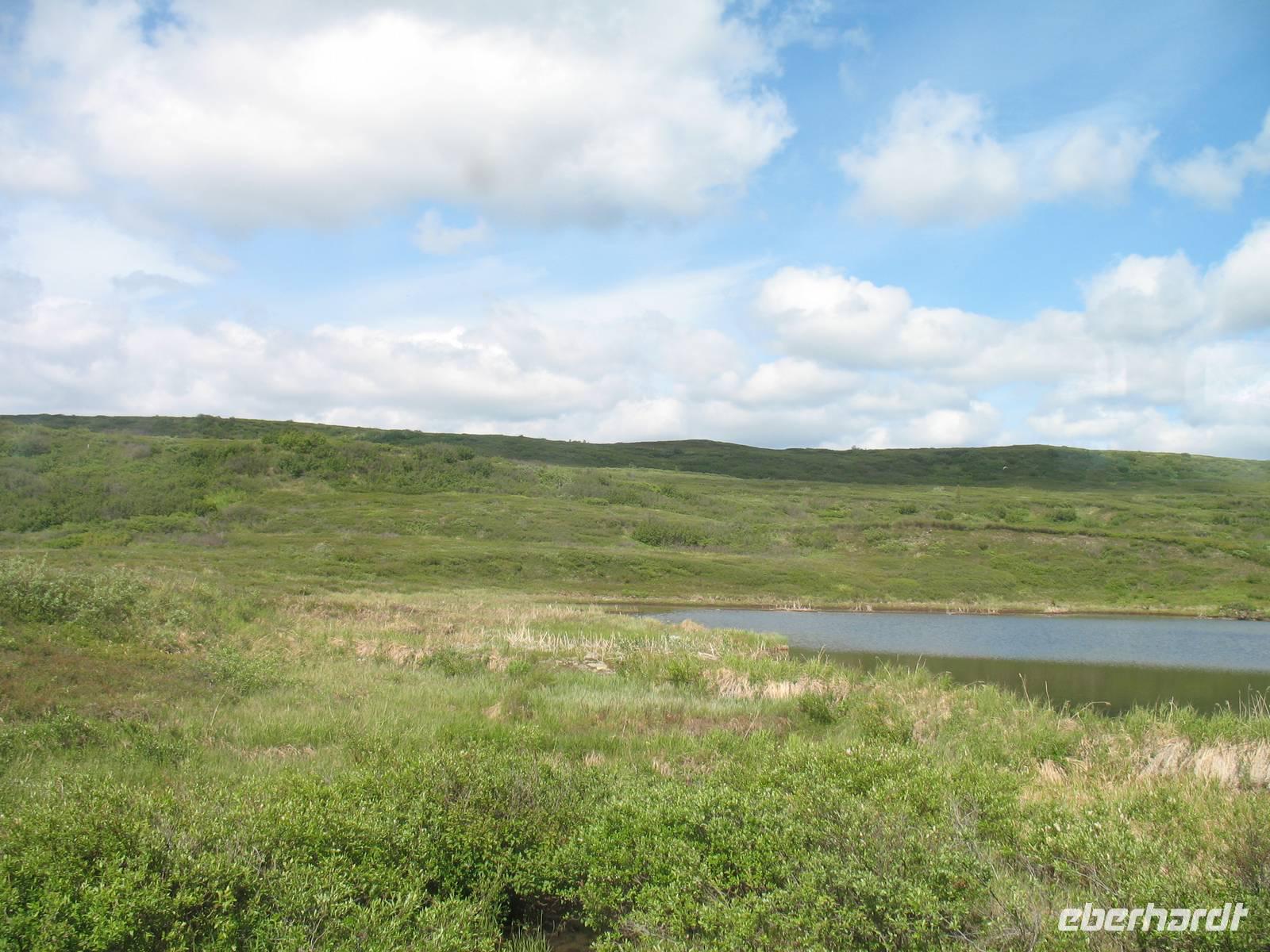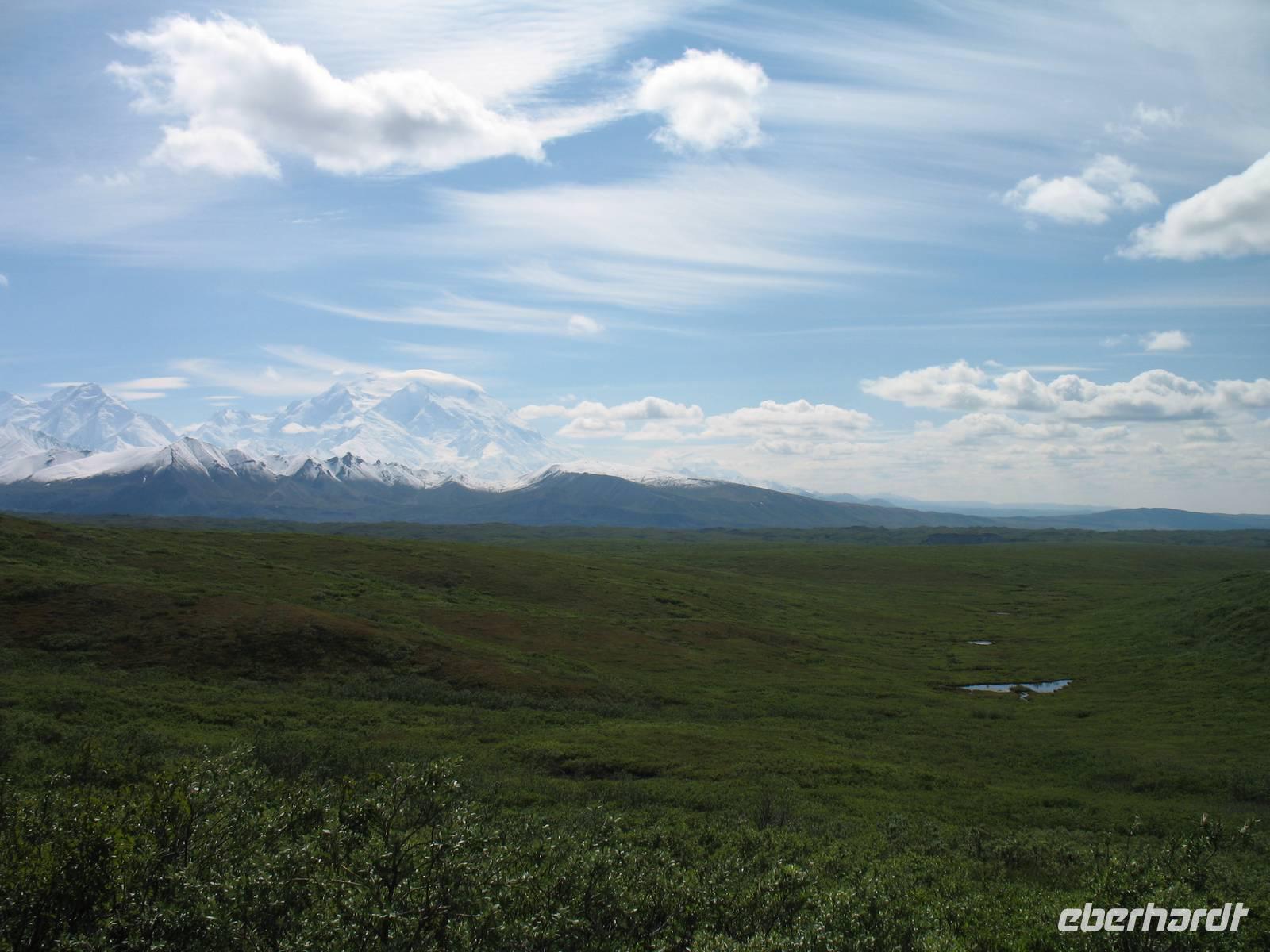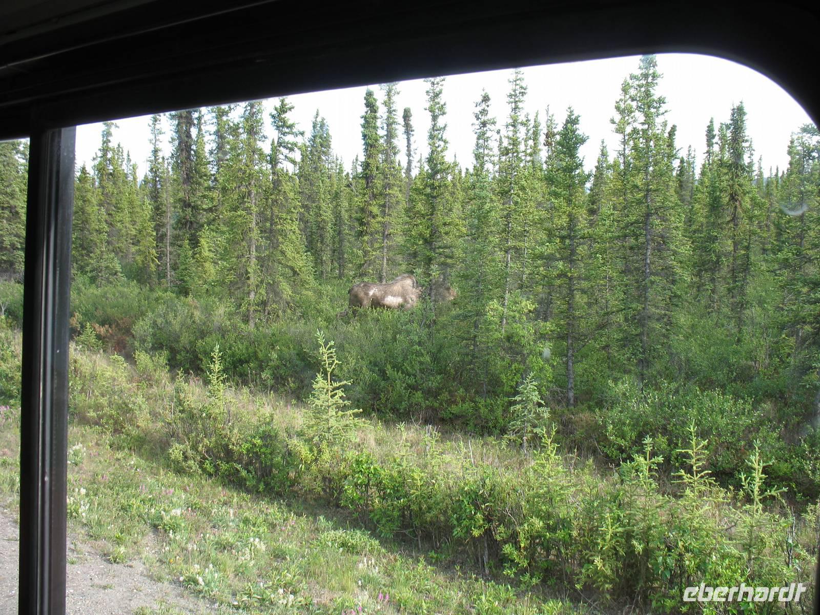 Heute startet unser Abenteuer "Kantishna Wilderness Trails Tour" im Denali Nationalpark wieder sehr früh am Morgen. Bereits um 05.00 Uhr gibt es ein dennoch ausgiebiges Frühstück, eine Stunde später werden wir bereits mit dem Busshuttle vom Hotel "Grande Denali Lodge" zum "Denali Bluffs Hotel" fahren. Um 06.30 Uhr beginnt dann die Tagestour im Denali Nationalpark, welcher zuerst unter dem Namen Mt. McKinley National Park 1917 eröffnet wurden ist. Erst im Jahr 1980 hat der Park seinen heutigen Namen erhalten, zudem wurde der Park von 800.000 Hektar auf 2,2 Millionen Hektar erweitert. Denali stammt aus dem Athabaskanischen und ist mit "der Hohe" zu übersetzen. Die meist gesehenen Tierarten sind Karibu, Dallschafe, Elche, Wölfe und mit sehr viel Glück auch die erhofften Bären. Jeder Bus im Nationalpark hat einen Namen. Unser Busfahrer heißt Clifford und unser Bus Moe. Der fast sechsstündige erste Teil der Tagestour bis nach Kantishna, wo wir unsere Mittagspause verbringen werden, beinhaltet mehrere kleine Pausen und auch viele Fotostopps, je nachdem, ob Tiere zu sehen sind oder nicht. Zuerst legen wir eine kurze Bio-Pause ein, anderthalb Stunden später einen Stopp beim National Park Service, hier gibt es auch einen leckeren Schoko-Keks für jeden :-) Während der Fahrt sehen wir viele verschiedene Pflanzen und Bäume. Zum Beispiel zeigen sich immergrüne Bäume gemischt mit Balsampappeln, Espen und Papierbirken in der Taiga. Der aus dem Russisch stammende Name dieser Landschaft kann zum Beispiel mit Waldland übersetzt werden. Dagegen sind in der feuchten oder auch trocknen Tundra Büsche, Riedgräser, Kräuter, Moosarten, Flechten oder besonders in der feuchten Tundra auch Zwergbirken und Weiden zu finden. In Denali wechselt die Tundra bei etwa 800 Metern, also über der Baumgrenze, die Taiga ab. Über 1.020 Meter hoch zeigt sich die trockene oder alpine Tundra überwiegend mit 7 bis 10 Zentimeter hohen Pflanzen. Dabei befindet sich die Obergrenze der Pflanzenwelt bei circa 2.200 Metern. Insgesamt gibt es 450 verschiedene Baum-, Busch- und Kräuterarten in Denali zu entdecken. Aber kommen wir nun zur atemberaubenden Wildnis :-) Unterwegs sehen wir mehrere Karibus (englisch: Caribou) und Dallschafe (englisch: Dall Sheep). Bei einem weiteren Stopp am Eielson Visitor Center können wir leider den höchsten Berg Nordamerikas, den Mount McKinley, mit eine Höhe von 6.195 Metern noch nicht sehen, aber ein Blick auf ihn soll uns an diesem Tag nicht verwehrt bleiben :-) Während unserer Fahrt erzählt uns unserer Busfahrer Clifford auch von der wahren Geschichte eines jungen Mannes aus wohlhabender Familie der Ostküste Amerikas namens Christopher Johnson McCandless, welcher 1992 durch Alaska trampte auf der Suche nach sich selbst und wohl auch der Sehnsucht nach Abenteuer und der unendlichen Wildnis. Sein Schicksal wurde im Januar 1993 in einem fünfseitigem Artikel zum ersten Mal in der Zeitschrift "Outside" veröffentlicht. Doch das Schicksal von Christopher McCandless faszinierte den Autor John Krakauer so sehr, dass er dessen Hintergründe und auch seine Wanderschaft durch Alaska näher recherchierte und sein Buch "In die Wildniss - Allein durch Alaska" die Zusammenfassung seiner Recherche beinhaltet. Wer sich dafür interessiert, dieses Buch zeigt die wahre Begebenheit des jungen Mannes sowie spannende Details und Informationen zum Leben und zur Wildnis in Alaska, wirklich empfehlenswert zu Lesen ;-) Gegen 12.30 Uhr erreichen wir dann Kantishna. Zuerst werden wir mit einem Mittagssnack, bestehend aus Suppe und Wrap mit Eistee oder Wasser, versorgt. Um 14.00 Uhr können die Gäste sich entweder einen interessanten Vortrag zum Husky und den Hundeschlitten anhören oder "nach Gold suchen" ;-) Gegen 15.00 Uhr fahren wir wieder zum Hotel zurück. Unterwegs legen wir noch einen Fotostopp ein, von wo aus wir den Mount McKinley viel besser betrachten können. Das Wetter hat sich nämlich ebenfalls verbessert. Auf unserer Rückfahrt zum "Denali Bluffs Hotel" erfährt unser Busfahrer, dass Bären gesichtet wurden. Leider haben wir dieses Mal kein Glück, bei uns sind die Bären wahrscheinlich schon weiter gezogen. Aber dafür hat sich noch ein riesiger Elch (englisch: Moose) direkt am Ausgang des Nationalparks in Position für ein schönes Fotomotiv gestellt, natürlich extra für unsere Reisegruppe :-) Am "Denali Bluffs Hotel" angekommen, fährt ein Teil der Gruppe mit Hannelore und dem Busshuttle zum Hotel, die anderen Gäste spazieren zur "Grande Denali Lodge". Es sind wirklich nur rund 15 Gehminuten und schon sind wir da, fast zeitgleich ist auch der Busshuttle am Hotel. Dann haben die Gäste freie Zeit bis zum Abendessen um 20.30 Uhr, welche einige zum Entspannen oder für einen weiteren Spaziergang nutzen. Das Abendessen im Hotel-Restaurant ist wirklich vorzüglich und absolut weiterzuempfehlen. Bereits gegen 22.00 Uhr zeigen sich die ersten Anzeichen der Müdigkeit, so dass wir uns alle eine gute Nacht wünschen und bald schlafen gehen.