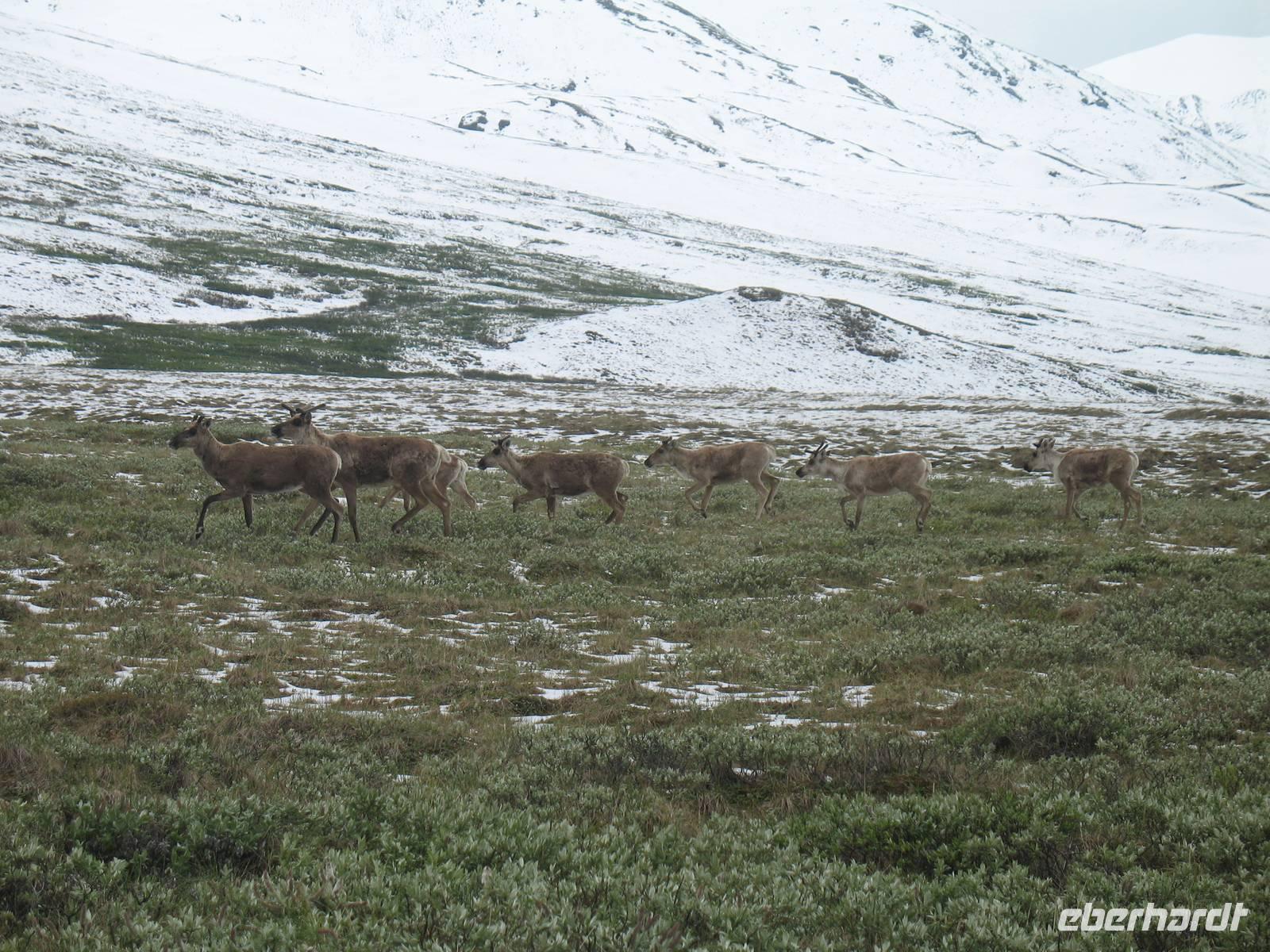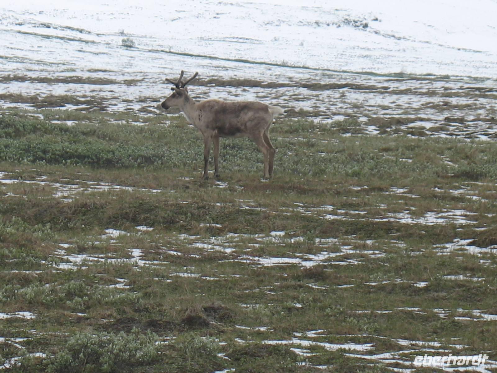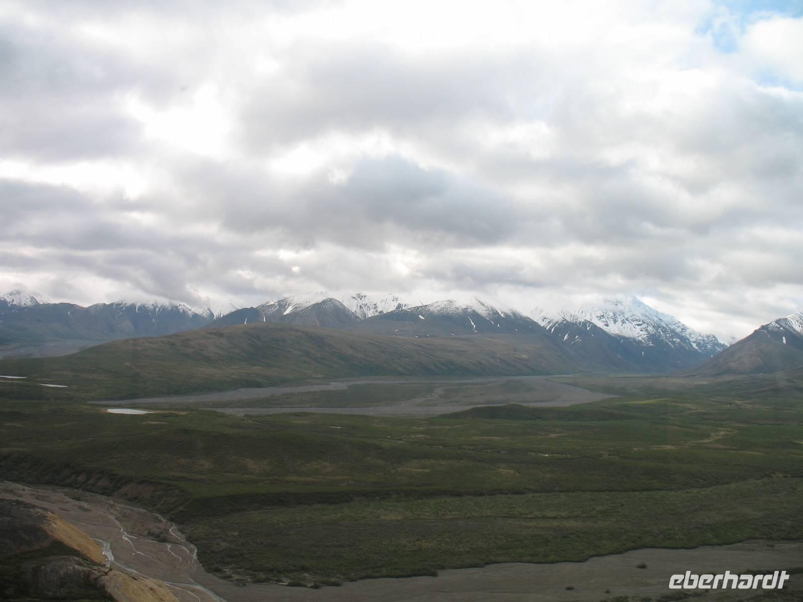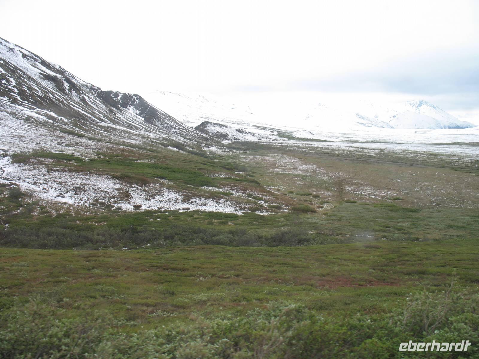 Heute startet unser Abenteuer "Kantishna Wilderness Trails Tour" im Denali Nationalpark wieder sehr früh am Morgen. Bereits um 05.00 Uhr gibt es ein dennoch ausgiebiges Frühstück, eine Stunde später werden wir bereits mit dem Busshuttle vom Hotel "Grande Denali Lodge" zum "Denali Bluffs Hotel" fahren. Um 06.30 Uhr beginnt dann die Tagestour im Denali Nationalpark, welcher zuerst unter dem Namen Mt. McKinley National Park 1917 eröffnet wurden ist. Erst im Jahr 1980 hat der Park seinen heutigen Namen erhalten, zudem wurde der Park von 800.000 Hektar auf 2,2 Millionen Hektar erweitert. Denali stammt aus dem Athabaskanischen und ist mit "der Hohe" zu übersetzen. Die meist gesehenen Tierarten sind Karibu, Dallschafe, Elche, Wölfe und mit sehr viel Glück auch die erhofften Bären. Jeder Bus im Nationalpark hat einen Namen. Unser Busfahrer heißt Clifford und unser Bus Moe. Der fast sechsstündige erste Teil der Tagestour bis nach Kantishna, wo wir unsere Mittagspause verbringen werden, beinhaltet mehrere kleine Pausen und auch viele Fotostopps, je nachdem, ob Tiere zu sehen sind oder nicht. Zuerst legen wir eine kurze Bio-Pause ein, anderthalb Stunden später einen Stopp beim National Park Service, hier gibt es auch einen leckeren Schoko-Keks für jeden :-) Während der Fahrt sehen wir viele verschiedene Pflanzen und Bäume. Zum Beispiel zeigen sich immergrüne Bäume gemischt mit Balsampappeln, Espen und Papierbirken in der Taiga. Der aus dem Russisch stammende Name dieser Landschaft kann zum Beispiel mit Waldland übersetzt werden. Dagegen sind in der feuchten oder auch trocknen Tundra Büsche, Riedgräser, Kräuter, Moosarten, Flechten oder besonders in der feuchten Tundra auch Zwergbirken und Weiden zu finden. In Denali wechselt die Tundra bei etwa 800 Metern, also über der Baumgrenze, die Taiga ab. Über 1.020 Meter hoch zeigt sich die trockene oder alpine Tundra überwiegend mit 7 bis 10 Zentimeter hohen Pflanzen. Dabei befindet sich die Obergrenze der Pflanzenwelt bei circa 2.200 Metern. Insgesamt gibt es 450 verschiedene Baum-, Busch- und Kräuterarten in Denali zu entdecken. Aber kommen wir nun zur atemberaubenden Wildnis :-) Unterwegs sehen wir mehrere Karibus (englisch: Caribou) und Dallschafe (englisch: Dall Sheep). Bei einem weiteren Stopp am Eielson Visitor Center können wir leider den höchsten Berg Nordamerikas, den Mount McKinley, mit eine Höhe von 6.195 Metern noch nicht sehen, aber ein Blick auf ihn soll uns an diesem Tag nicht verwehrt bleiben :-) Während unserer Fahrt erzählt uns unserer Busfahrer Clifford auch von der wahren Geschichte eines jungen Mannes aus wohlhabender Familie der Ostküste Amerikas namens Christopher Johnson McCandless, welcher 1992 durch Alaska trampte auf der Suche nach sich selbst und wohl auch der Sehnsucht nach Abenteuer und der unendlichen Wildnis. Sein Schicksal wurde im Januar 1993 in einem fünfseitigem Artikel zum ersten Mal in der Zeitschrift "Outside" veröffentlicht. Doch das Schicksal von Christopher McCandless faszinierte den Autor John Krakauer so sehr, dass er dessen Hintergründe und auch seine Wanderschaft durch Alaska näher recherchierte und sein Buch "In die Wildniss - Allein durch Alaska" die Zusammenfassung seiner Recherche beinhaltet. Wer sich dafür interessiert, dieses Buch zeigt die wahre Begebenheit des jungen Mannes sowie spannende Details und Informationen zum Leben und zur Wildnis in Alaska, wirklich empfehlenswert zu Lesen ;-) Gegen 12.30 Uhr erreichen wir dann Kantishna. Zuerst werden wir mit einem Mittagssnack, bestehend aus Suppe und Wrap mit Eistee oder Wasser, versorgt. Um 14.00 Uhr können die Gäste sich entweder einen interessanten Vortrag zum Husky und den Hundeschlitten anhören oder "nach Gold suchen" ;-) Gegen 15.00 Uhr fahren wir wieder zum Hotel zurück. Unterwegs legen wir noch einen Fotostopp ein, von wo aus wir den Mount McKinley viel besser betrachten können. Das Wetter hat sich nämlich ebenfalls verbessert. Auf unserer Rückfahrt zum "Denali Bluffs Hotel" erfährt unser Busfahrer, dass Bären gesichtet wurden. Leider haben wir dieses Mal kein Glück, bei uns sind die Bären wahrscheinlich schon weiter gezogen. Aber dafür hat sich noch ein riesiger Elch (englisch: Moose) direkt am Ausgang des Nationalparks in Position für ein schönes Fotomotiv gestellt, natürlich extra für unsere Reisegruppe :-) Am "Denali Bluffs Hotel" angekommen, fährt ein Teil der Gruppe mit Hannelore und dem Busshuttle zum Hotel, die anderen Gäste spazieren zur "Grande Denali Lodge". Es sind wirklich nur rund 15 Gehminuten und schon sind wir da, fast zeitgleich ist auch der Busshuttle am Hotel. Dann haben die Gäste freie Zeit bis zum Abendessen um 20.30 Uhr, welche einige zum Entspannen oder für einen weiteren Spaziergang nutzen. Das Abendessen im Hotel-Restaurant ist wirklich vorzüglich und absolut weiterzuempfehlen. Bereits gegen 22.00 Uhr zeigen sich die ersten Anzeichen der Müdigkeit, so dass wir uns alle eine gute Nacht wünschen und bald schlafen gehen.