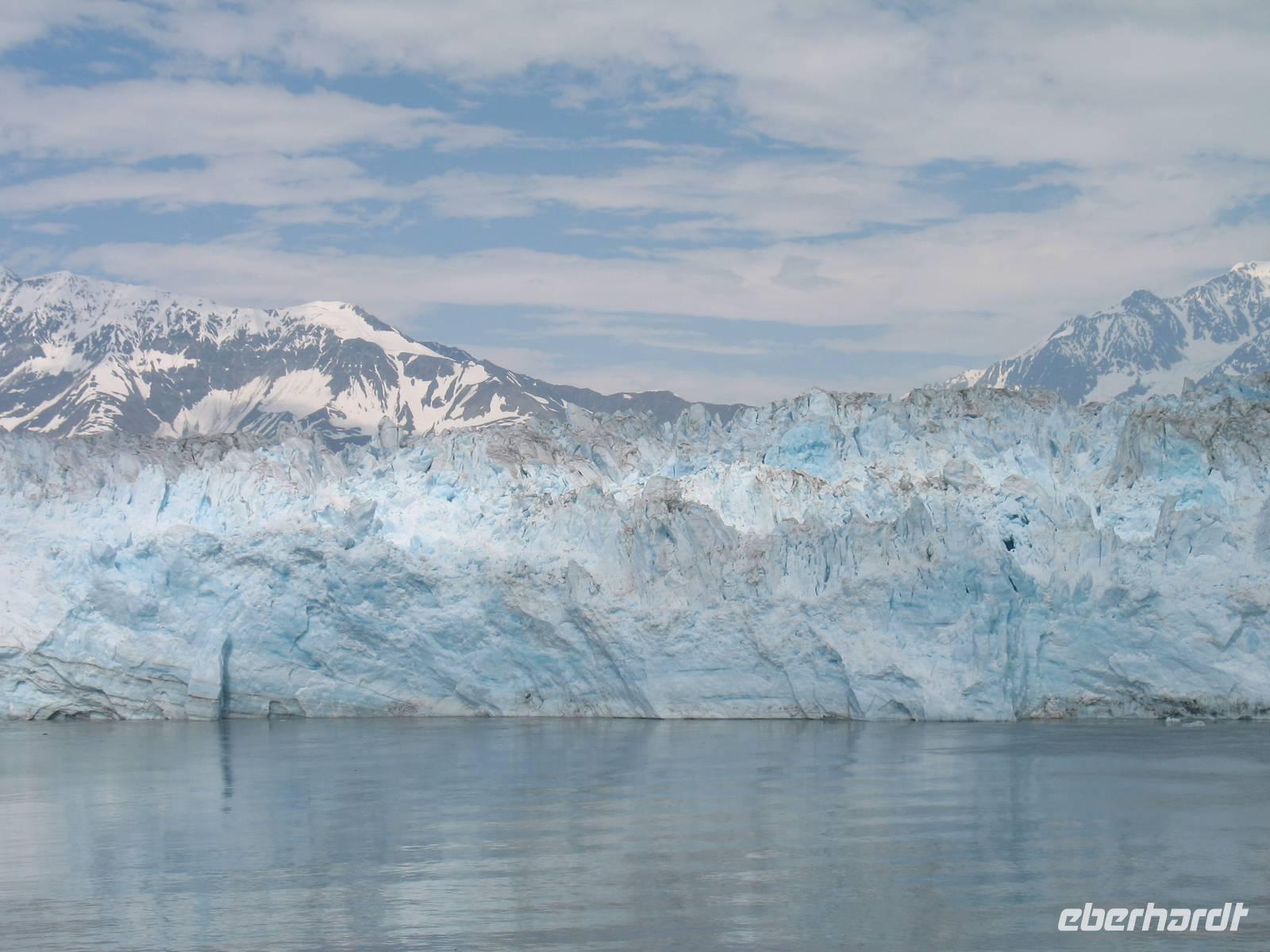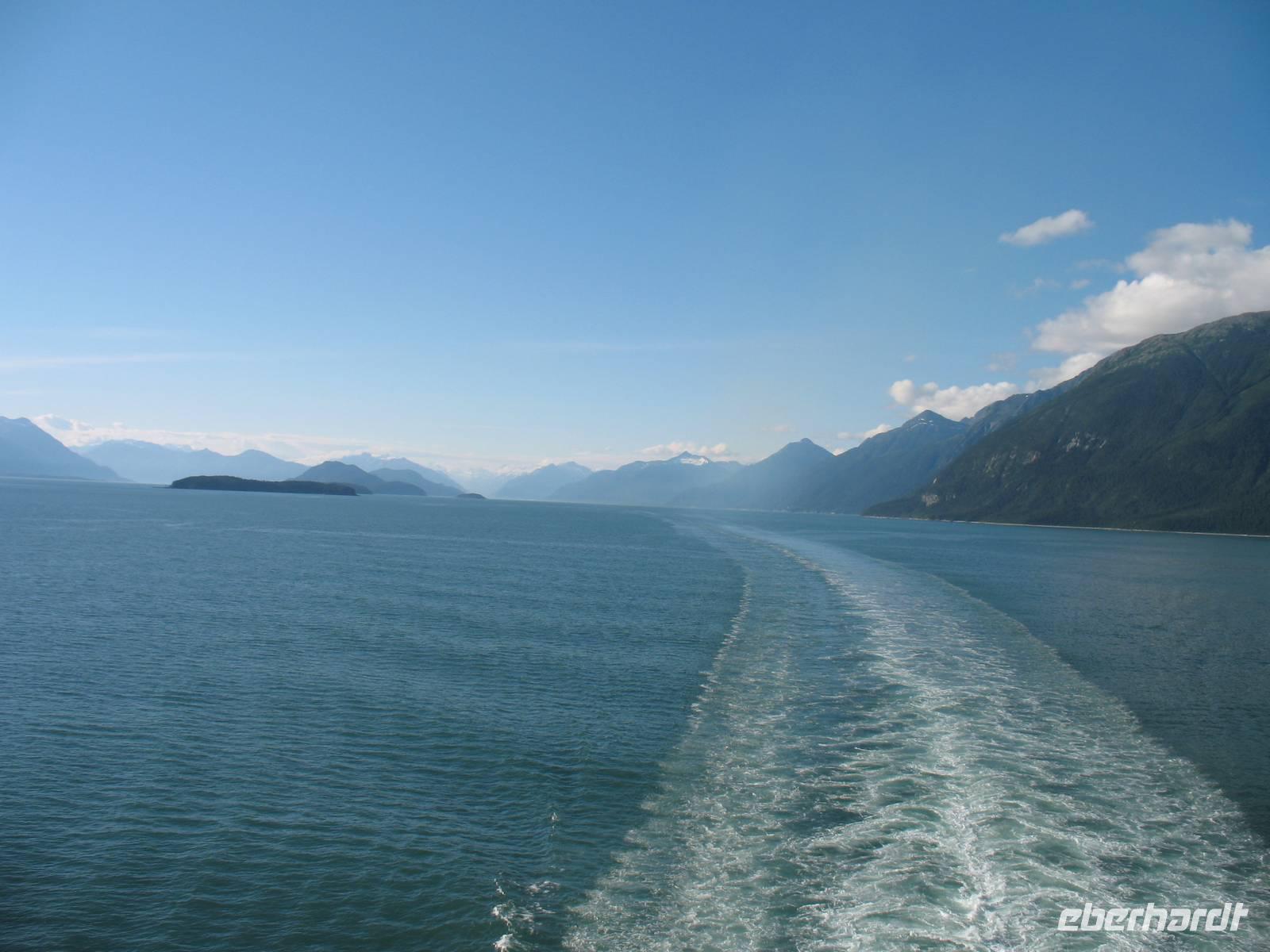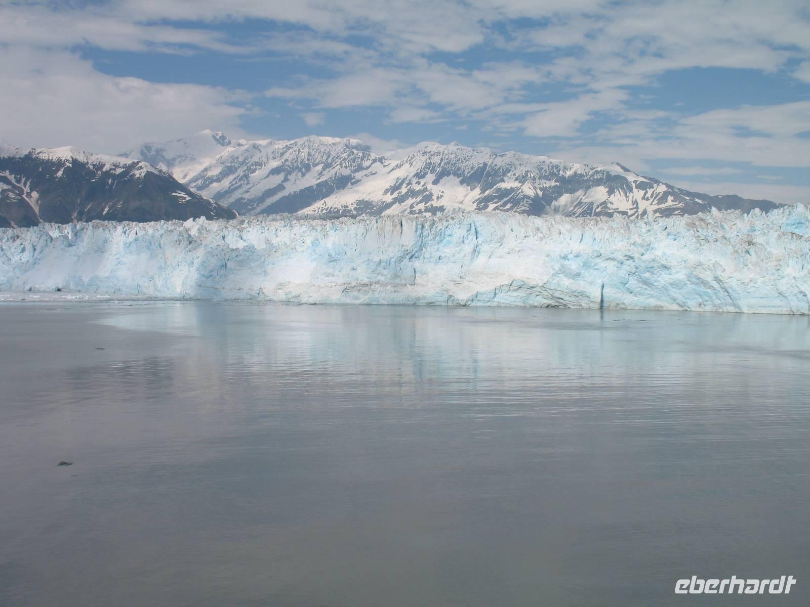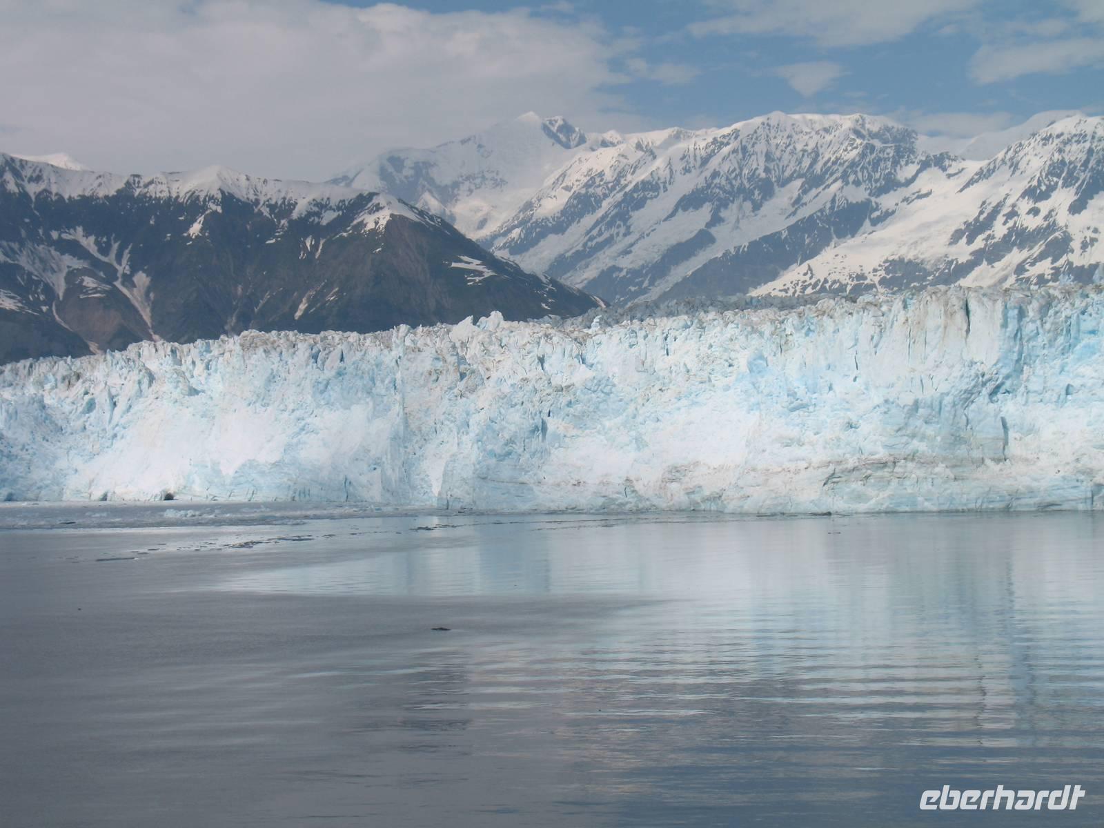 Unseren ersten Tag auf See verbringen wir ganz entspannt auf dem Schiff. Wir genießen ein leckeres Frühstück mit Blick auf das Meer entlang der Inside Passage. Gegen 13.00 Uhr sollen wir am bekannten Hubbard-Gletscher vorbeikommen, welcher sich in der Elias-Kette und der Grenzlinie Alaska/Yukon-Territorium befindet. Der Gletscher wurde bereits 1130 durch Übermittlungen der Yakutat-Indianer erstmals erwähnt. Die Quelle des Hubbard-Gletschers liegt im Yukon-Territorium, von hier ist der Gletscher 122 Kilometer lang, dabei endet er im Disenchantment Bay und Yakutat Bay. Die Stirnseite ist mit über zehn Kilometern am breitesten. Um eine gute Sicht auf den Gletscher zu haben, nehmen wir uns eine Liege oder gehen rechtzeitig auf das Aussichtsdeck. Aber wie es immer so ist mit der Natur und dem Fahrtverlauf, die Ankunft am Hubbard-Gletscher verzögert sich. Folglich gehen einige Reisegäste um 14.00 Uhr zum Mittagessen oder entspannen beim Lesen eines tollen Buches. Um 15.00 Uhr ist es dann endlich soweit, wir erblicken den Hubbard-Gletscher. Als besonderes Highlight sehen wir zudem wie der Gletscher kalbt, riesige Eisbrocken stürzen in das Yakutat- Bay ab, wahrlich ein einzigartiges Naturschauspiel :-) Dieser Teil des Gletschers, welcher mehr als 100 Meter über den Meeresspiegel liegt, kalbt regelmäßig in bestimmten Zeitabständen. Nach der ganzen Aufregung lohnt es sich, das riesige Kreuzfahrtschiff mit seinen vielen Attraktionen weiter zu erkunden, dafür eignet sich dieser Tag auf See perfekt. Um 17.30 Uhr treffen wir uns im Raum Borneo/Malaysia bei der Schiffsbibliothek, um kurz das gemeinsame Ausflugsprogramm am nächsten Tag zu besprechen. Danach genehmigen wir uns ein leckeres Abendessen entweder im Buffet- oder im Menü-Restaurant mit deutscher Speiskarte! Anschließend schauen sich die Gäste unter anderem die tolle Show im Theater an oder gönnen sich einen Drink in der Bar "Windjammer". Morgen werden wir dann Icy Strait Point besichtigen, wir freuen uns schon ;-)