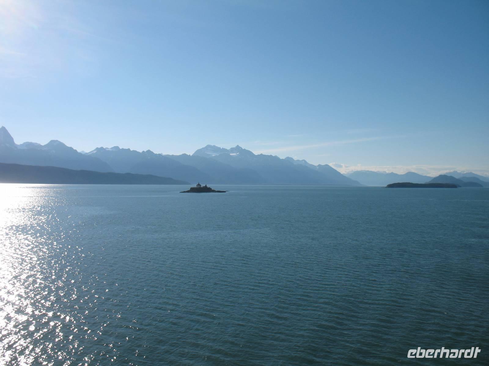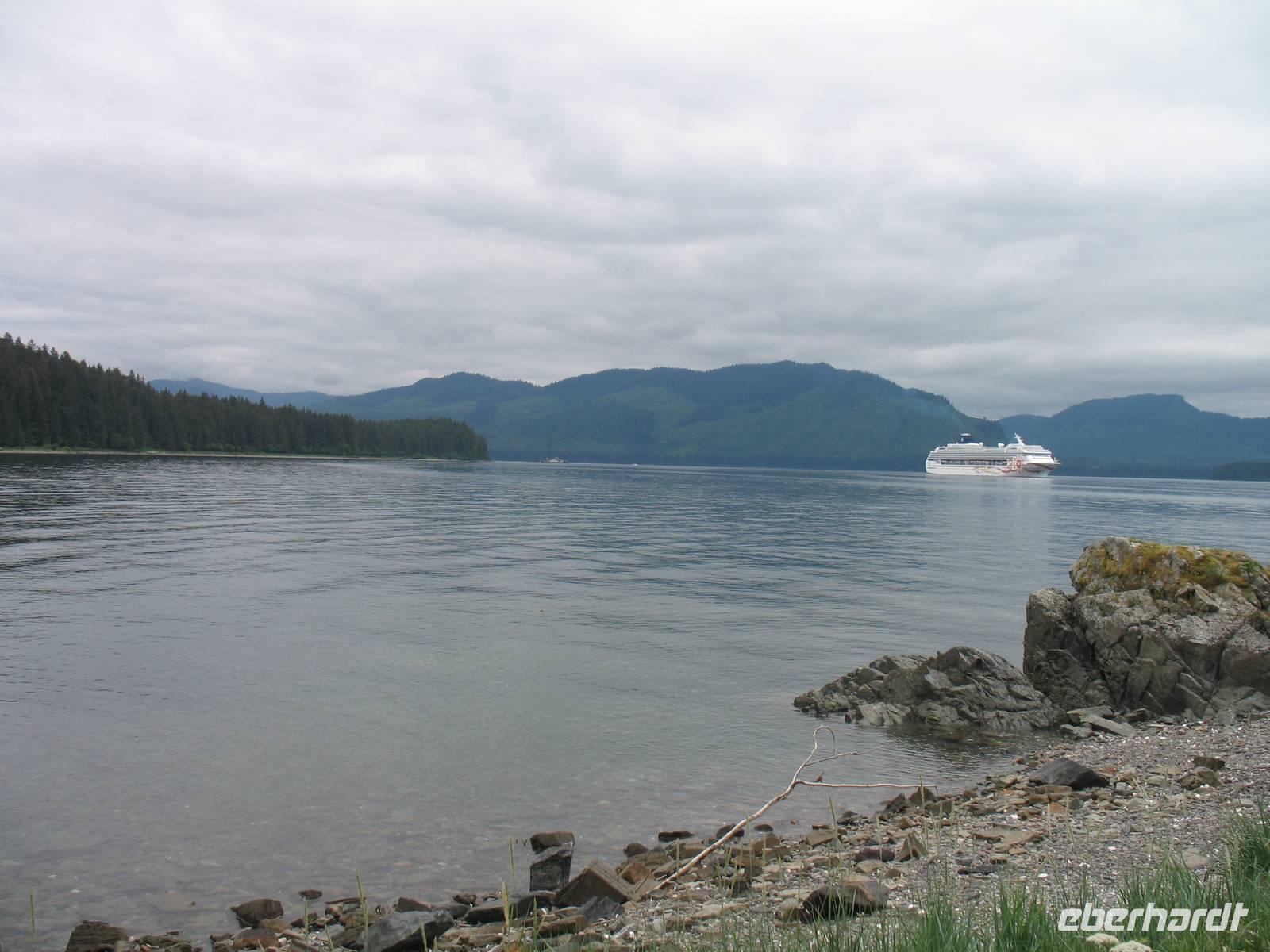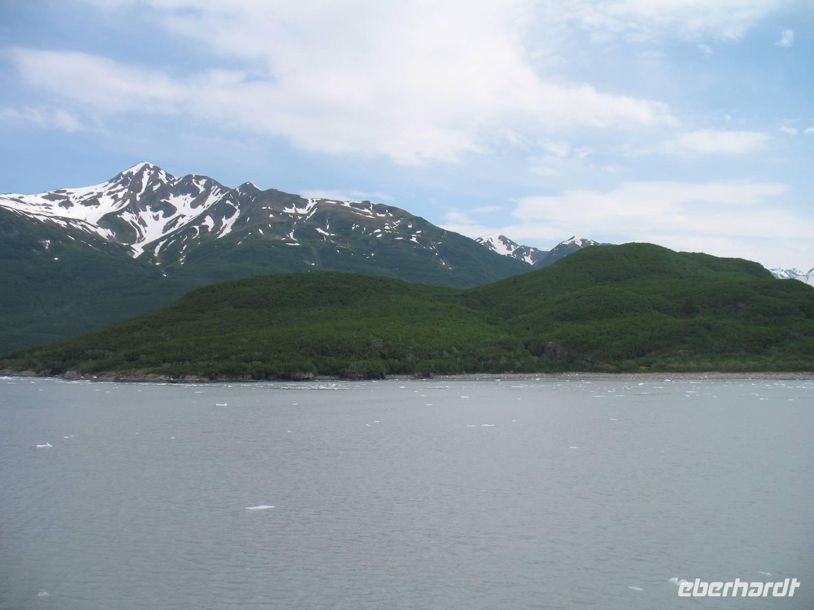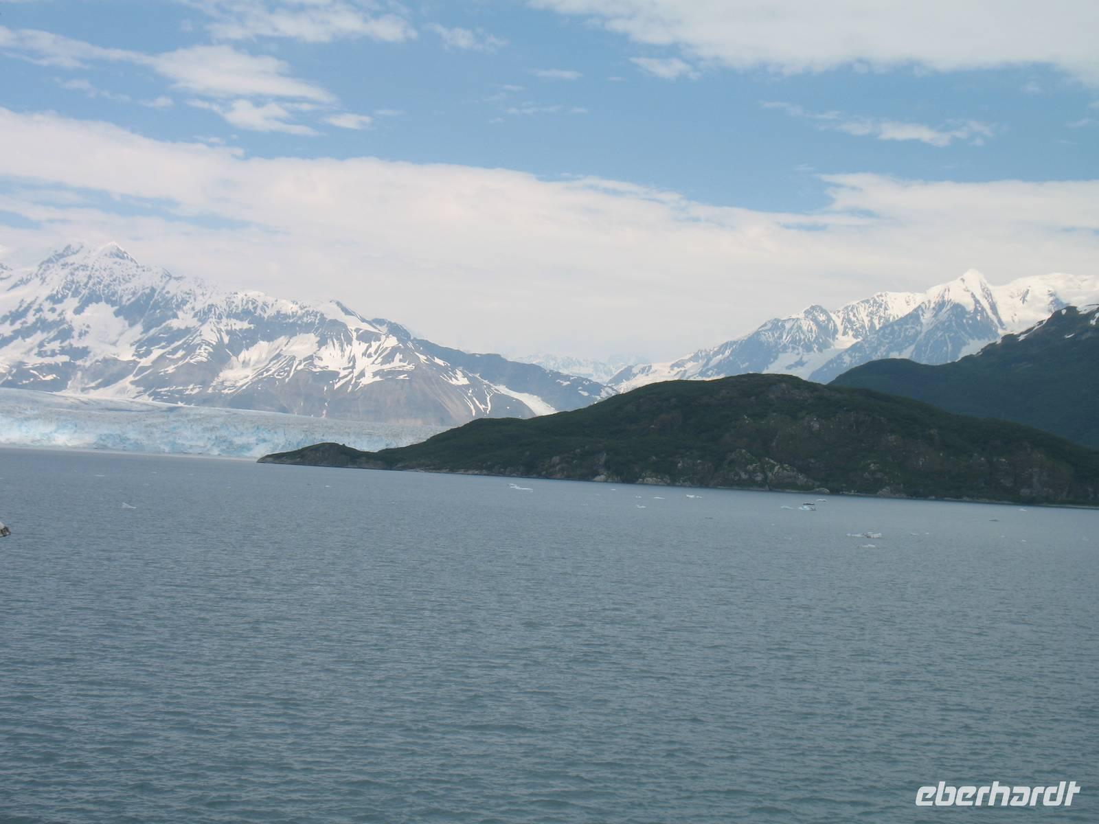 Unseren ersten Tag auf See verbringen wir ganz entspannt auf dem Schiff. Wir genießen ein leckeres Frühstück mit Blick auf das Meer entlang der Inside Passage. Gegen 13.00 Uhr sollen wir am bekannten Hubbard-Gletscher vorbeikommen, welcher sich in der Elias-Kette und der Grenzlinie Alaska/Yukon-Territorium befindet. Der Gletscher wurde bereits 1130 durch Übermittlungen der Yakutat-Indianer erstmals erwähnt. Die Quelle des Hubbard-Gletschers liegt im Yukon-Territorium, von hier ist der Gletscher 122 Kilometer lang, dabei endet er im Disenchantment Bay und Yakutat Bay. Die Stirnseite ist mit über zehn Kilometern am breitesten. Um eine gute Sicht auf den Gletscher zu haben, nehmen wir uns eine Liege oder gehen rechtzeitig auf das Aussichtsdeck. Aber wie es immer so ist mit der Natur und dem Fahrtverlauf, die Ankunft am Hubbard-Gletscher verzögert sich. Folglich gehen einige Reisegäste um 14.00 Uhr zum Mittagessen oder entspannen beim Lesen eines tollen Buches. Um 15.00 Uhr ist es dann endlich soweit, wir erblicken den Hubbard-Gletscher. Als besonderes Highlight sehen wir zudem wie der Gletscher kalbt, riesige Eisbrocken stürzen in das Yakutat- Bay ab, wahrlich ein einzigartiges Naturschauspiel :-) Dieser Teil des Gletschers, welcher mehr als 100 Meter über den Meeresspiegel liegt, kalbt regelmäßig in bestimmten Zeitabständen. Nach der ganzen Aufregung lohnt es sich, das riesige Kreuzfahrtschiff mit seinen vielen Attraktionen weiter zu erkunden, dafür eignet sich dieser Tag auf See perfekt. Um 17.30 Uhr treffen wir uns im Raum Borneo/Malaysia bei der Schiffsbibliothek, um kurz das gemeinsame Ausflugsprogramm am nächsten Tag zu besprechen. Danach genehmigen wir uns ein leckeres Abendessen entweder im Buffet- oder im Menü-Restaurant mit deutscher Speiskarte! Anschließend schauen sich die Gäste unter anderem die tolle Show im Theater an oder gönnen sich einen Drink in der Bar "Windjammer". Morgen werden wir dann Icy Strait Point besichtigen, wir freuen uns schon ;-)