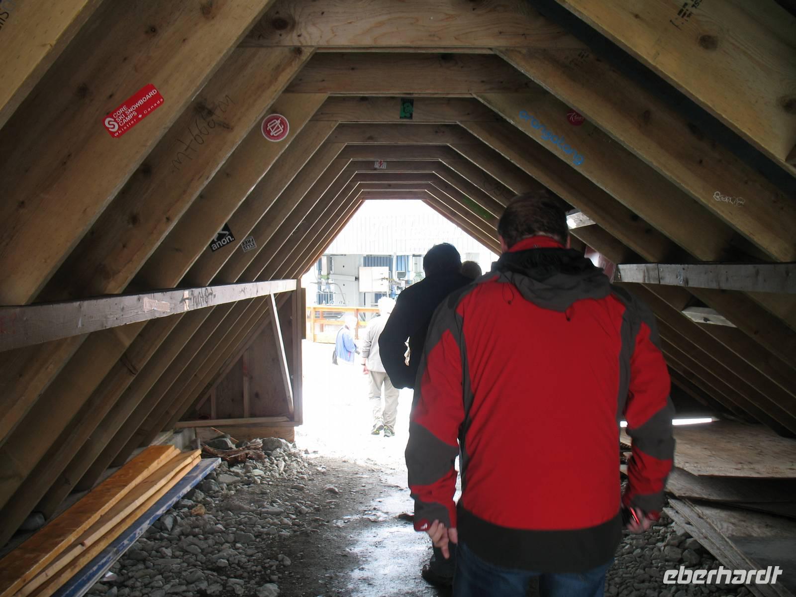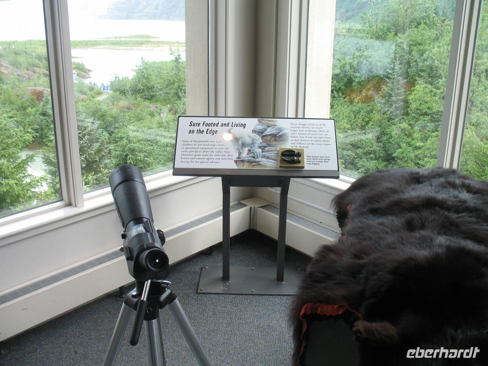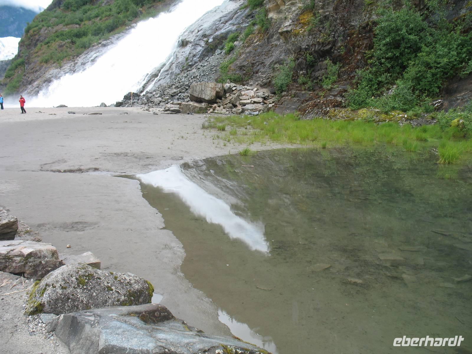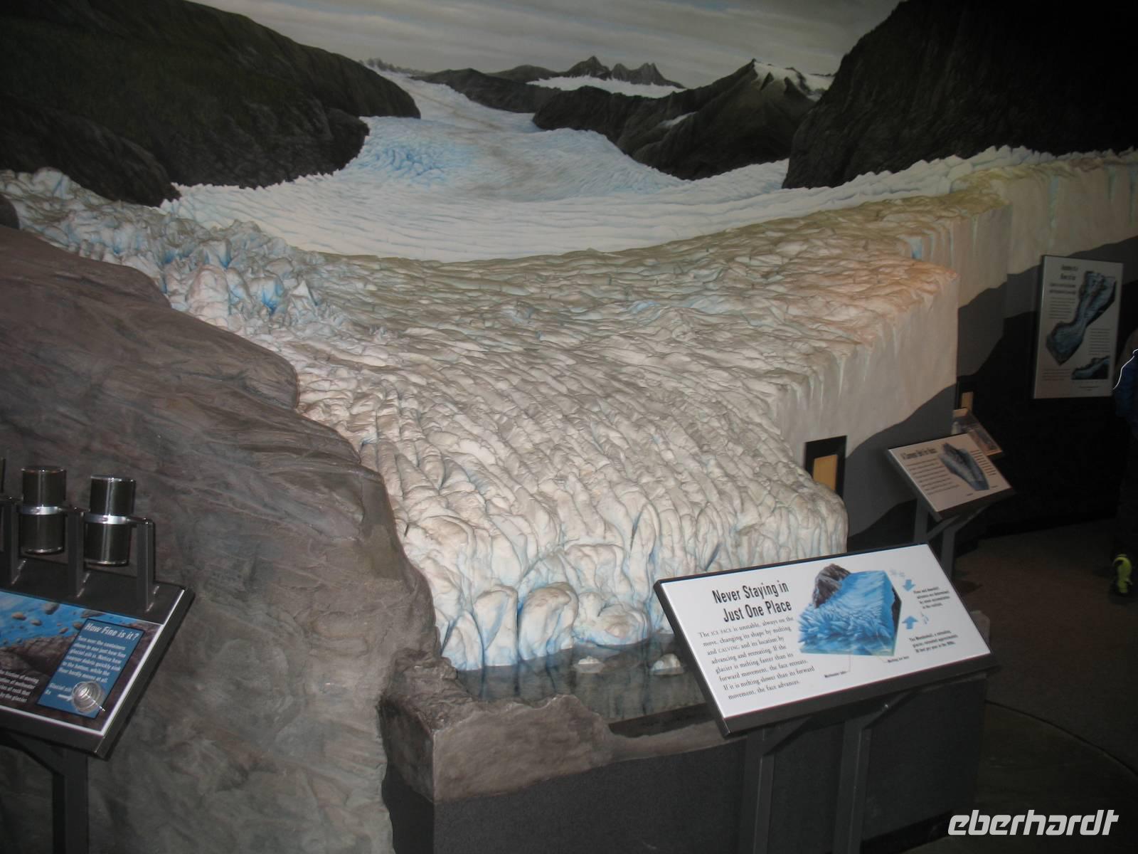 Heute haben wir wieder ein sehr frühes Frühstück, da wir Juneau bereits um 07.00 Uhr erreichen. Die Reisegruppe trifft sich um 07.15 Uhr bei der Rezeption, um gemeinsam an Land zu gehen und beim Alaskan Juneau Dock (AJ Dock) auf unseren Transfer zum Mendenhall-Gletscher und zur Lachsaufzuchtstation zu warten. Um 07.45 Uhr beginnt unser Ausflug auch schon. Auf der Fahrt zeigt uns unsere Busfahrerin Peggy wichtige Sehenswürdigkeiten wie das Alaska State Museum, den Red Dog Saloon, das Regierungsgebäude, das Governor's House, das Alaska State Capitol oder auch die Pendelbahn Mount Roberts Tramway in Juneau. Die zwei Waggons dieser Pendelbahn, einer mit Raben-Motiv, der andere natürlich mit Adler-Motiv, bewegen sich parallel im Jig-back auf einem Schmalspur-Kabel von zwei Zoll mit einer Tragkraft von mehr als 300 Tonnen. Geografisch gesehen, liegt Juneau zwischen Mount Juneau und dem Kanal Gastineau im Alexanderarchipel und sie wurde 1959 zur Hauptstadt Alaskas ernannt. Berühmheit und auch ihren Namen erlangte die Stadt durch den ersten Goldfund von Joe Juneau und Richard Harris 1880 aufgrund eines Hinweises des Indianer-Häuplings Kowee vom Auk Tlingit-Stamm. Es enstand die erste moderne Siedlung, deren Namensgebung etwas verwirrend ist. Zuerst hat sie den Namen Harrisburg erhalten, später wurde sie aber unbenannt in Juneau, obwohl Kowee ihr eigentlicher Name war zu Ehren des Indianer-Häuplings aufgrund dessen Hilfe bei der Goldsuche. Verwirrent? Vielleicht ein wenig ;-) Damals hatte es hier die größten Goldminen der Welt gegeben, unter anderem zählten die Treadwell Mine, die Greens Creek Mine und die AJ Mine dazu. Zum Beispiel wurde früher in der AJ Mine Gold bis zu 3,5 Millionen Unzen (1 Unze= 20 bis 30 US-Dollar oder rund 28 Gramm Gold) gefördert. Rund 45 Minuten später erreichen wir auch schon den Mendenhall-Gletscher. Nur als Randnotiz: Das Glacier Bay befindet sich ungefähr 80 Kilometer Richtung Westen entfernt. Wir werden eineinhalb Stunden später wieder am Eingang abgeholt. Der frühere Name dieses 21 Kilometer vom Stadtzentrum Juneau entfernten Gletschers war Auke, nach einem Tlingit-Stamm benannt. Seinen jetzigen Namen hat er zu Ehren des amerikanischen Wissenschaftlers Thomas Corwin Mendenhall erhalten. Der Gletscher misst eine Höhe von rund 67 Metern und Breite von 2,4 Kilometern. Das Juneau Icefield ist circa 4.000 Quadratkilometer groß, der Mendenhall ist neben Taku, Eagle oder Herbert nur einer der 38 weiteren größeren und über 100 kleineren Ausläufern. Interessant ist auch, dass sich die Gletscher des Juneau Icefield nicht wie andere Gletscher weltweit in hohem Maße zurückziehen, zum Beispiel beim Mendenhall sind es rund zehn bis fünfzehn Meter im Jahr. Über 19 Kilometer von seinem Urspungsort Juneau Icefield erstreckt sich der Mendenhall-Gletscher. Zuerst unternehmen wir einen gemeinsamen Spaziergang zum Wasserfall "Nugget Falls". Das Wetter schaut anfangs gar nicht gut aus und es hat ganz leicht geregnet. Aber nach wenigen Minuten ist es aufgeklart. Angekommen bei den Wasserfällen haben wir ein tolles Fotomotiv auf Gletscher und Wasserfall zusammen. Wirklich ein wunderschöner Anblick :-) Danach besuchen wir noch das Mendenhall-Gletscher Visitor Center mit Ausstellungsstücken, einem interessanten Film über diesen Gletscher, einem Observatorium mit Teleskopen und einer Aussichtsplattform. Gegen 10.00 Uhr fahren wir auch schon weiter zur Lachsaufzuchtstation "Macaulay Salmon Hatchery". Es gibt fünf verschiedene Arten des Pazifischen Lachses: Ketalachs "Chum", Rotlachs "Sockeye", Königslachs "King", Silberlachs "Silver" und Buckellachs "Pink". Deren unterschiedlichen Größen sind mit Hilfe unserer fünf Finger festzuhalten, zum Beispiel entspricht der "King Salmon" dem Mittelfinger, da er der größte und bedeutendste Lachs ist. Die Lachsaufzuchtstation gehört zur Organisation "Douglas Island Pink & Chum", kurz DIPAC, mit vier in Betrieb stehenden Lachszuchten rund um Juneau. Die Wichtigkeit dieser Zuchtstationen besteht darin, dafür zu sorgen, dass aufgrund der größeren Auslassung an Lachsen ins Meer allgemein die Grundgesamtheit der Lachse in Alaska steigt. Eine Mitarbeiterin der Station zeigt und erläutert uns die wichtigsten Etappen der Lachsaufzuchtstation. Die jungen Lachse werden bereits mit nur ein paar Zentimetern Länge ins Meer ausgelassen. Die Auslassung von bis zu 130 Millionen Lachsen jährlich wird auch als "Ocean Ranching" bezeichnet. Zur Fortpflanzung kehren die erwachsenen Lachse nach ein bis zu vier Jahren im Pazifischen Ozean an ihre Geburtsstätte circa Anfang Juli zurück. Während 130 Millionen Lachse ausgelassen werden, liegt die erwartete Quote der Rückkehrer aufgrund der anstrengenden, teilweise langen Reise ohne Nahrungsaufnahme und Gefahren wie Raubtieren bei ein bis zwei Millionen. Bei ihrer Rückankunft springen sie dann die Fischleiter aus mehreren aneinander gereihten Becken mit leichter Steigerung auf einer Länge von 150 Metern hinauf. Interessant ist allerdings, dass die jungen Lachse während ihrer "Prägungszeit" von vier bis sechs Wochen sich ihren Geburtsort so gut einprägen, dass sie ohne irgendwelche Hilfsmaßnahmen an diesen Ort als erwachsene Lachse zurückkommen. Bei der Zucht werden dann die Eier der zurückkehrenden erwachsenen Lachse entnommen, künstlich befruchtet und in den Brutschrank gelegt. Zum Beispiel befinden sich auf 650 Tabletts rund 180.000 Eier. Aber warum gibt es diese Aufzuchtstationen? Die hohe Überlebenschance in den Brutkästen ist ein Grund dafür. Während im Zuchtbetrieb ein Chance von fast 95 Prozent besteht, überleben nur fünf bis zehn Prozent in freier Natur, da sie dort verschiedenen Gefahren ausgesetzt sind. Diese gemeinnützige Zuchtstation wird nicht staatlich finanziert, sondern sie leben einerseits vom Verkauf ihrer Produkte im eigenen Shop der "Macaulary Salmon Hatchery" und andererseits aus dem Verkauf der nach dem Laichen verendeten Lachse als Hundefutter