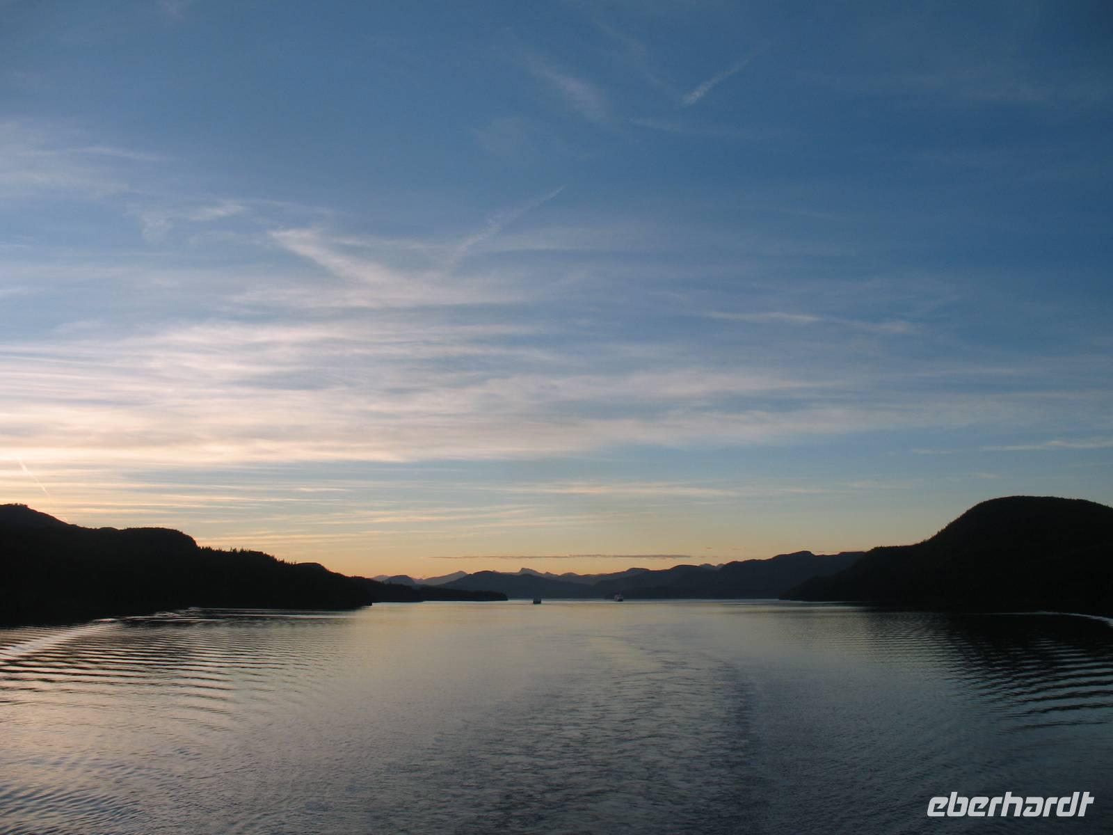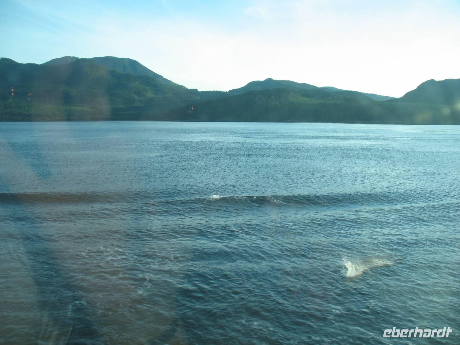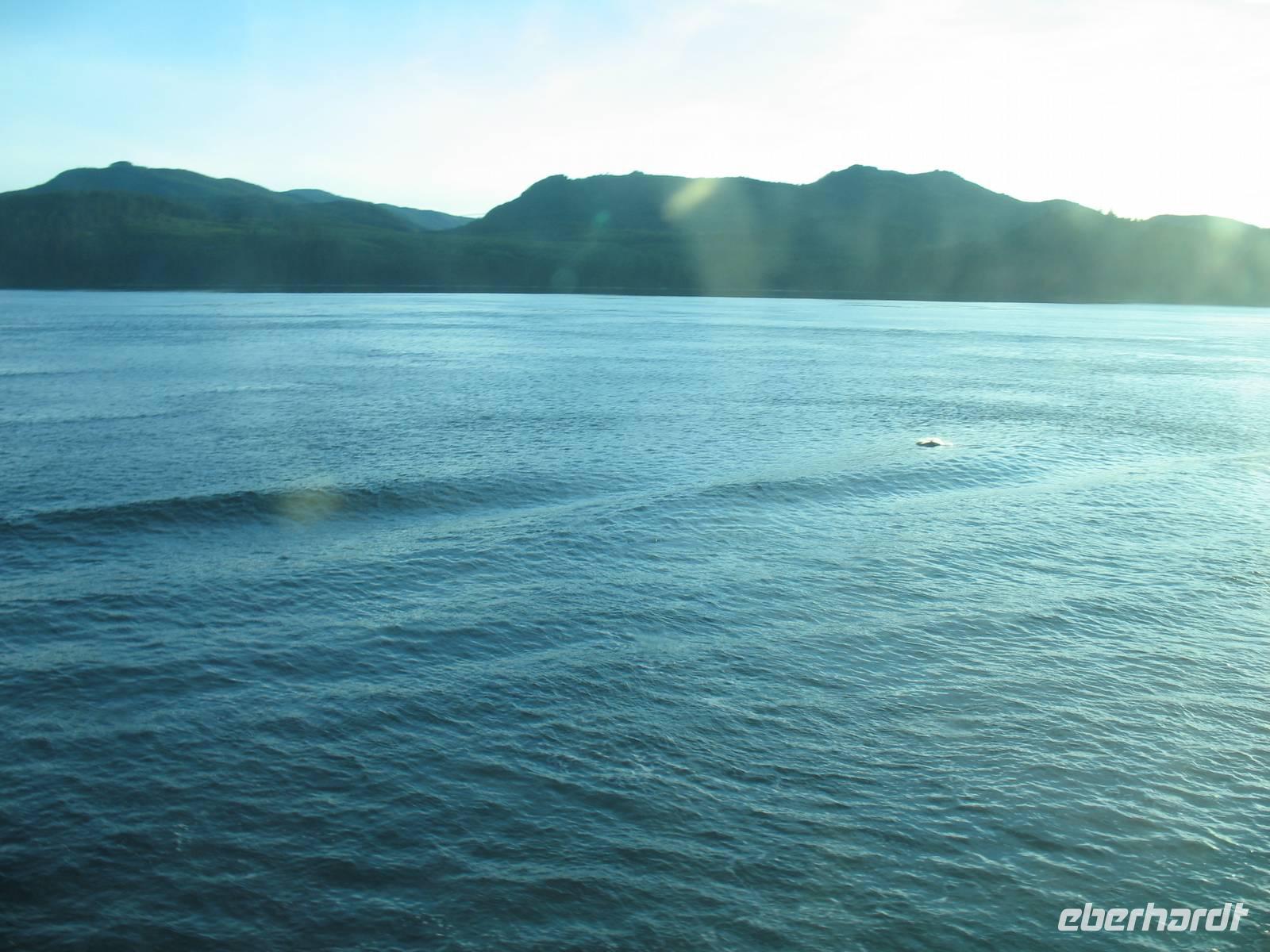 Unseren letzten Tag auf See verbringen wir genauso entspannt auf dem Schiff wie am ersten Tag, obwohl wir uns jetzt wahrscheinlich schon viel besser orientieren können :-) Während wir den Hubbard-Gletscher super schön betrachten konnten, versteckt sich der Saywer-Gletscher hinter einer dicken Nebelwand, welche erst später auflockert. Wir genießen den Tag mit Fahrt durch die atemberaubende Landschaft der Inside Passage. Bevor wir Alaska verlassen und uns die nächsten Tage das traumhafte West-Kanada anschauen, hier noch ein Fazit wissenswerter Daten: Das Motto in Alaska lautet "Norden der Zukunft", also "North to the Future", und die Hautpstadt ist Juneau. Gekauft wurde Alaska 1867 von Russland, am 3. Januar 1959 wurde es zum amerikansiche Bundesstaat erklärt und der Staat ist über 1.717.854 Quadratkilometer groß. Die Hauptwirtschaftszweige sind Öl, Tourismus und Fischfang. Nationalsport ist das Hundeschlittenrennen, Nationalvogel das Moorschneehuhn "Willow Ptarmigan", Nationalblume das Vergissmeinnicht "Forget-me-not", Nationaledelstein der Jade, Nationalfisch der Alaska Königslachs "Alaska King Salmon" und Nationalbaum die Fichte "Stika Spruce". Zum Abschluss also Wissenwertes zu Alaska kurz und kompakt zusammengefasst ;-) Gegen 17.30 Uhr treffen wir uns ein letztes Mal im Raum Borneo/Malaysia bei der Schiffsbibliothek, um kurz die Ausschiffung und das gemeinsame Programm des nächsten Tages zu besprechen. Danach genehmigen wir uns alle zusammen ein leckeres Abendessen im Menü-Restaurant "Seven Seas". Zuvor gibt es noch ein gemeinsames Gruppenfoto auf der Schiffstreppe, auch unsere deutschsprachige Ansprechpartnerin Anke von der Norwegian Sun ist dabei ;-) Das Essen im Menü-Restaurant ist abermals sehr lecker und wir werden sogar von ein paar Delfinen begleitet. Nach dem Abendessen schauen sich einige Gäste unter anderem die Abschlusshow im Theater an oder sie gönnen sich einen Abschiedsdrink in der Bar oder im Außenrestaurant. Wir freuen uns bereits auf Morgen, denn nicht nur Alaska wollen wir kennenlernen, auch den Westen Kanadas gibt es noch für uns zu entdecken :-)