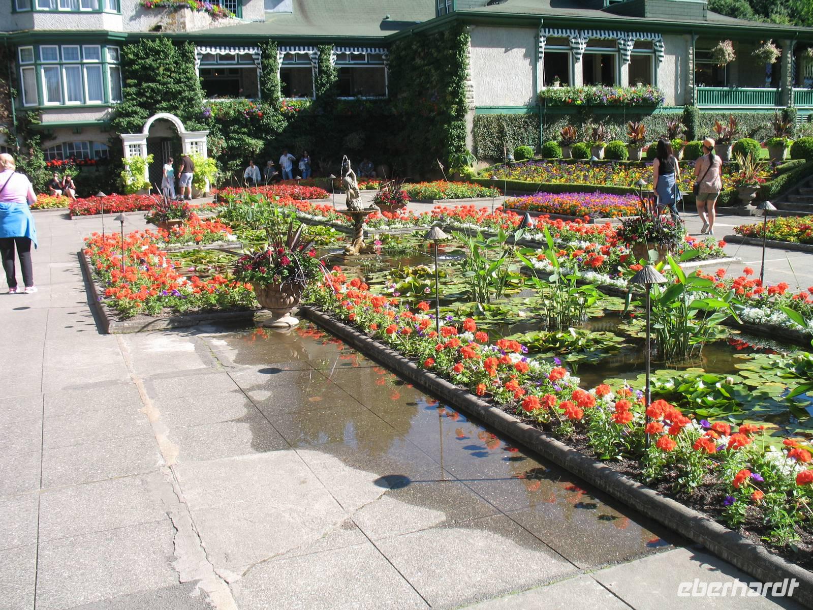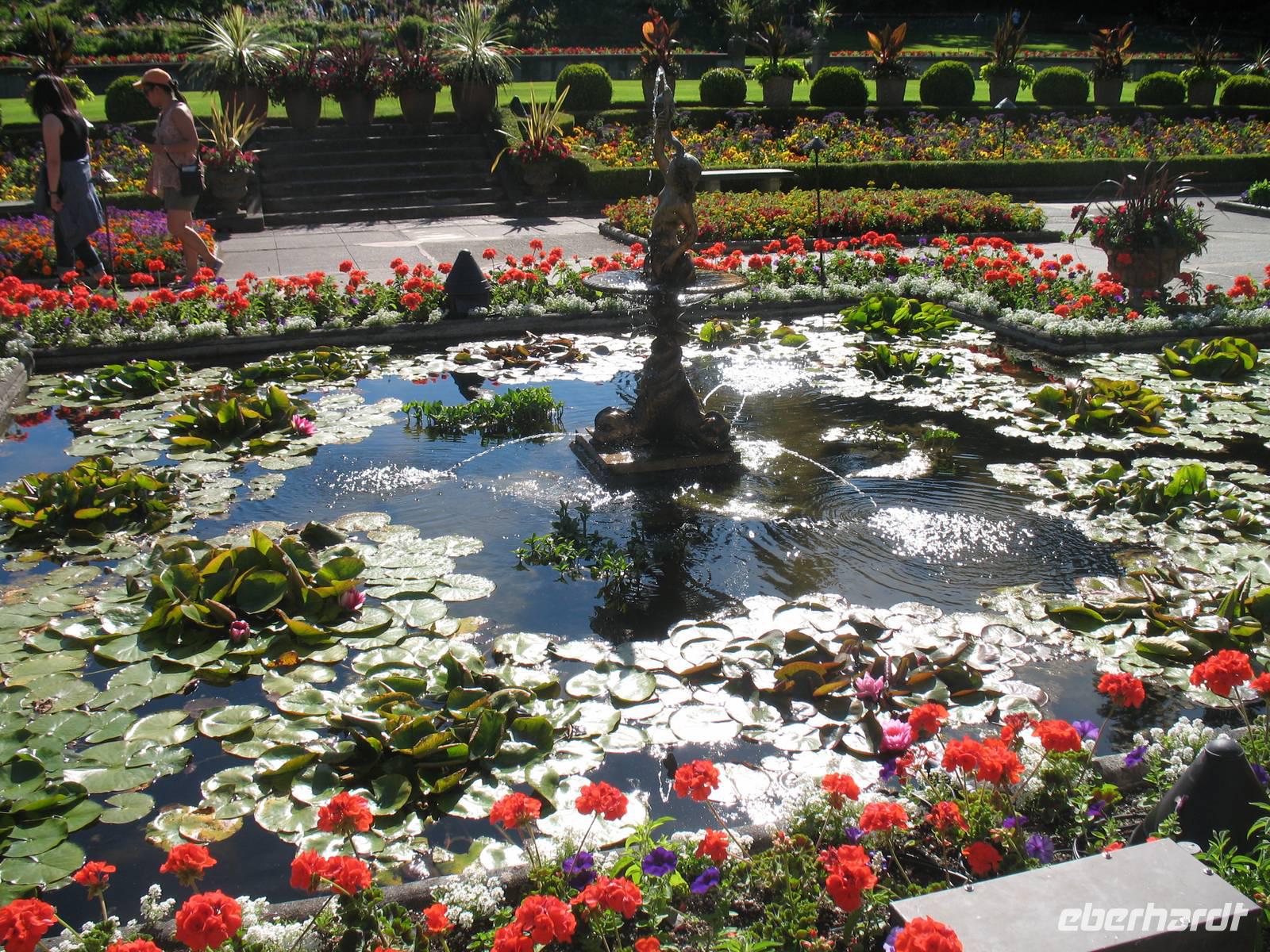 Heute werden wir wieder mit strahlendem Sonnenschein verwöhnt. Nach einem guten Frühstück treffen wir uns mit Anja vorm Hotel, um zur Fährstation zu fahren. Unser Busfahrer heißt Ron, den Namen können wir uns gleich merken, da wir Ron auch am nächsten Tag als Busfahrer haben werden und auch ein anderer Ron uns zum Flughafen fahren wird. Aber daran wollen wir heute noch gar nicht denken, sondern den Tag in vollen Zügen genießen. Wir fahren rund eine Stunde bis zur Fährstation und schon allein die Busfahrt ist interessant. Es gibt eine Spur auf dem Highway extra für Autos und Busse, welche aber nur benutzt werden darf, wenn mindestens zwei Personen im Fahrzeug anwesend sind. An diesem Tag ist es besonders hektisch und alle fahren wie sie wollen. Jedoch ist unser Ron ein sicherer Busfahrer, wir fühlen uns bei ihm gut aufgehoben :-) Um 10.15 Uhr checken wir pünktlich für unsere Fähre nach Vancouver Island ein. Wenn wir nicht alle um 10.30 Uhr im Bus sitzen und an Bord fahren, dann fährt die Fähre ohne uns ab. Selbstverständlich sind wir alle um diese Zeit im Bus ;-) Eine halbe Stunde später geht es auch schon los. Wir genießen die tolle Aussicht und die großartige Landschaft. Es empfiehlt sich, an Bord eine Kleinigkeit zu essen, um in Victoria ausreichend Zeit zu haben, die interessanten Sehenswürdigkeiten zu bestaunen. Wir erreichen um 12.35 Uhr Swartz Bay und schon beginnt unsere Stadtrundfahrt in Victoria, die älteste Stadt von British Columbia, welche als Pelzhandelsposten 1843 gebaut wurde. Zudem ist Victoria die britischste Stadt außerhalb Englands. Wir fahren zur berühmten "Mile 0" des Trans-Canada-Highway im Stadtpark Beacon Hill mit dem Denkmal von Therry Fox, natürlich wieder ein perfekter Fotostopp für ein Gruppenbild! Vancouver Island wurde nach Kapitän George Vancouver benannt, welcher als Erster diese Insel umsegelte. Danach geht es weiter ins Stadtzentrum. Hier sehen wir das beeindruckende vom Stadtarchitekten Francis M. Rattenbury 1897 erbaute Parlamentsgebäude und auch das bekannte von der Pacific Railway Company 1908 errichtete Empress Hotel. Anja führt uns heimlich durch dieses berühmte Hotel. Allein die Teestunde kann in diesem Hotel ein besonderes, aber auch recht teures Erlebnis sein. Danach haben wir freie Zeit, um die Stadt individuell zu besichtigen und den eigenen Interessen nachzugehen. Zum Beispiel kann das Museum besucht werden oder auch der Park mit den Totempfählen. Um 15.15 Uhr fahren wir weiter zu den wunderschönen Butchart Gardens, welche wir rund 45 Minuten später erreichen. Nach einer kurzen Erklärung durch Anja spazieren wir durch die verschiedenen Gärten, bestaunen den Versunkenen Garten, den Rosengarten und auch den Japanischen Garten bis hin zum Italienischen Garten. Jeder Garten ist einzigartig, auf seine Weise besonders und mit viel Liebe angelegt. Ein wirklich schönes Erlebnis, nicht nur für Gartenliebhaber ;-) Wer möchte, kann sich gern noch einen Kaffee gönnen oder auch ein Souvenir für die geliebten Daheimgebliebenen erwerben. Gegen 17.30 Uhr fahren wir wieder zurück nach Swartz Bay und checken pünktlich auf der Fähre ein. Sie startet um 18.45 Uhr und unser fakultatives Abendessen nehmen wir an Bord ein. Das Buffet ist wirklich sehr lecker und übertrifft teilweise auch die Erwartungen der Gäste. Die Auswahl ist groß und besonders die verschiedenen Dessert-Varianten lassen einem das Wasser im Mund zusammenlaufen. Wir genießen den Ausblick an Bord und schon 95 Minuten später sind wir wieder in Vancouver. Ron fährt uns zum Hotel zurück und wir freuen uns bereits auf den Skiort Whistler, welchen wir am nächsten Tag erleben werden :-)