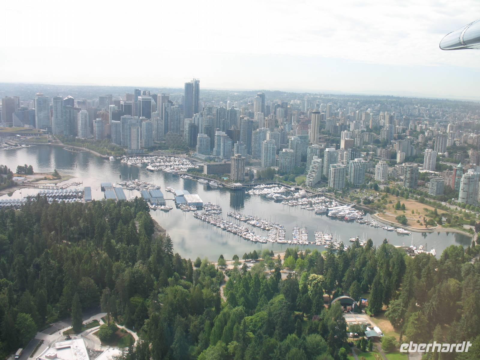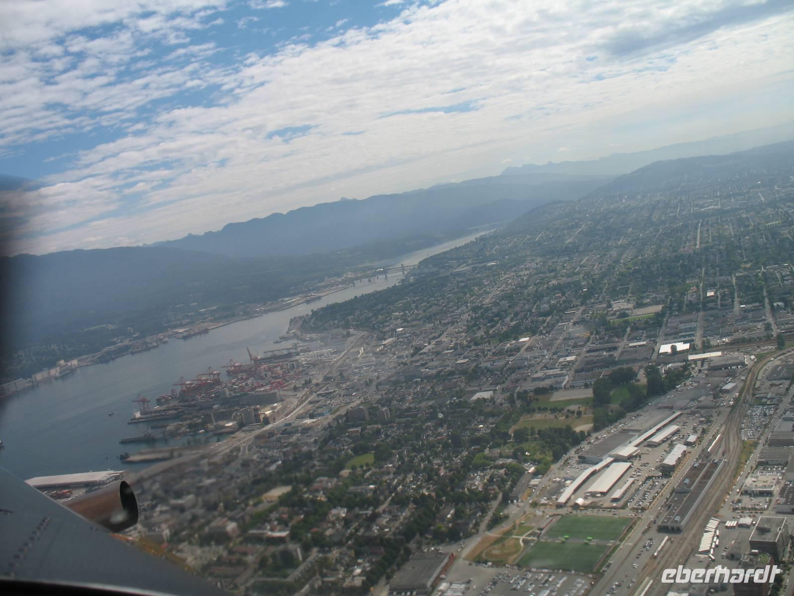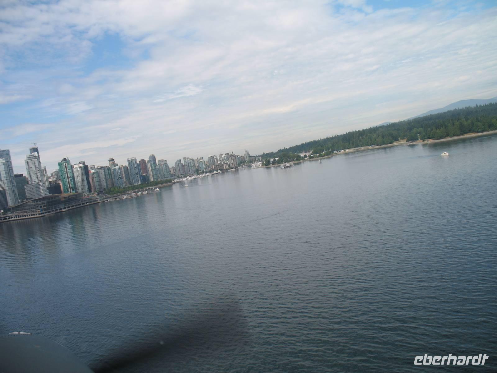 Unseren letzten Tag in Vancouver beginnen wir ausgiebig mit einem leckeren Frühstück bei strahlendem Sonnenschein. Einige Reisegäste möchten an ihrem letzten Tag in Kanada entspannen, in aller Ruhe ihre Sachen packen oder individuell noch unentdeckte Plätze besichtigen. Den anderen Gästen steht der Sinn nach Spannung und Abenteuer, daher laufen wir gegen 08.30 Uhr zum Coal Harbour, wo wir um 10.00 Uhr einen wunderschönen Flug mit dem Wasserflugzeug über Vancouver gebucht haben. Wir freuen uns riesig, besonders da das Wetter auch perfekt ist. Im Flugzeug erhalten wir alle einen Fensterplatz und unser Pilot Greg hat immerhin schon fünfzehn Jahre Flugerfahrung, so dass wir uns auch sicher fühlen können. Wir bestaunen die majestätischen Berge, die ausgedehnte Küste sowie die Schönheiten der Stadt und die umliegenden Parkanlagen auf unserem 35-Minütigen Flug. Ein wirklich wunderschönes Erlebnis zum Abschluss einer großartigen Reise :-) Gegen 11.00 Uhr sind wir wieder im Hotel zurück. Wir haben alle ein Zimmer mit Late-Check-Out bis 12.00 Uhr erhalten, so dass wir zu dieser Uhrzeit nach und nach in der Lobby mit unseren Koffern eintreffen. Wenige Minuten später werden wir auch schon von unserer lieben Anja und unserem neuen Busfahrer Ron abgeholt und zum internationalen Flughafen gefahren. Eine halbe Stunde später erreichen wir diesen bereits. Die Kofferabgabe verläuft ohne Schwierigkeiten. Unser Flug nach Deutschland hat leider eine Stunde Verspätung, wir brauchen also nicht hetzen und können ganz entspannt zur Sicherheitskontrolle laufen. Wir verabschieden uns herzlich von unserer örtlichen Reiseleiterin Anja und wünschen ihr und ihrer kleinen Familie alles Gute! Um 17.10 Uhr fliegen wir mit 55 Minuten Verspätung von Vancouver nach Frankfurt Am Main mit Lufthansa LH493. Nach einem leckeren Essen versuchen einige Gäste den Großteil unseres rund neunstündigen Fluges zu schlafen oder das Unterhaltungsprogramm an Bord zu genießen.