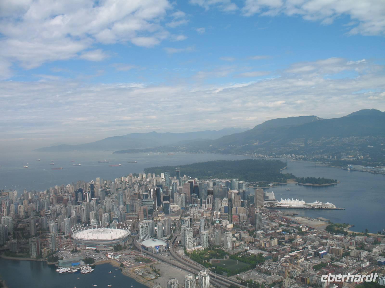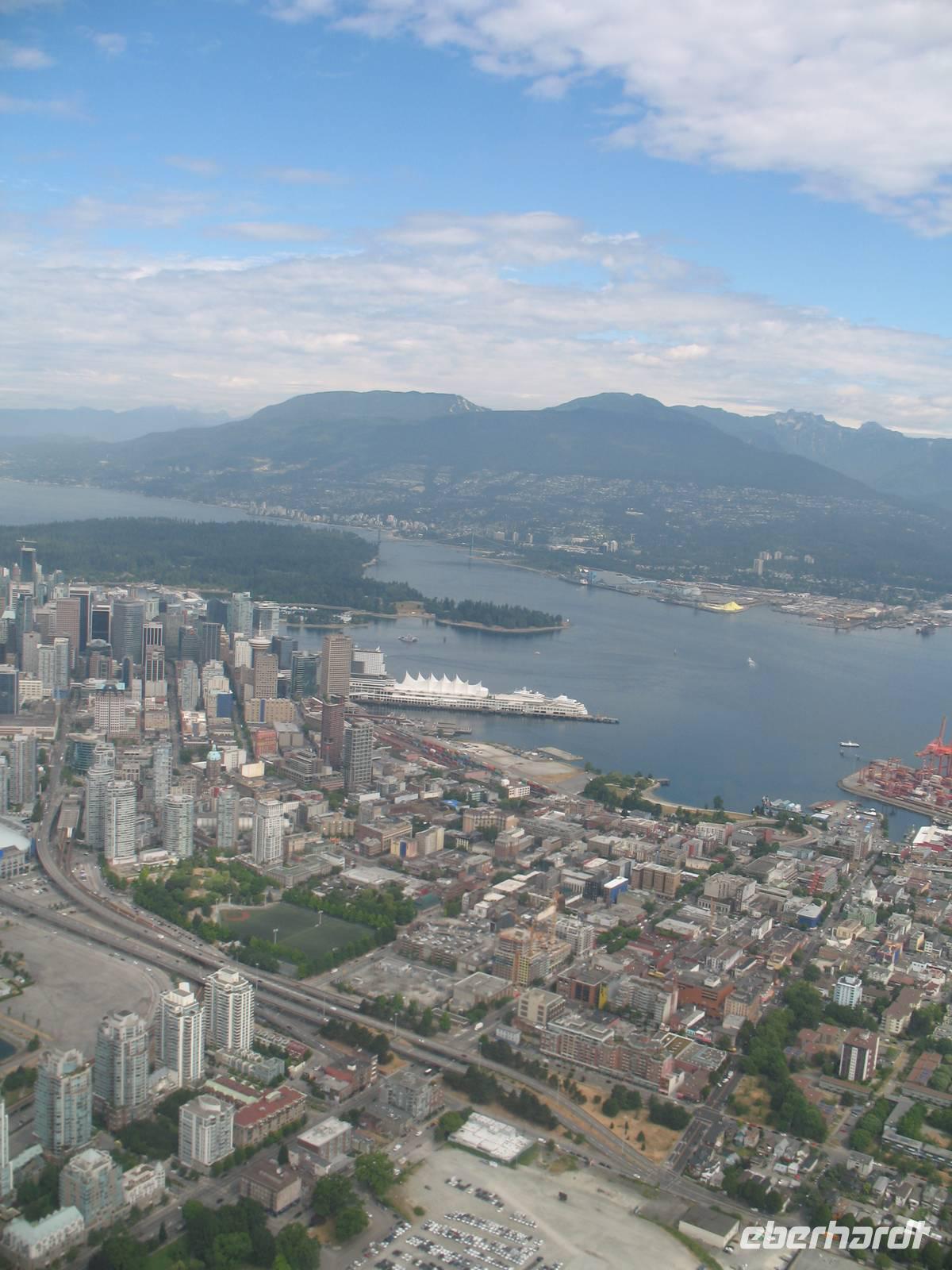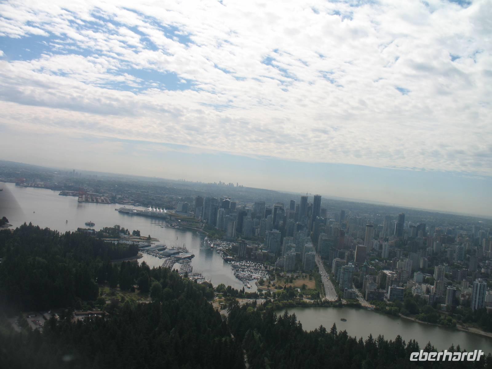 Unseren letzten Tag in Vancouver beginnen wir ausgiebig mit einem leckeren Frühstück bei strahlendem Sonnenschein. Einige Reisegäste möchten an ihrem letzten Tag in Kanada entspannen, in aller Ruhe ihre Sachen packen oder individuell noch unentdeckte Plätze besichtigen. Den anderen Gästen steht der Sinn nach Spannung und Abenteuer, daher laufen wir gegen 08.30 Uhr zum Coal Harbour, wo wir um 10.00 Uhr einen wunderschönen Flug mit dem Wasserflugzeug über Vancouver gebucht haben. Wir freuen uns riesig, besonders da das Wetter auch perfekt ist. Im Flugzeug erhalten wir alle einen Fensterplatz und unser Pilot Greg hat immerhin schon fünfzehn Jahre Flugerfahrung, so dass wir uns auch sicher fühlen können. Wir bestaunen die majestätischen Berge, die ausgedehnte Küste sowie die Schönheiten der Stadt und die umliegenden Parkanlagen auf unserem 35-Minütigen Flug. Ein wirklich wunderschönes Erlebnis zum Abschluss einer großartigen Reise :-) Gegen 11.00 Uhr sind wir wieder im Hotel zurück. Wir haben alle ein Zimmer mit Late-Check-Out bis 12.00 Uhr erhalten, so dass wir zu dieser Uhrzeit nach und nach in der Lobby mit unseren Koffern eintreffen. Wenige Minuten später werden wir auch schon von unserer lieben Anja und unserem neuen Busfahrer Ron abgeholt und zum internationalen Flughafen gefahren. Eine halbe Stunde später erreichen wir diesen bereits. Die Kofferabgabe verläuft ohne Schwierigkeiten. Unser Flug nach Deutschland hat leider eine Stunde Verspätung, wir brauchen also nicht hetzen und können ganz entspannt zur Sicherheitskontrolle laufen. Wir verabschieden uns herzlich von unserer örtlichen Reiseleiterin Anja und wünschen ihr und ihrer kleinen Familie alles Gute! Um 17.10 Uhr fliegen wir mit 55 Minuten Verspätung von Vancouver nach Frankfurt Am Main mit Lufthansa LH493. Nach einem leckeren Essen versuchen einige Gäste den Großteil unseres rund neunstündigen Fluges zu schlafen oder das Unterhaltungsprogramm an Bord zu genießen.