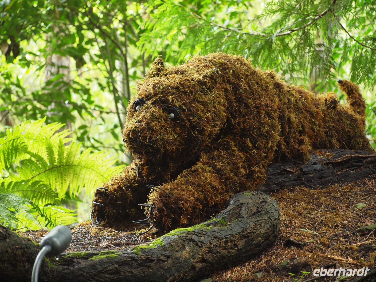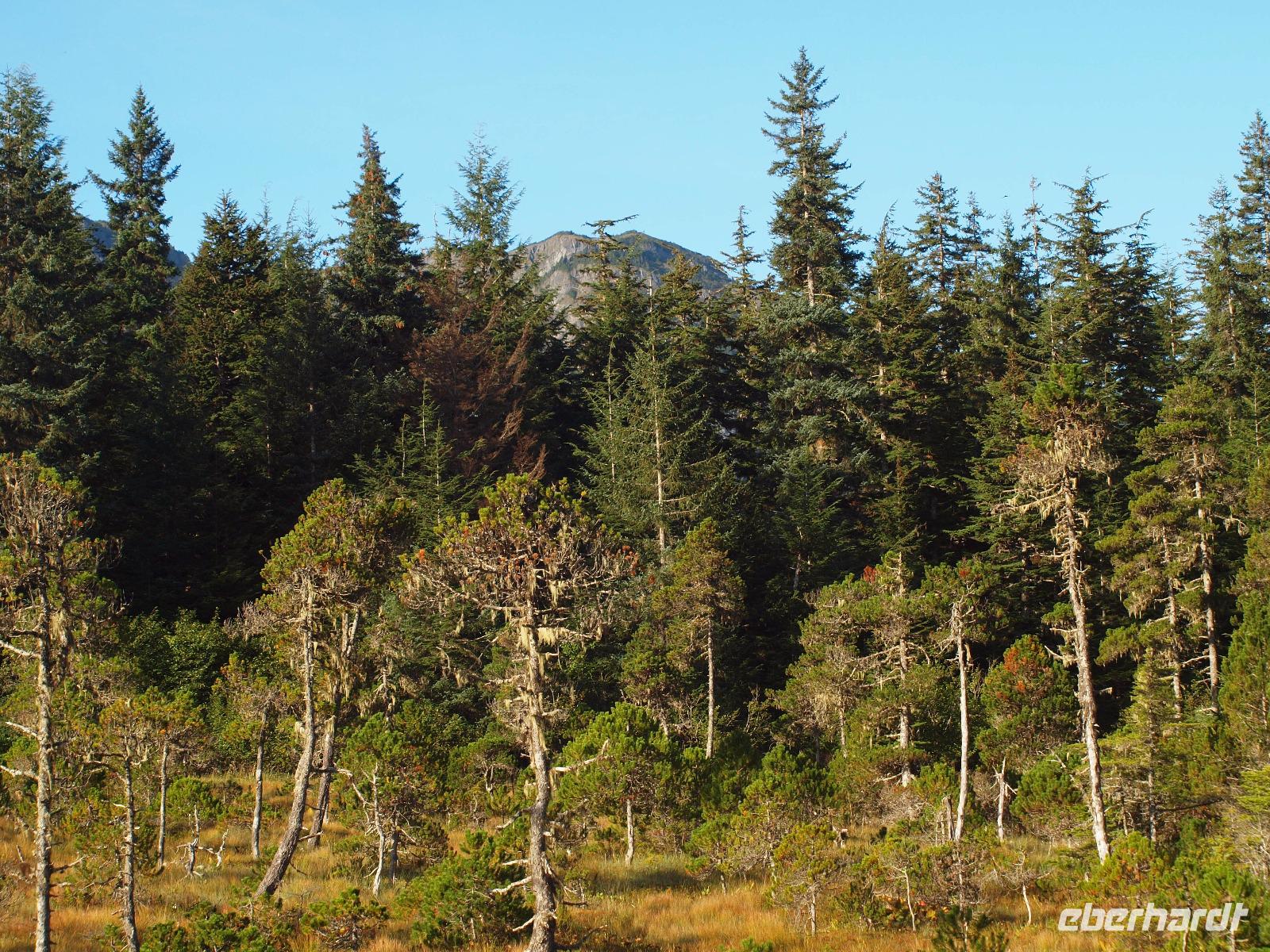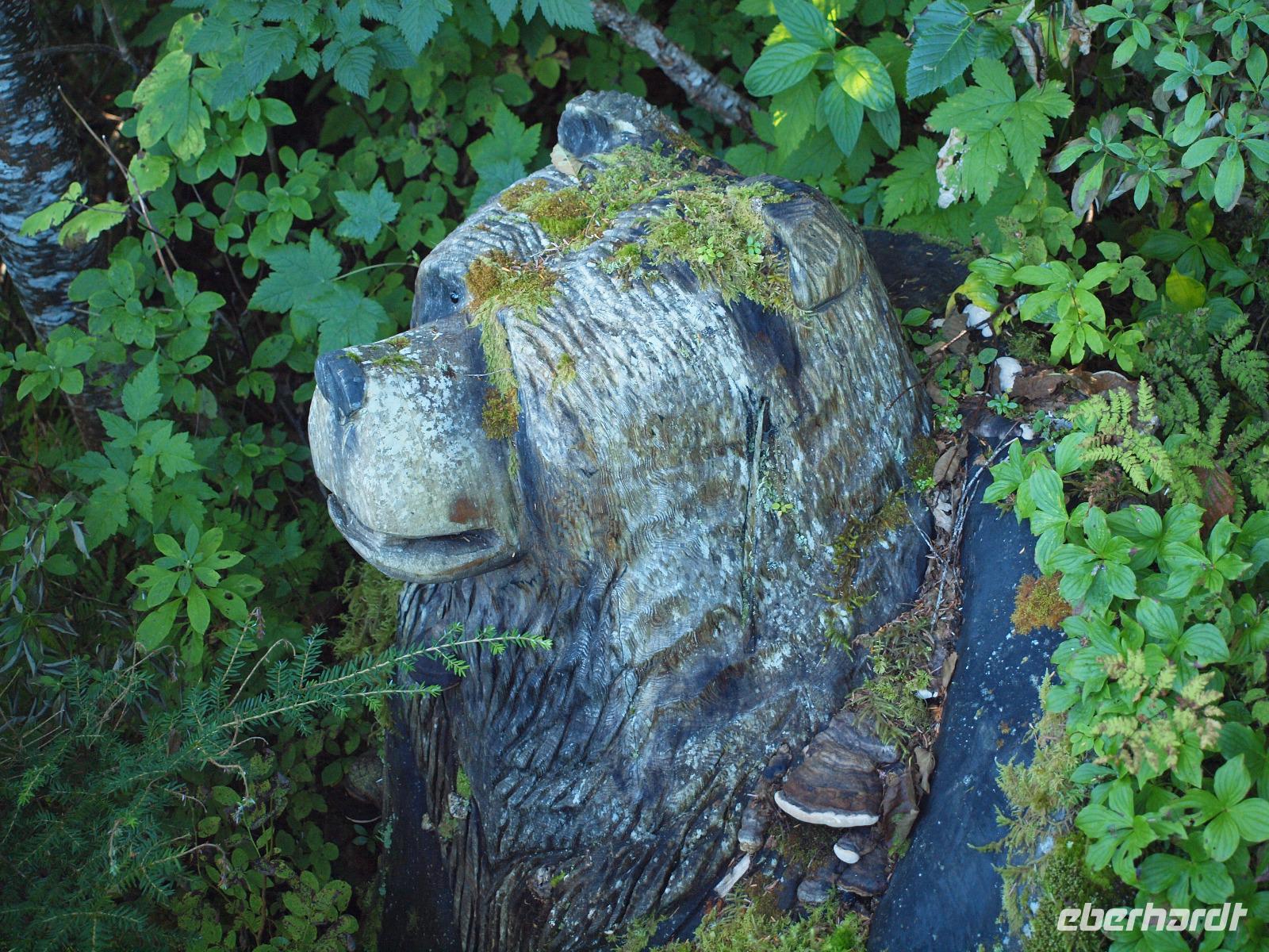 Wir kommen sehr früh auf der kleinen Insel an. Es ist ziemlich frisch heute und im Adventure Center angekommen warten wir, dass unser Ausflug "Wahles and Wildlife" los geht. Wir werden von unserem Guide abgeholt und gemeinsam gehen wir zum Bus. Die Hauptgemeinde Hoonah liegt nur ein paar Minuten vom Hafen entfernt und innerhalb eines Augenaufschlages waren wir auch schon wieder aus der Gemeinde draußen. Wir fahren zuerst in ein kleines abseits gelegenes Waldstück. Bevor wir dieses jedoch erreichen, sehen wir beim Überqueren einer Brücke einen Braunbären im Fluss. Erst scheint es als sei er verschwunden, doch nach ein paar Augenblicken kommt er zurück und genießt es förmlich vor versammelter Mannschaft seinen Fisch zu fressen. Nun geht es aber weiter in den Wald. Wir bekommen einen echten Ranger zur Seite gestellt und begeben uns über einen Pfand in die wilde Wildnis!