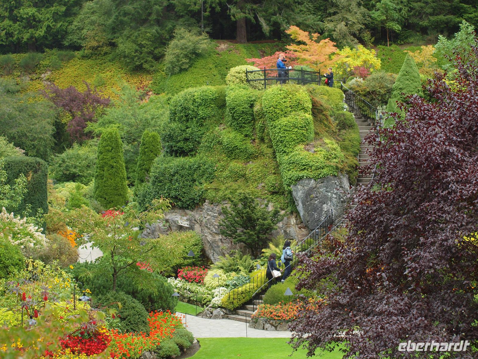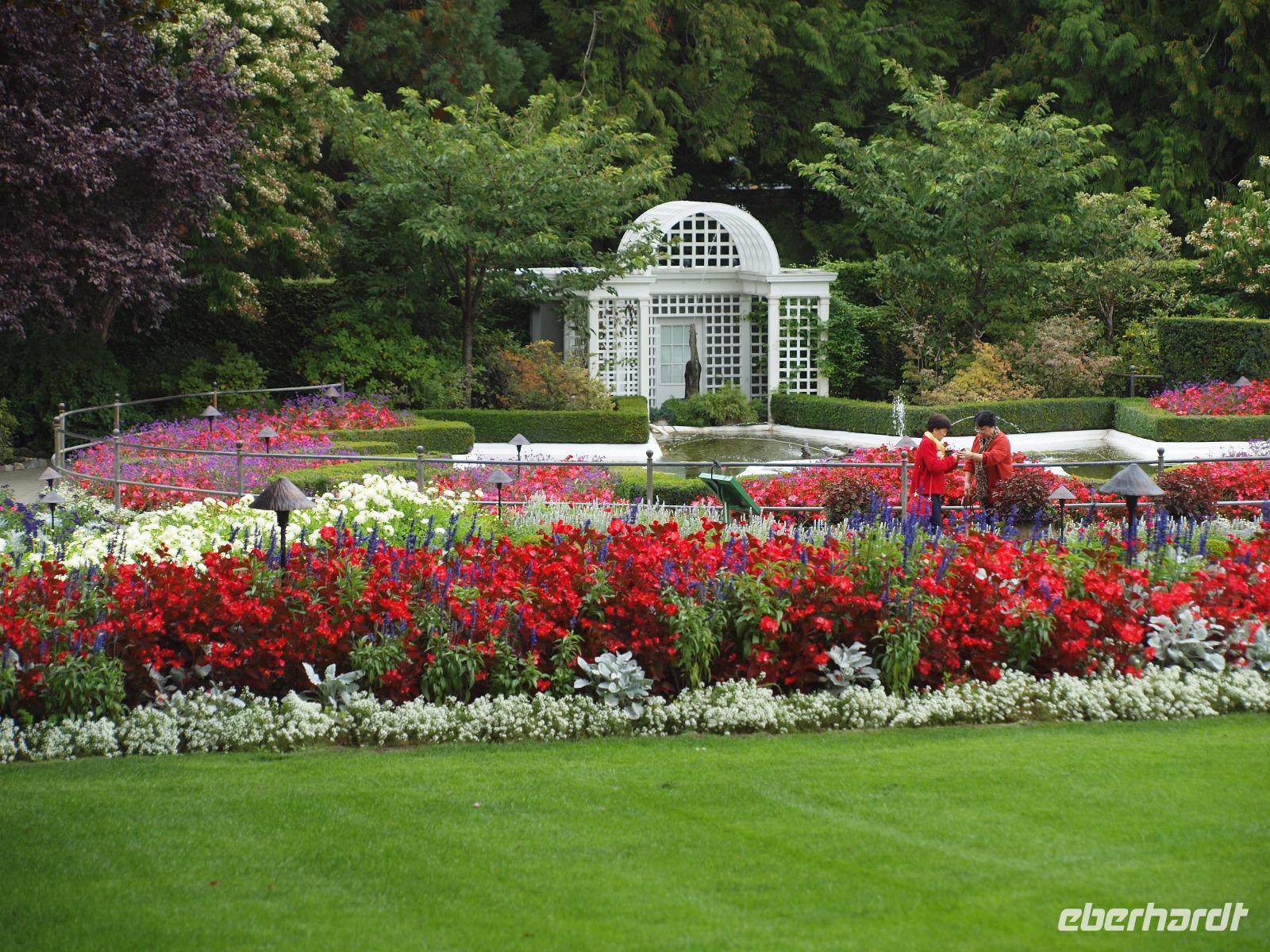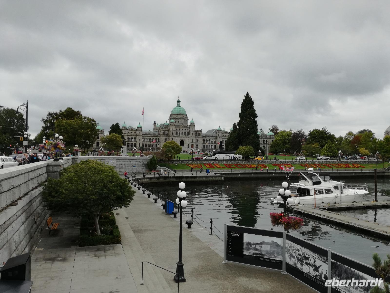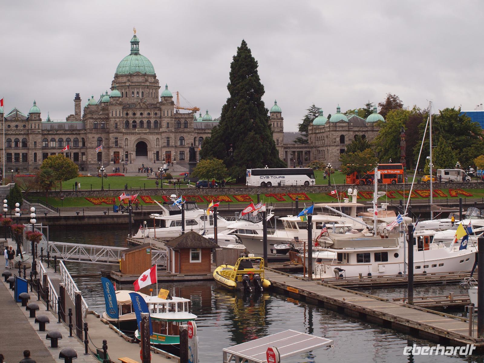 Um dem ganzen Großstadttrubel gleich wieder zu entfliehen, fahren wir heute nach Vancouver Island. Mit der Fähre von "BC Ferries" fahren wir von Tsawwassen nach Swartz Bay. Wir besuchen zu erst die wohl britischste Stadt außerhalb Groß Britanniens - Victoria. Nach einer kurzen Orientierungsfahrt können wir auch schon aus dem Bus und uns auf eigene Erkundungstour begeben. Zuerst gehen wir natürlich zum Parlamentsgebäude, danach die Government Straße entlang, hier sind wieder einige Souvenirläden vertreten, Pubs und andere Geschäfte. Am Ende der Straße beginnt das Chinatown, hier sieht man unter anderem die engste Straße Kanadas, die Gasse "Fan Tan Alley". Und dann geht es entlang der Hafenstraße wieder zurück zum Bus. Wir mögen Victoria sehr und wären gerne noch etwas länger geblieben. Weiter geht die Reise aber zu den Butchart Gardens. Gini gibt uns einige Hinweise zum Verhalten in den Gärten und wie wir unseren Weg am besten planen sollten. Es gibt verschiedene Themengärten und jeder ist einzigartig auf seine Weise. Wirklich ein gelungenes Kontrastprogramm und nicht nur ein schönes Erlebnis für Gartenliebhaber ;-)