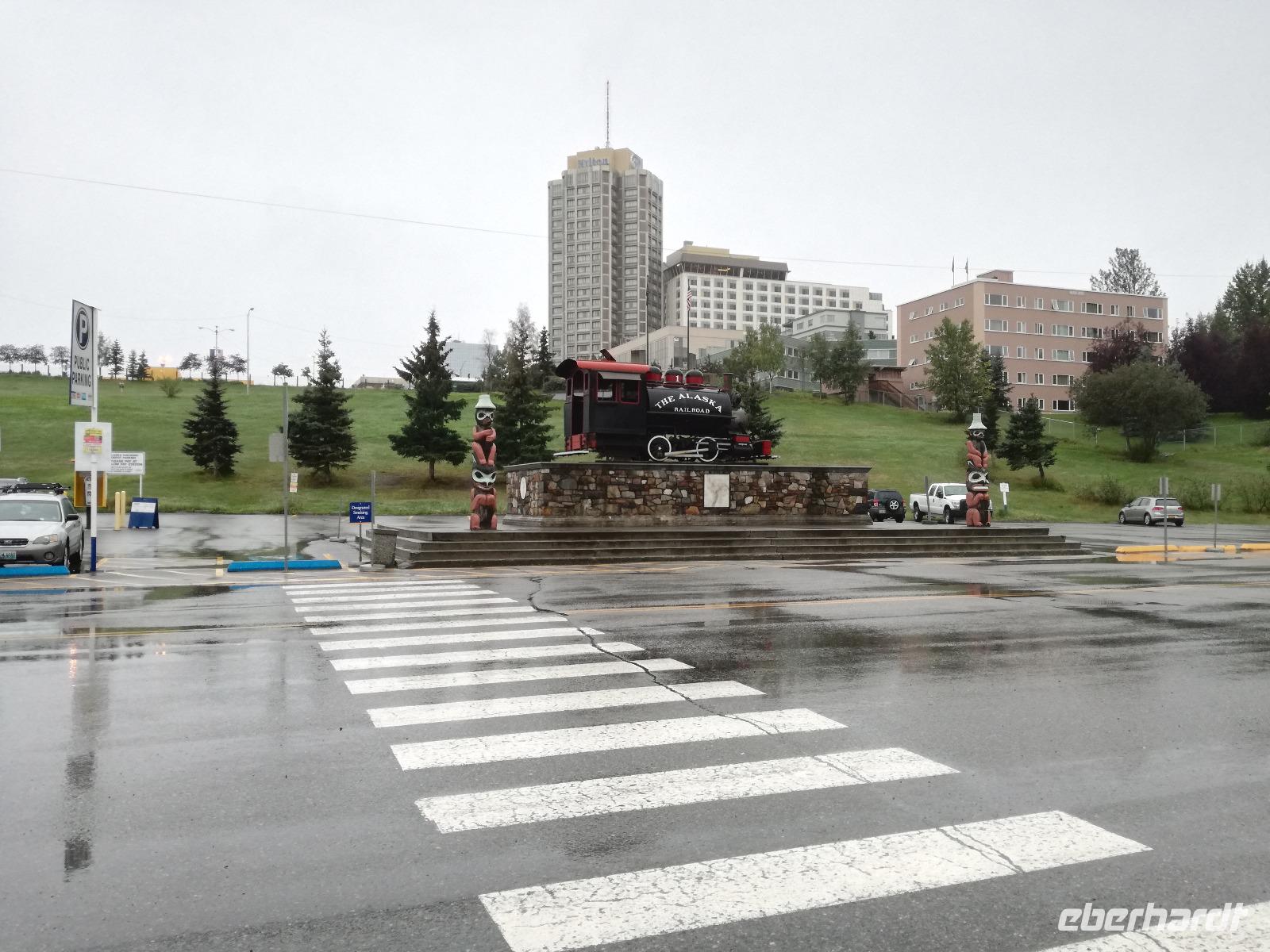 Schon sehr zeitig fahren wir mit dem Bus zum Bahnhof von Anchorage. Das Wetter scheint allerdings nicht auf unserer Seite zu sein und begrüßt uns mit Regen...