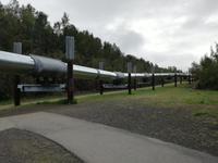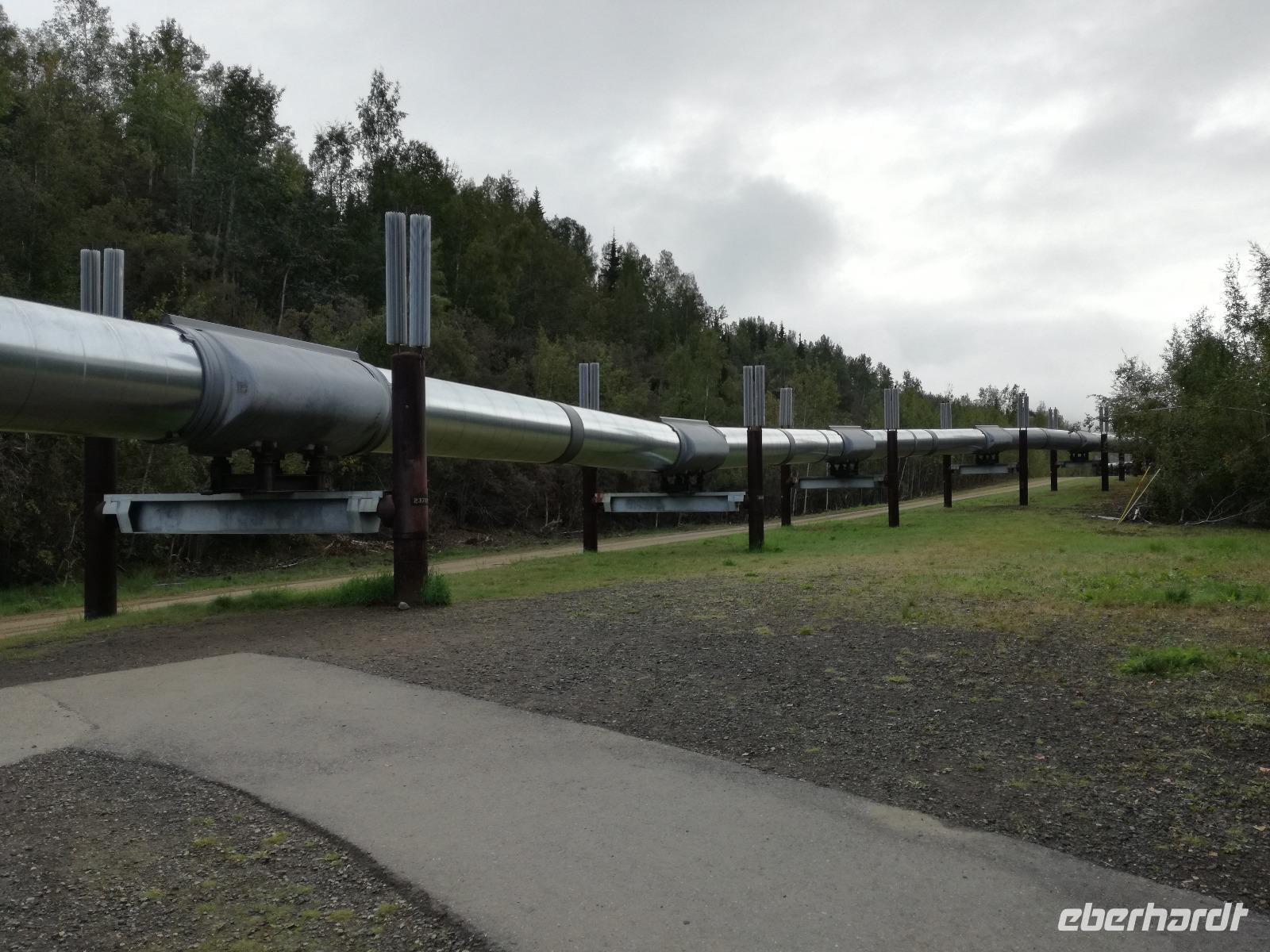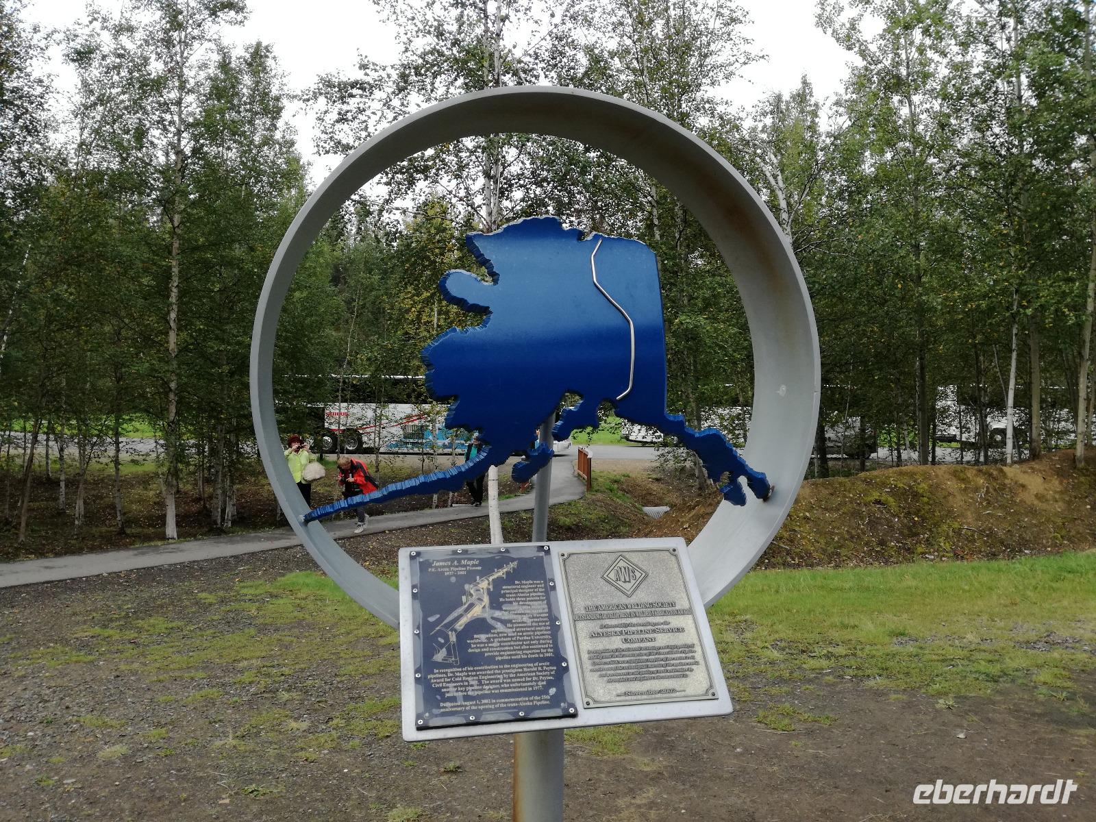 Schon sehr früh brechen wir in Fairbanks wieder auf. Nach einer Steppvisite im winzigen Downtown von Fairbanks und einem Stopp am Denkmal der ersten Siedler der Stadt fahren wir aus der Stadt raus und halten an der Trans-Alaska-Pipeline. Hier bleiben wir für etwa 20 Minuten und bekommen von Anna interessante Erklärungen geliefert. Die Pipeline wurde 1974 vollendet und transportiert seitdem ein Viertel der Ölreserven der USA zum Pazifischen Ozean. Unsere Fahrt geht weiter und wir halten zunächst am Supermarkt "Fred Meyer", dieser hat gefühlt die Größe einer Kleinstadt in Alaska... Anschließend setzen wir unsere Reise weiter nach Denali fort.
