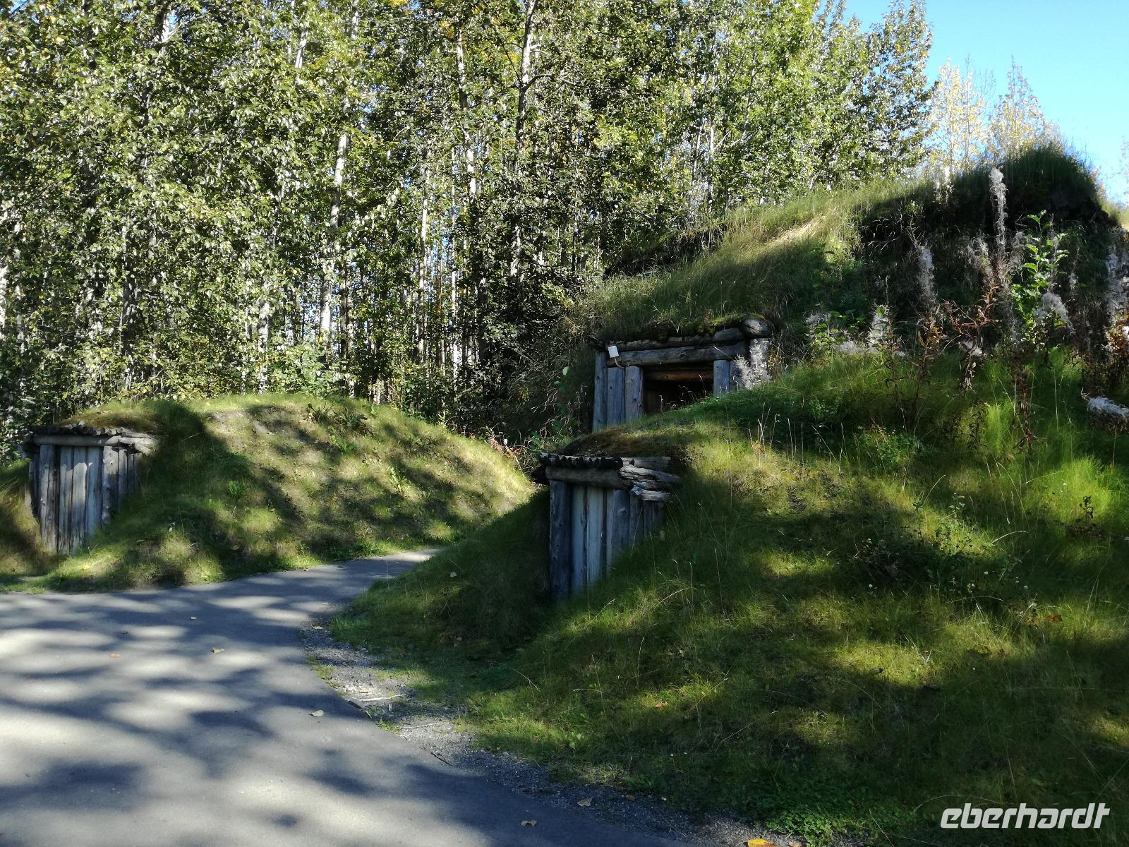 Nach einem kurzen Snack zu Mittag wartet unser neuer Fahrer auf uns, K.M. Er wird uns den restlichen Weg bis Anchorage fahren. Kurz vor 16:00 Uhr erreichen wir in Anchorage das Alaska Native Heritage Center. Hier zeigt uns Anna bei einem Spaziergang durch den Park die verschiedenen Wohn-"häuser" der Stämme Alaskas. Durch die Panne fehlt uns hier leider etwas Zeit und bereits nach einer gut überzogenen Stunde müssen wir schon wieder gehen, da das Zentrum schließt. Wir fahren also in unser Hotel, verabschieden uns bei K.M. und beziehen unsere Zimmer. Bei einem gemeinsamen Abendessen werten wir die Erlebnisse des ersten Teils der Reise aus, wir sind gespannt, was uns wohl auf Kreuzfahrt alles erwartet...