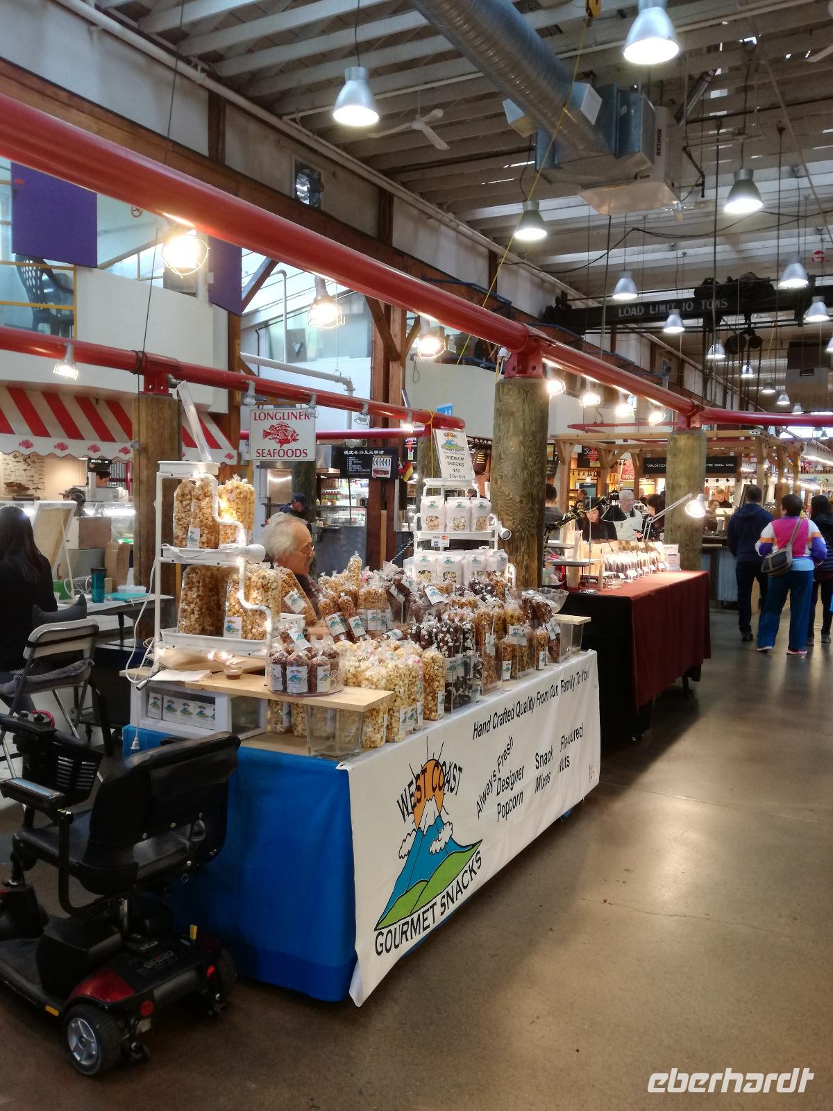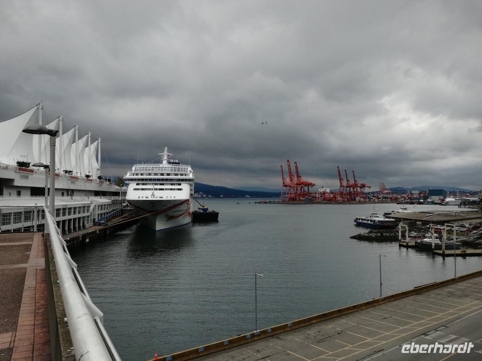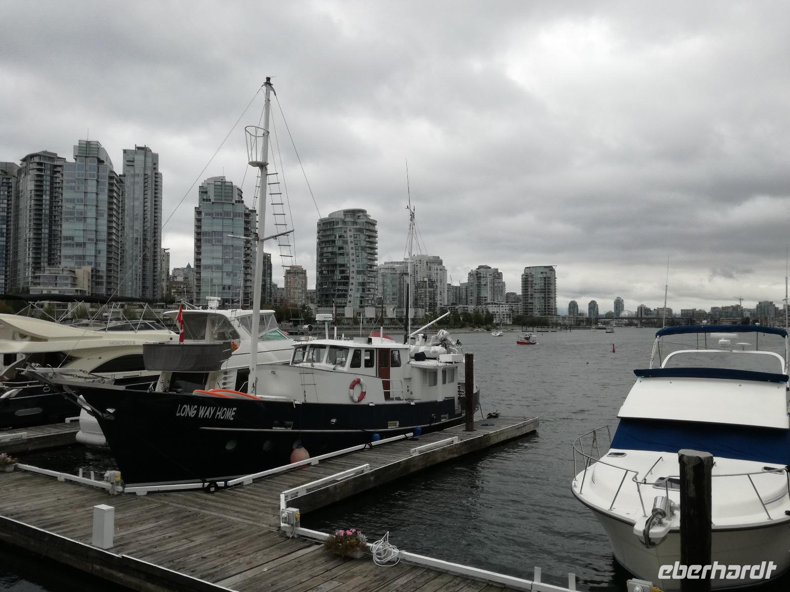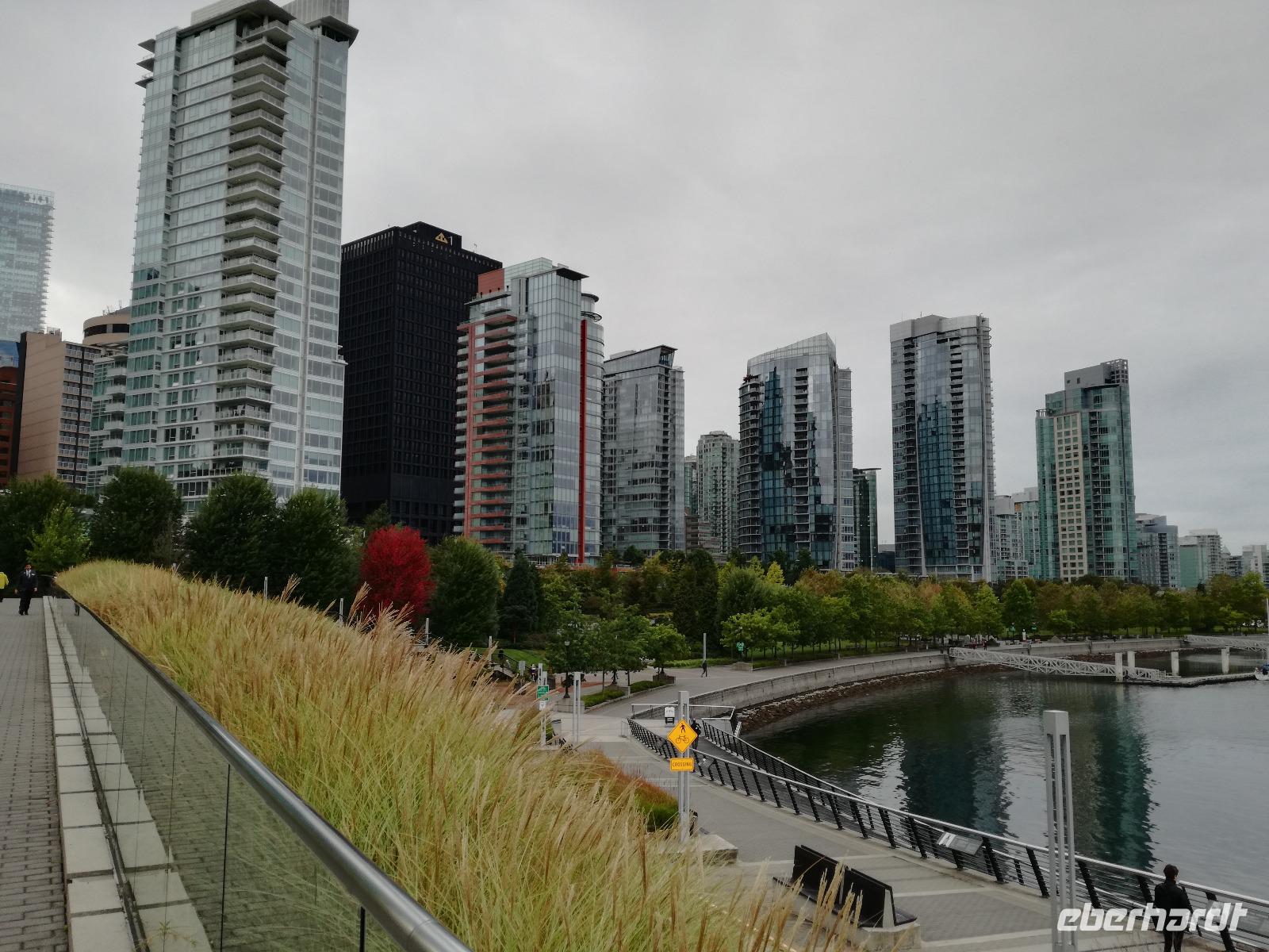 Wir beginnen gleich mit der Stadtrundfahrt durch Vancouver und fahren nach Granville Island zum öffentlichen Markt, es ist jetzt noch recht ruhig und so haben wir genug Zeit um die lokalen Angebote anzusehen und zu kosten. Mit etwas Proviant für die nächsten Tage fahren wir weiter. Durch die verschiedenen Stadtteile von Vancouver und die Wolkenkratzer ist es nahezu ein kleiner „Kulturschock", den wir erleiden. Immerhin war bis vor gut 24h das höchste Haus unser Kreuzfahrtschiff gewesen...