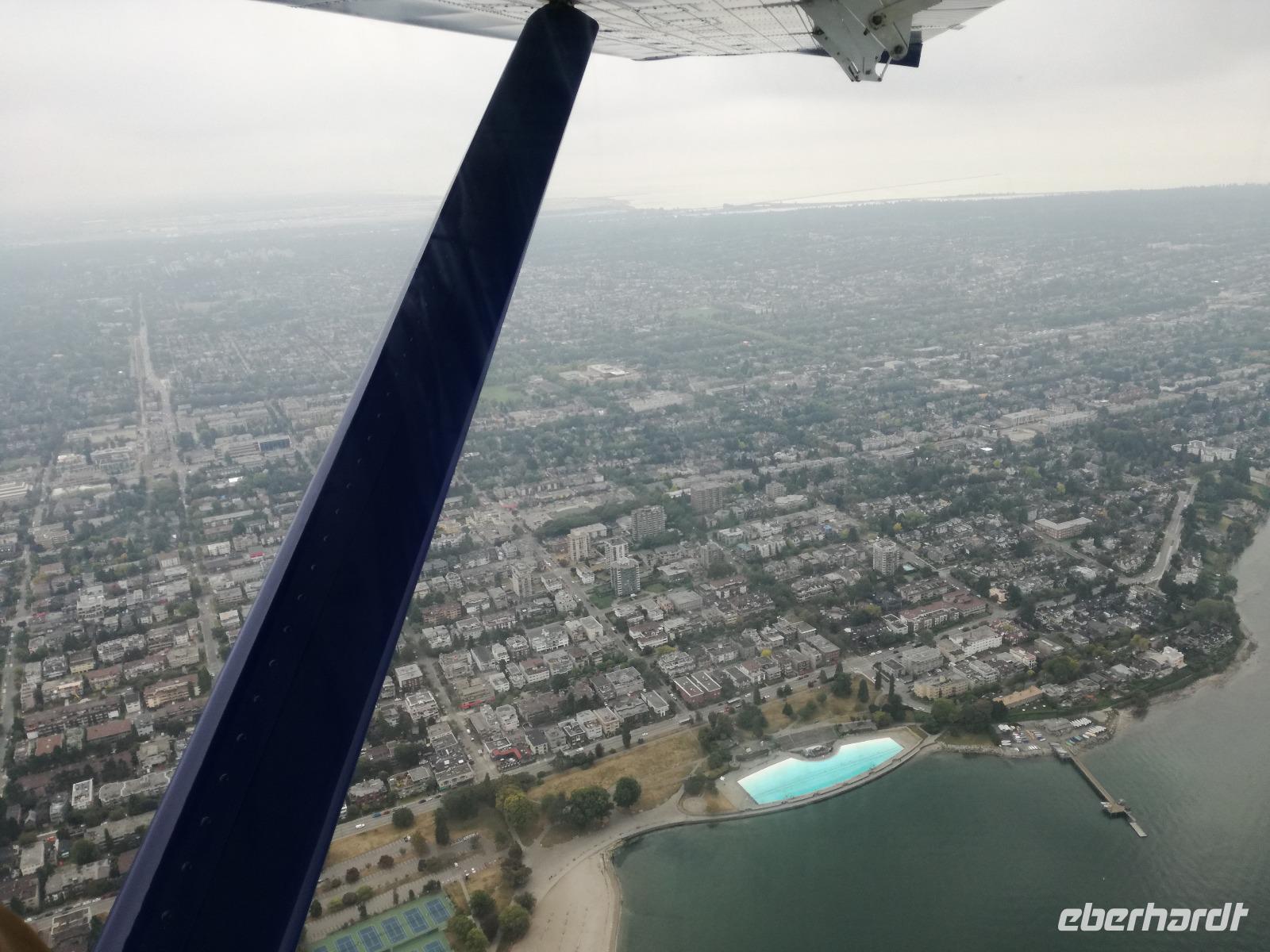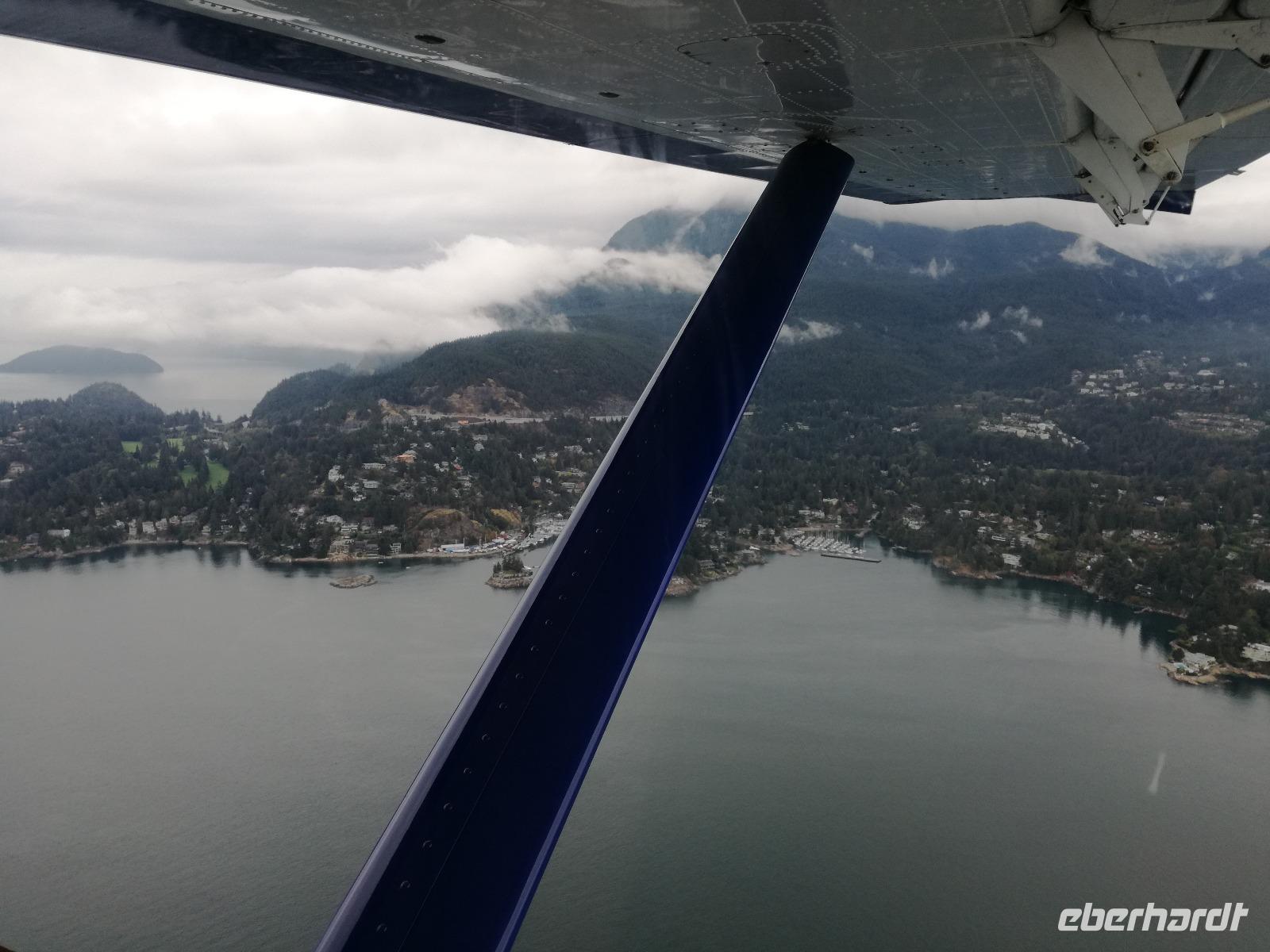 Bevor wir nach Hause fliegen haben wir noch etwas Freizeit bis Mittag und ein paar von uns nehmen bei einen Wasserflugzeug-Rundflug über Vancouver teil. Leider spielt das Wetter nicht ganz mit und so hängt die Wolkendecke sehr weit unten. Doch Henry, der Pilot, macht das Beste daraus und fliegt mit uns über die Küste von West-Vancouver, Bowen Island und dann wieder zurück zur Stadt. Nach 20 Minuten landen wir wieder und begeben uns zurück ins Hotel. Es wird Zeit sich auf den großen Flieger vorzubereiten. Wir treffen uns um 12:30 Uhr alle in der Lobby, laden die Koffer in den Bus und können um 13:00 Uhr zum Flughafen fahren. Wir bedanken und verabschieden uns von Gini nach dem Check-In. Von hier heißt es nun warten, warten auf den Flieger und hoffen, dass die 9,5 Stunden schnell vorüber gehen...