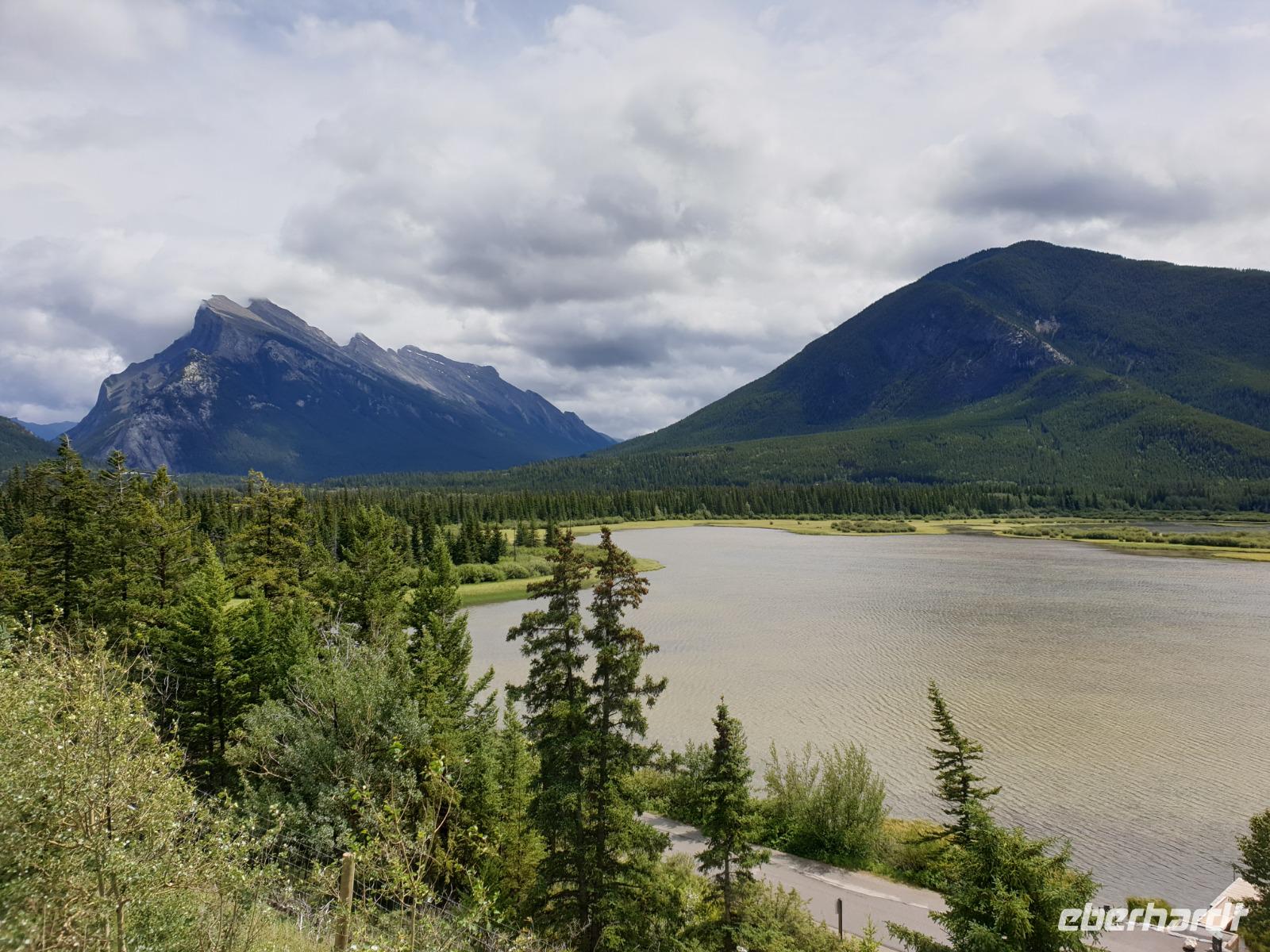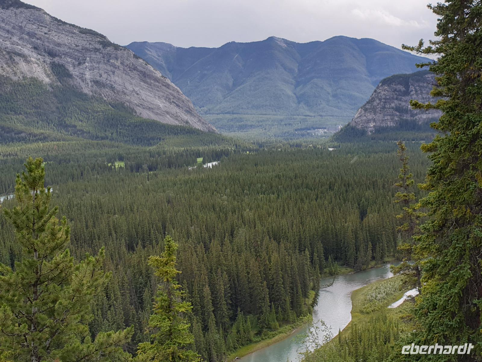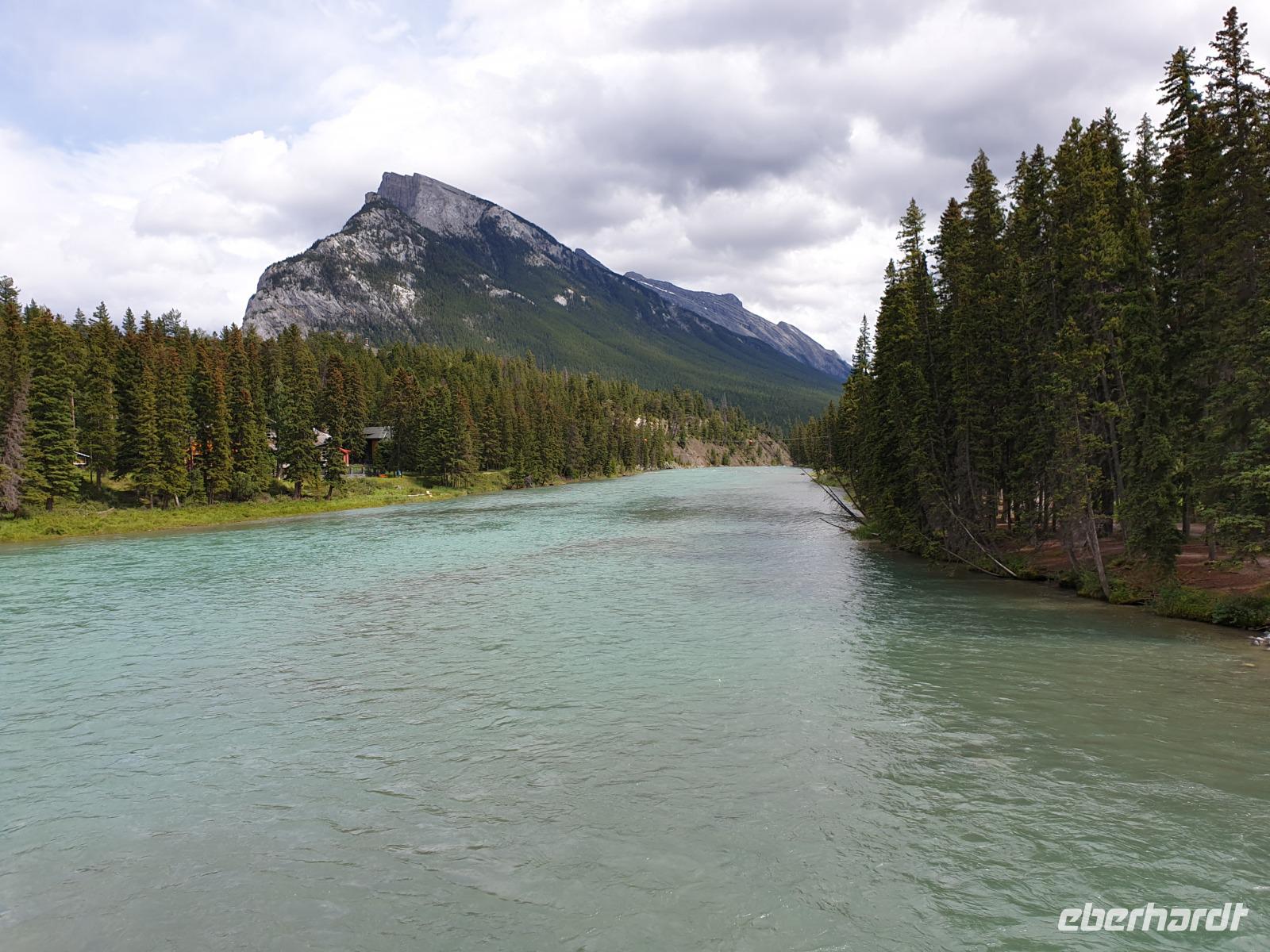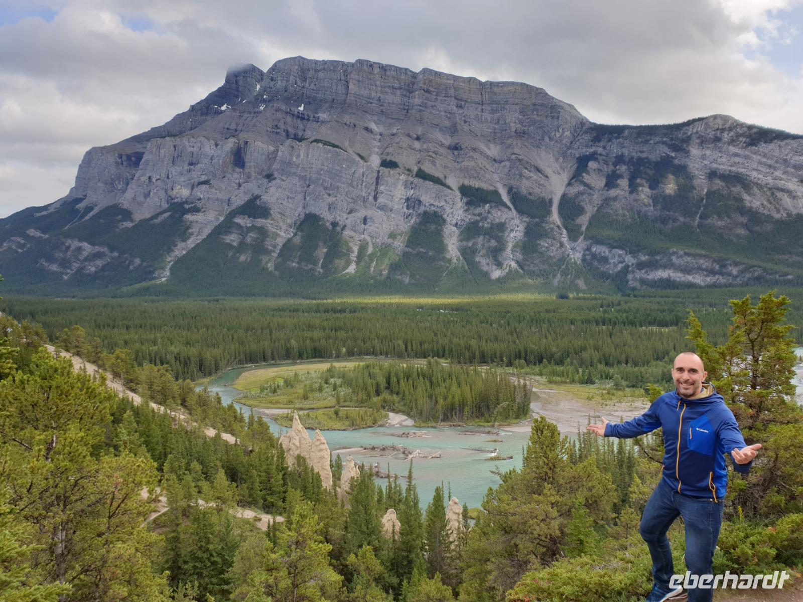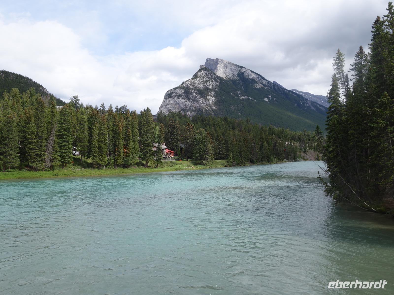 Weiter geht es für uns in die Stad nach Banff selbst. Der kleine Ort mit ca. 7.500 Einwohnern liegt malerisch eingebettet in einem Tal umgeben von den vier Gipfeln des Mount Norquay (2.523m) und Mount Rundle (2.948m) sowie den Sulphur (2.451m) und Cascade Mountain (2.998m). Das kleine Städtchen lädt zum schlendern und Kaffee trinken ein. Im Winter zieht es vor allem Skifahrer hierher. Insbesondere das Luxus Schloss Hotel „Banff Springs Hotel" zieht immer wieder Leute in seinen Bann.