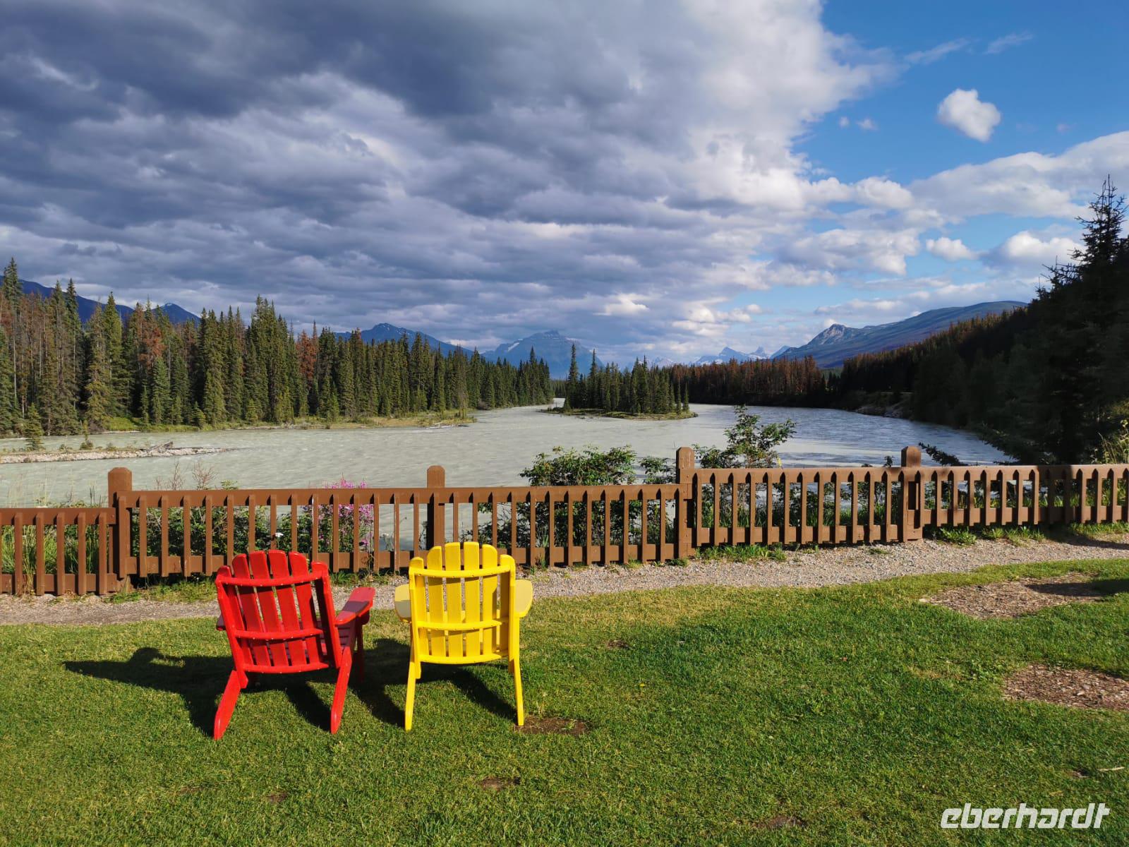 Bevor wir die Becker Chalets als unser heutiges Domizil erreichen, statten wir noch den Athabasca Wasserfällen einen kurzen Besuch ab. Wieder neigt sich ein aufregender Tag langsam dem Ende entgegen...