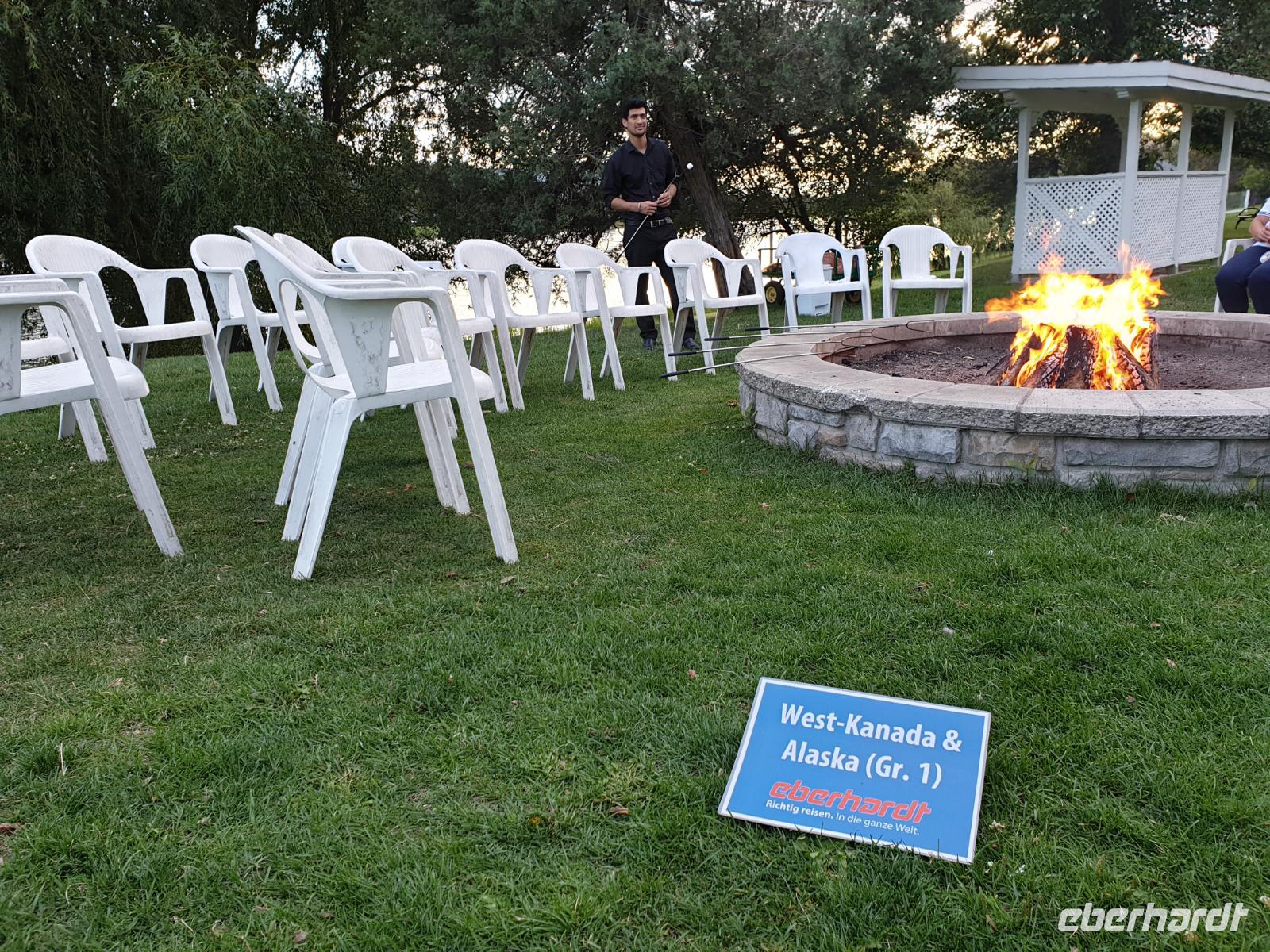 Wir übernachten heute in Kamploops im Thompson Inn, direkt am North Thompson River gelegen. Abends lassen wir es uns an einem Lagerfeuer gutgehen - trotz heutigen 27°Grad Außentemperatur. Das Feuer und der Rauch halten uns dafür lange die Moskitos fern.