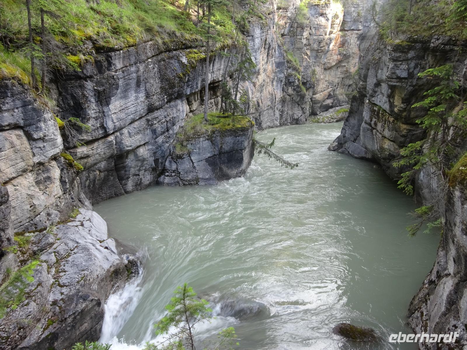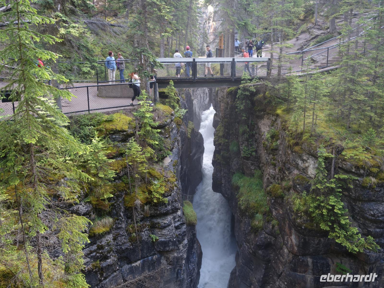 Gut erholt und ohne viel Moskito Blessuren (in der Dämmerung und direkt am Fluss sind wir ein gefundenes Fressen) geht es für uns zum Maligne Canyon im nördlichen Teil des Jasper Nationalparks. Dieser Zwischenstopp ist sehr lohnend und vom Parkplatz geht es in eine pittoreske Kalksteinschlucht. Mehrfach überqueren wir den engen Canyon. Tief unter uns tost der Maligne River. Der Canyon wurde bereits während der Eiszeit geformt und wird noch heute von Gletscherwasser gespeist.