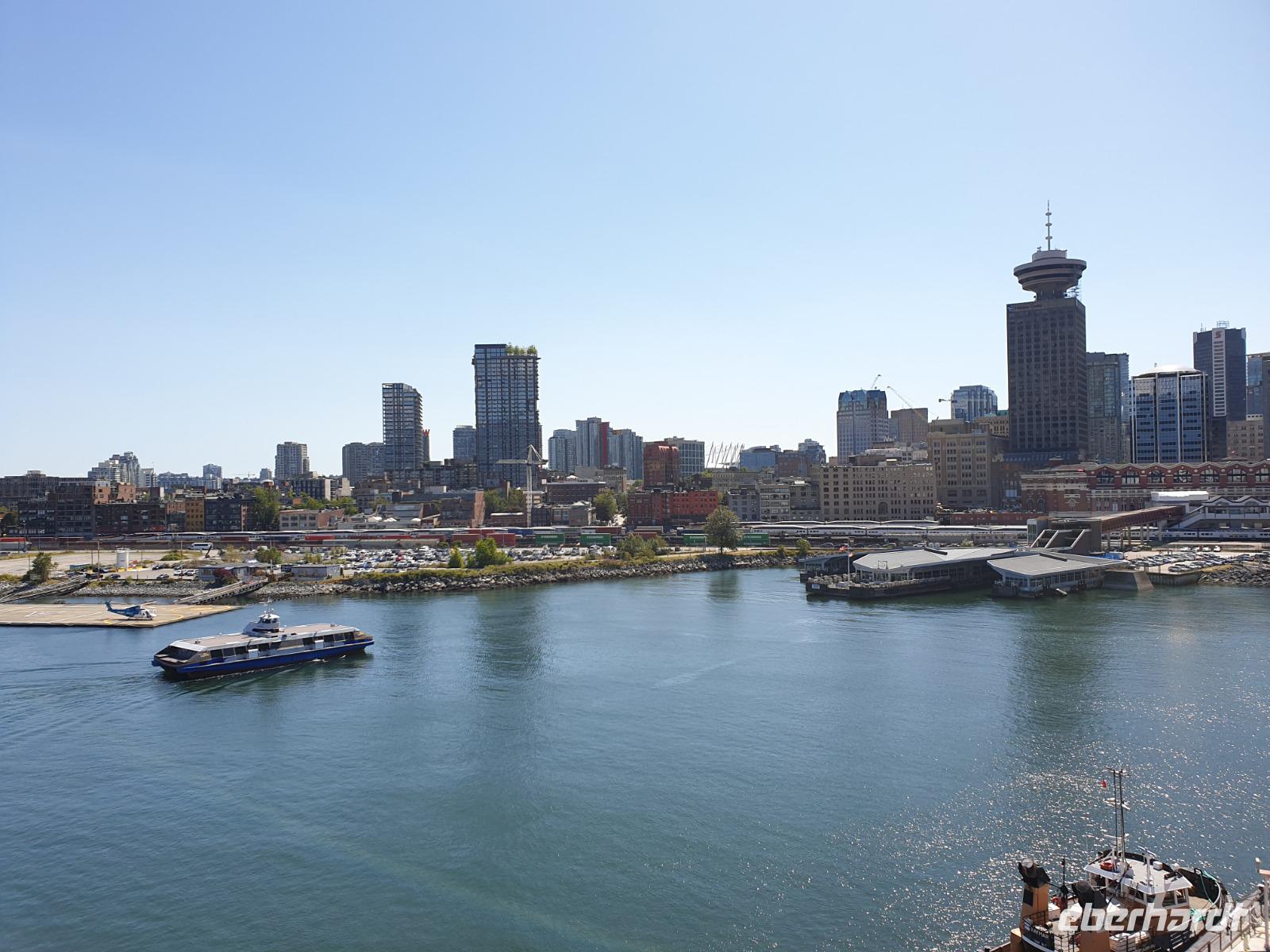 Am frühen Nachmittag erreichen wir dann endlich Vancouver. Vancouver ist die attraktivste Großstadt in Kanada. Mit der Lage zwischen Küstengebirge, Fraser River und Meer ist sie unübertroffen landschaftlich herrlich gelegen und die Strände und zahlreiche Parks prägen das Stadtbild.