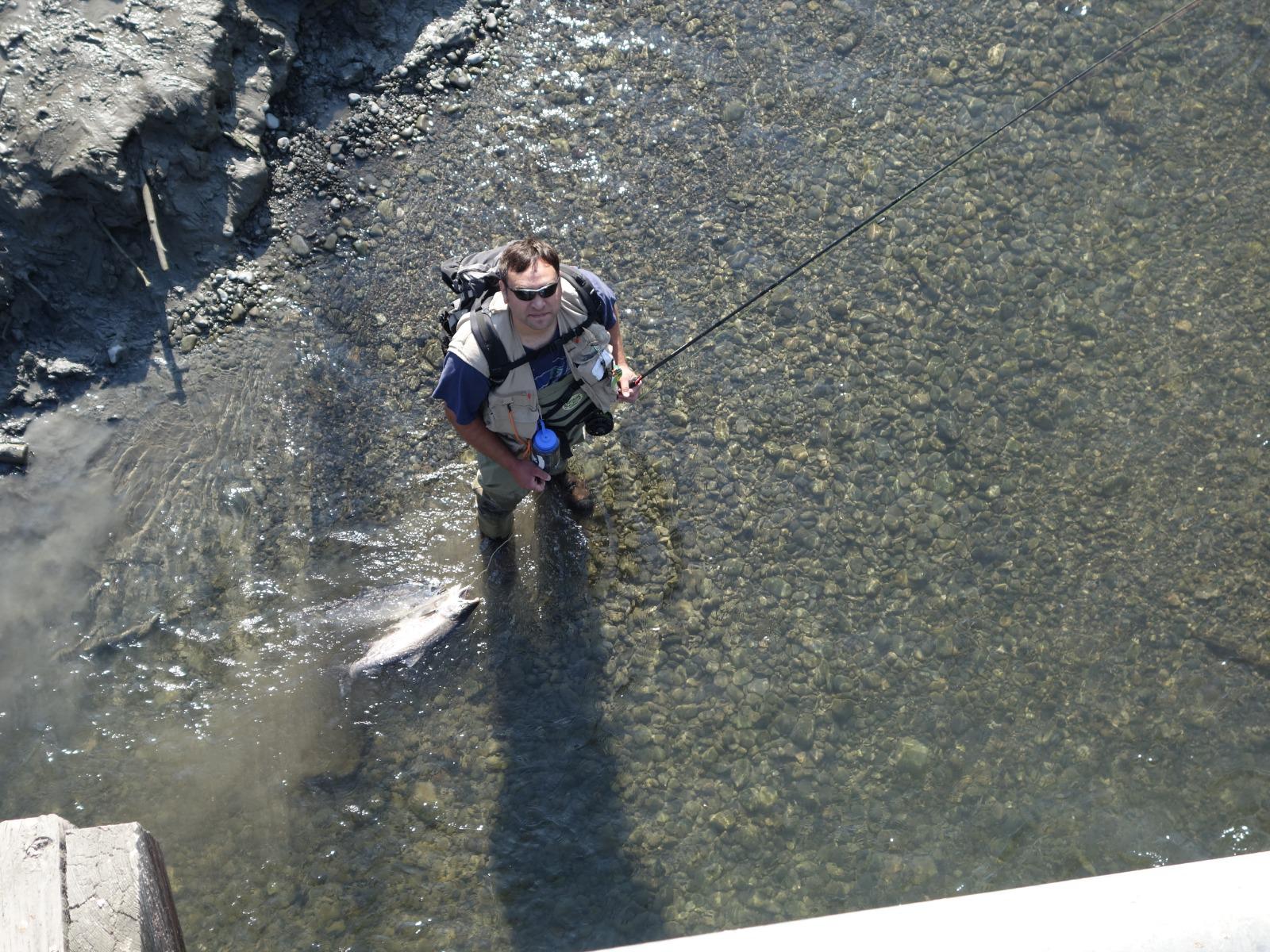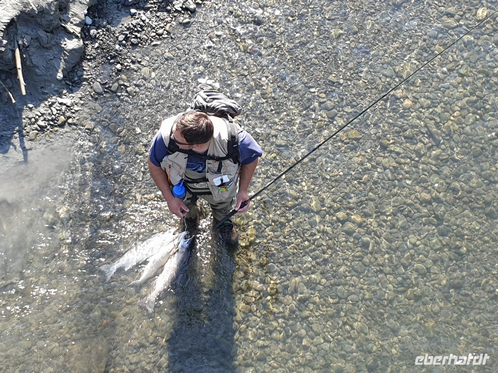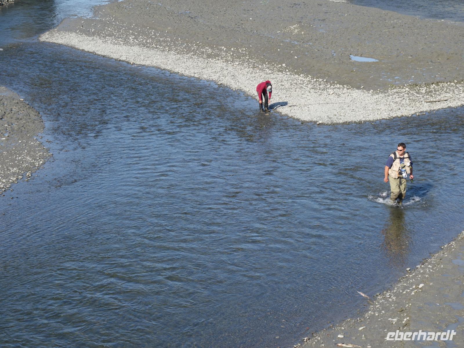 Weiter geht es in den Macaulay Lachszuchtbetrieb. Der Zuchtbetrieb hat vier Lachszuchten in der Umgebung von Junea und züchtet fünf verschiedene Lachsarten, die in Alaska heimisch sind. Wir sehen verschiedene Becken und Rampen, in denen sich die Wildlachse in verschiedenen Stadien ihres Lebens befinden. Die Lachse werden hier nicht wie auf einer herkömmlichen Fischfarm gehalten, sondern in das Meer zurück entlassen. Erst wenn die Lachse nach Jahren zum Laichen in ihr Heimatgewässer wiederkehren, werden sie von der Farm betäubt und ihrer Eier und Samen entnommen. Der Zyklus der Aufzucht beginnt von vorne.