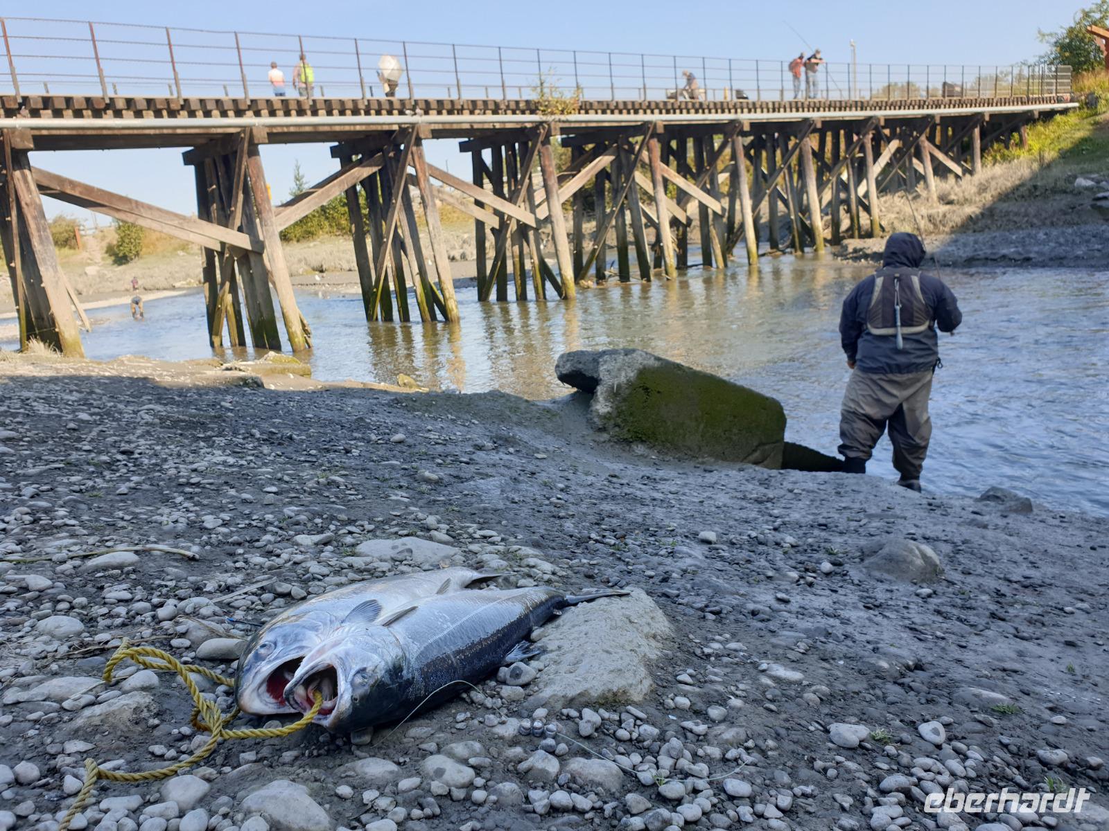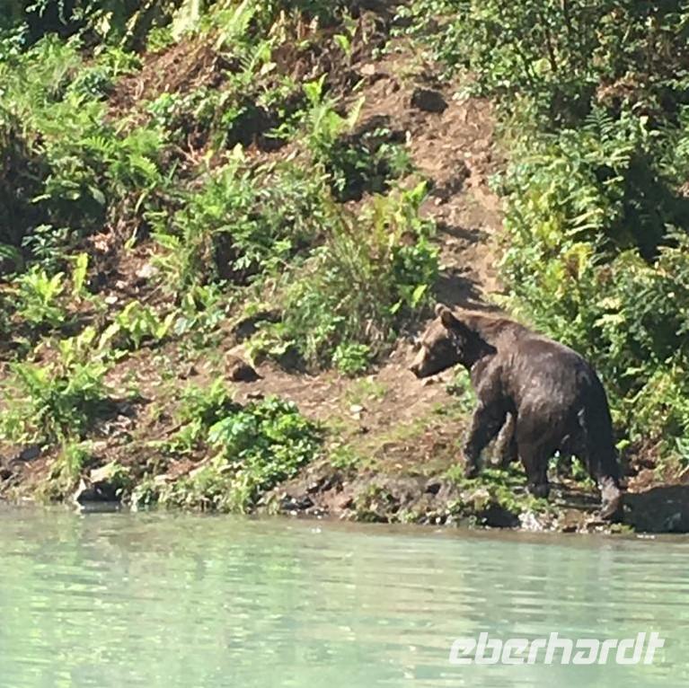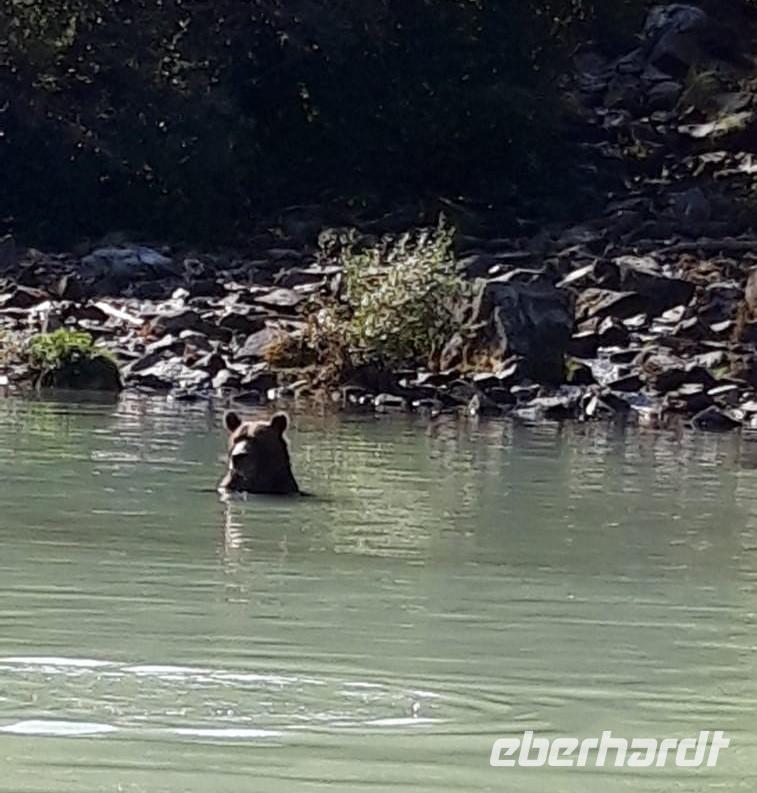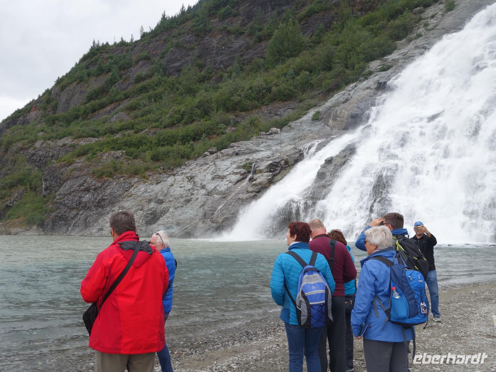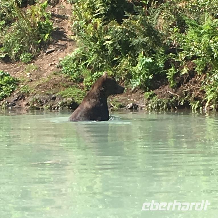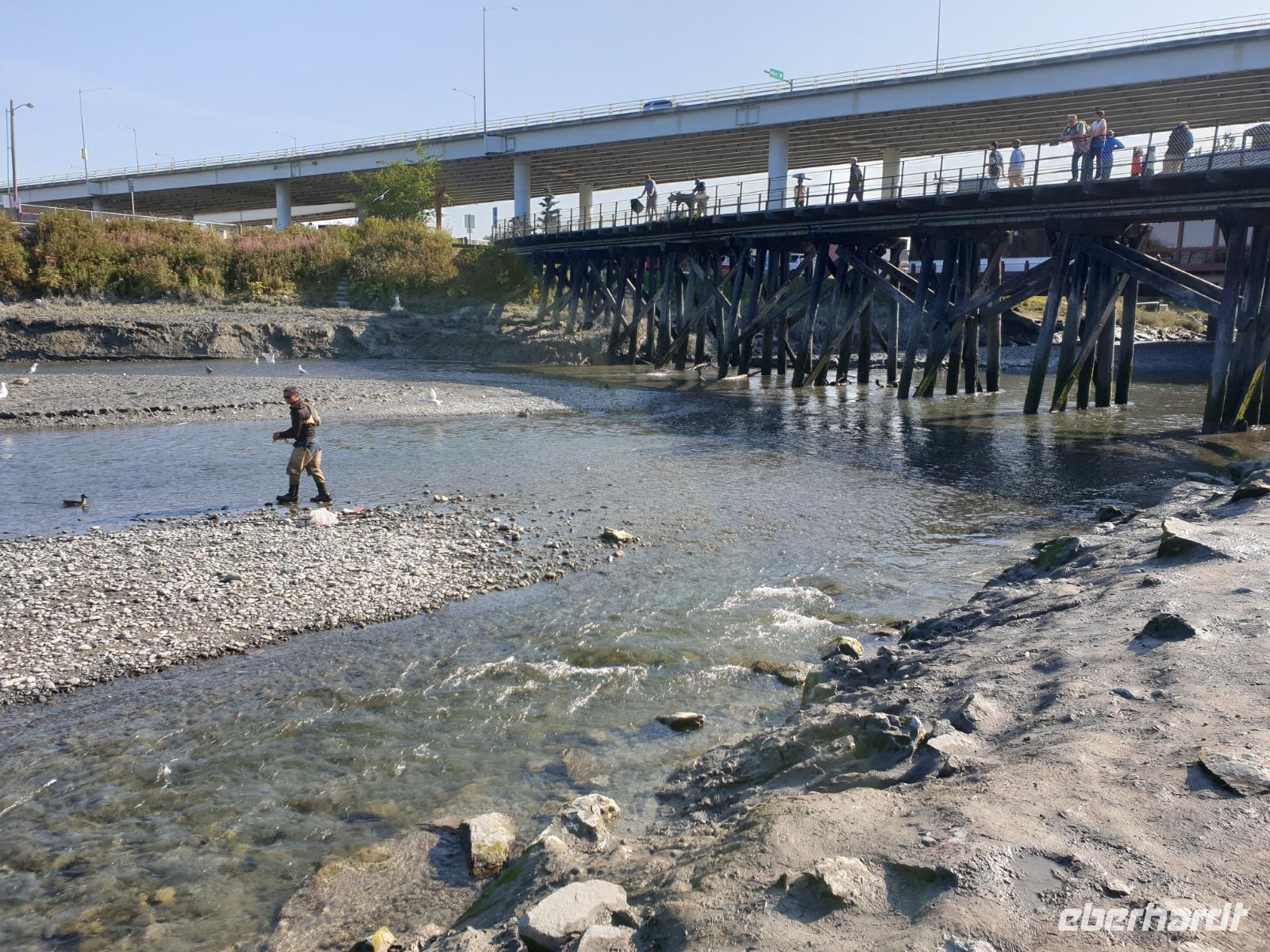Nach einem Seetag folgt nun unser erster Landgang auf der unserer Kreuzfahrt durch Alaska. Ketchikan wird auch die Lachshauptstadt genannt. Aus gutem Grund, denn wir werden auf unserem Spaziergang durch den Ort vorbei an zahlreichen Flussüberquerungen und Stromschnellen sehr viele Lachse beobachten können. Die meisten von ihnen sind auf dem Weg zurück in ihre Heimatgewässer, um dort zu laichen. Dabei müssen sie gegen den Strom schwimmen und zahlreiche Stromschnellen überwinden. Bei diesem sogenannten Lachsspringen kann man die Tiere bei ihrem Kampf gegen die Strömung und gegen andere Naturgewalten sehr gut beobachten.