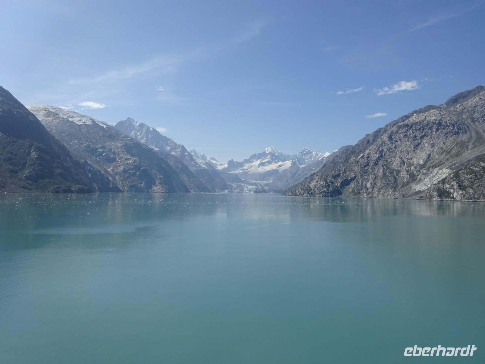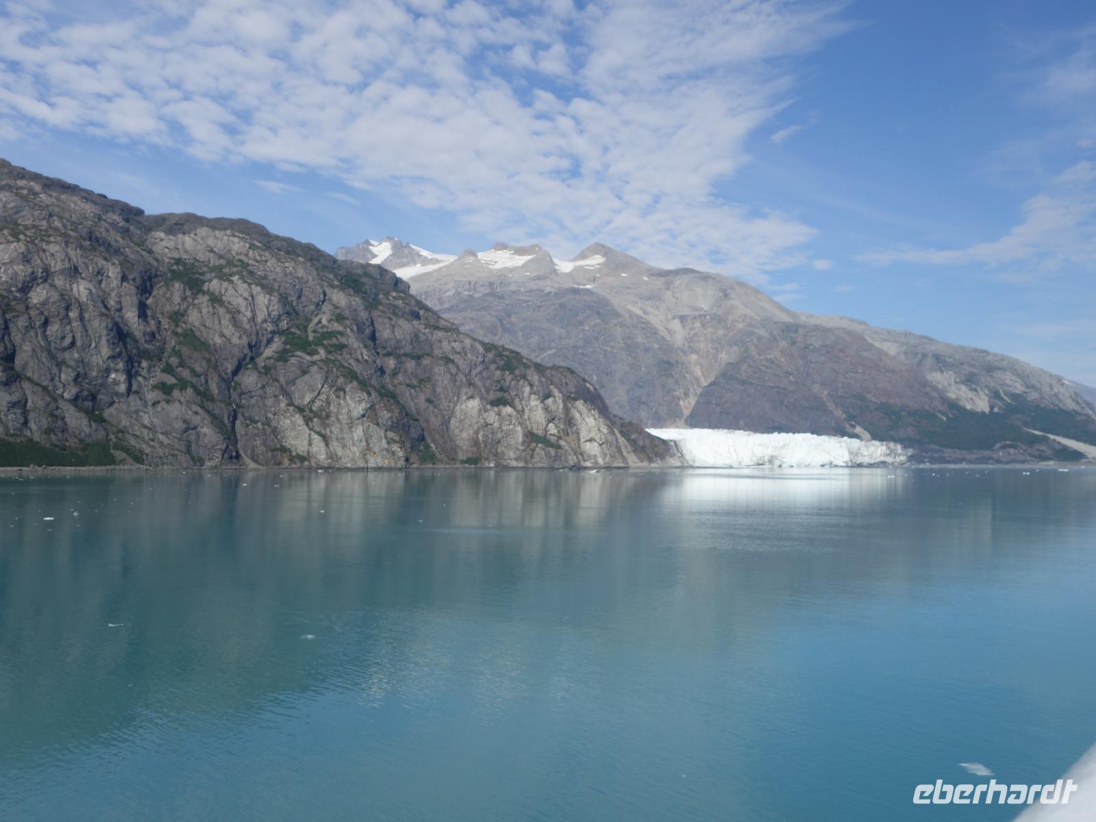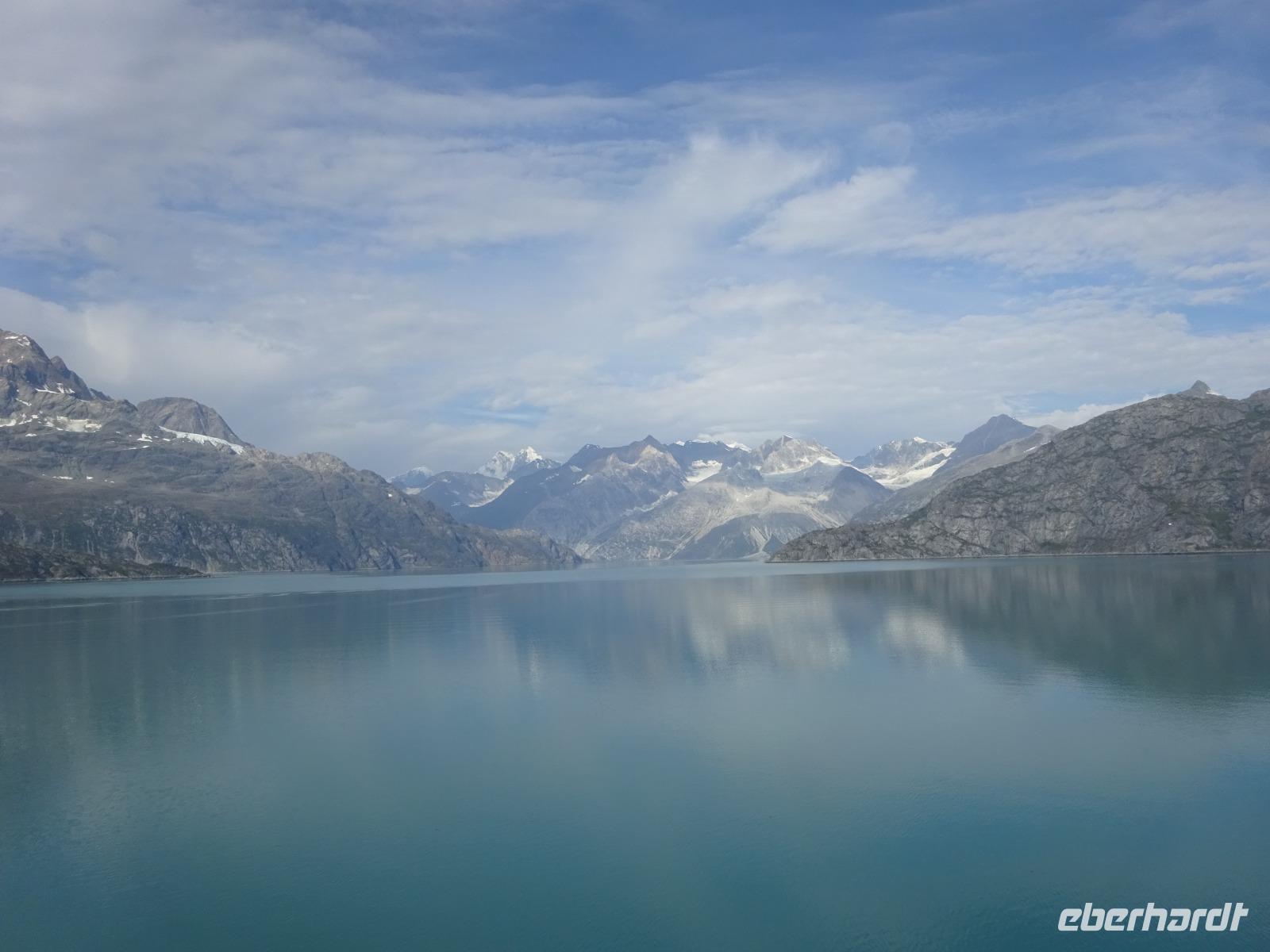 Der Glacier Bay National Park und das gleichnamige Reservat sind ein riesiges Gebiet im Südosten Alaskas. Der Glacier National Park hat die Größe von Portugal und wurde 1925 gegründet und fasst 1.045 Gletscher (davon sind nur 50 benannt). Begleitet wird unsere Reise durch den Glacier Bay von 3 Rangern, die uns spannende Geschichten und Informationen rund um den National Park und deren Wildnis liefern. Wir durchqueren die Bucht bis ganz zum Ende. Hier erwartet uns das Highlight des heutigen Tages - der Magerie Gletscher. Wir sehe ein atemberaubendes Naturspektakel, wenn der Gletscher kalbt, also Gletschereis in einer riesigen Menge tosend und brüllend in das Wasser abbricht. Auf dem Rückweg aus der Bucht machen wir noch einen Halt am Lamplugh Gletscher und erhalten auch einen Blick auf den John Hopkins Gletscher. Beide können wir am Vormittag bewundern und das Wetter ist ein echtes Geschenk. Strahlend blauer Himmel und kaum ein Lüftchen - eben wenn Engel reisen!