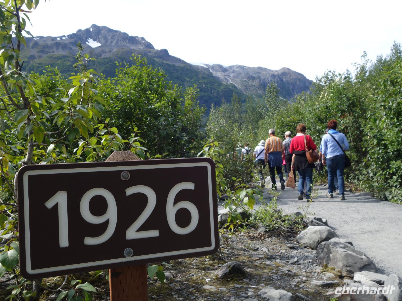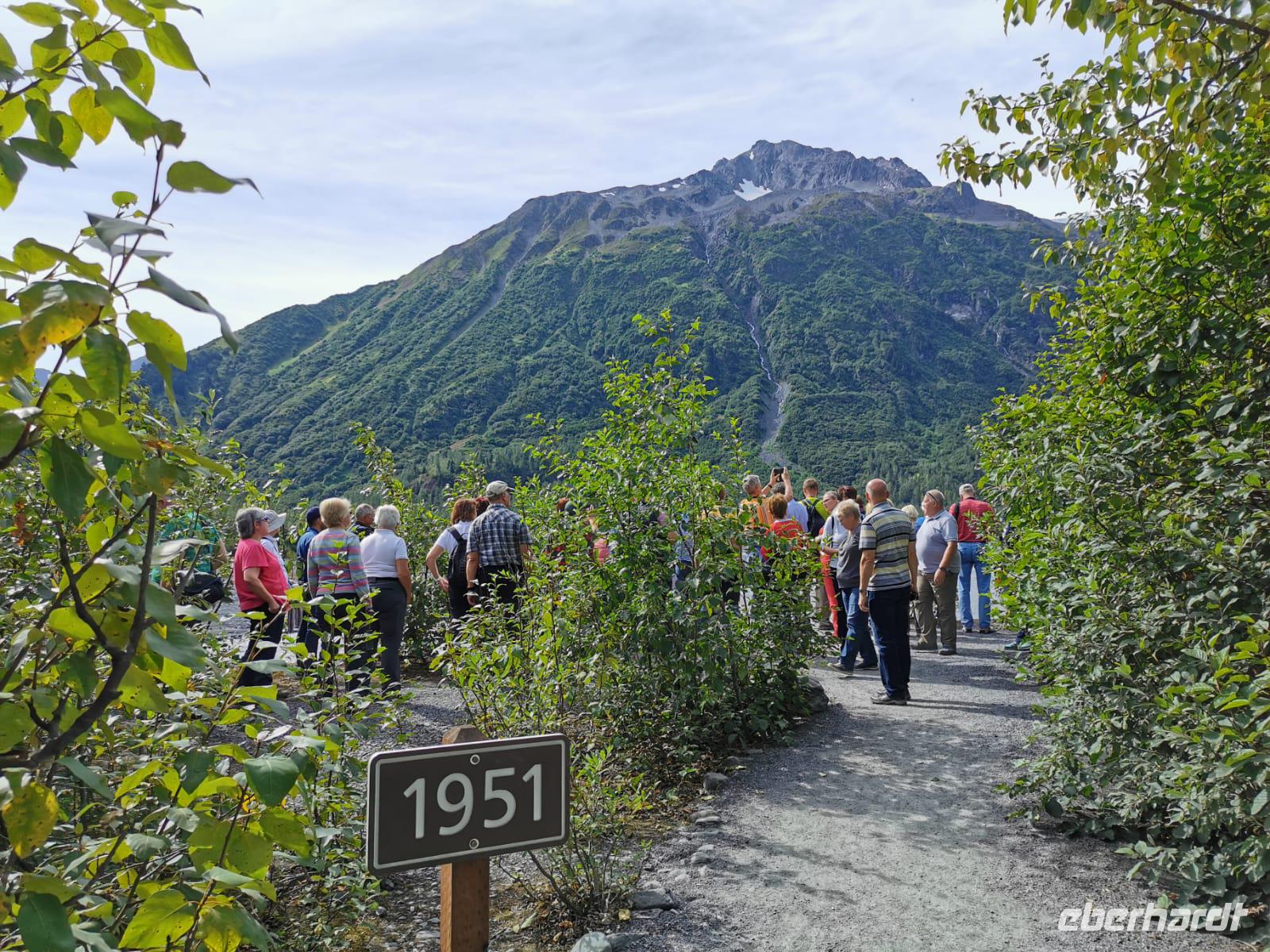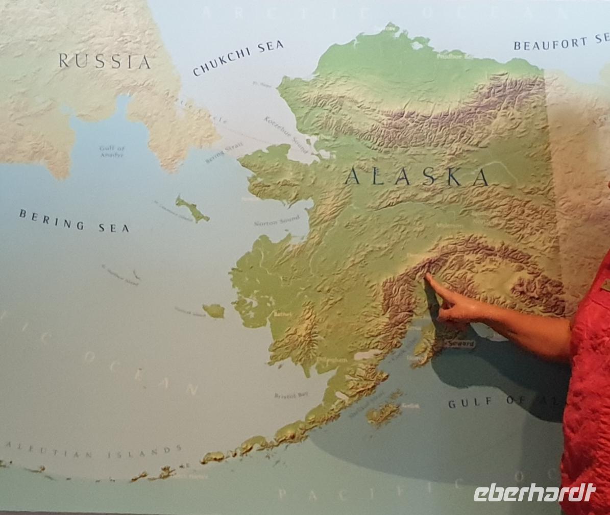 Heute verlassen wir das Schiff in Seward und beginnen den dritten Teil unserer Rundreise durch Alaska. Eingerahmt von den majestätischen Kenai Mountains liegt die etwa 25.000 Einwohner große Hafenstadt am oberen Ende der Resurrection Bay. Schon 1791 diente die Resurrection Bay dem Russen Alexander Baranov als Schutzhafen vor einem Sturm. Da er dort zu Ostern ankerte (Resurrection Day = Wiederauferstehung), benannte er die Bucht nach diesem Tag. Als erstes besuchen wir das Alaska Sea Life Center, ein Aquarium und Rehabilitationszentrum für Meerestiere. Weiter geht es zum nahegelegene Exit Gletscher im Kenai Fjords National Park. Es ist ein 800m breiter Eisstrom, den wir bei einer kleinen Wanderung näherkommen können. Den dramatischen Rückgang des Gletschers dokumentieren Markierungen mit Jahreszahlen. Heute decken Gletscher mehr als 10% der Erdoberfläche ab und beeinflussen unser Klima. Durch die schnell voranschreitende Erderwärmung werden immer mehr Flächen frei gelegt. In weniger als 10 Jahren könnte die Arktis während des Sommers komplett eisfrei werden. Eine erschreckende Bilanz und damit eine starke Veränderung unsere Klimas mit mehr Regen und wärmeren Temperaturen, die wir heute noch nicht gewohnt sind.