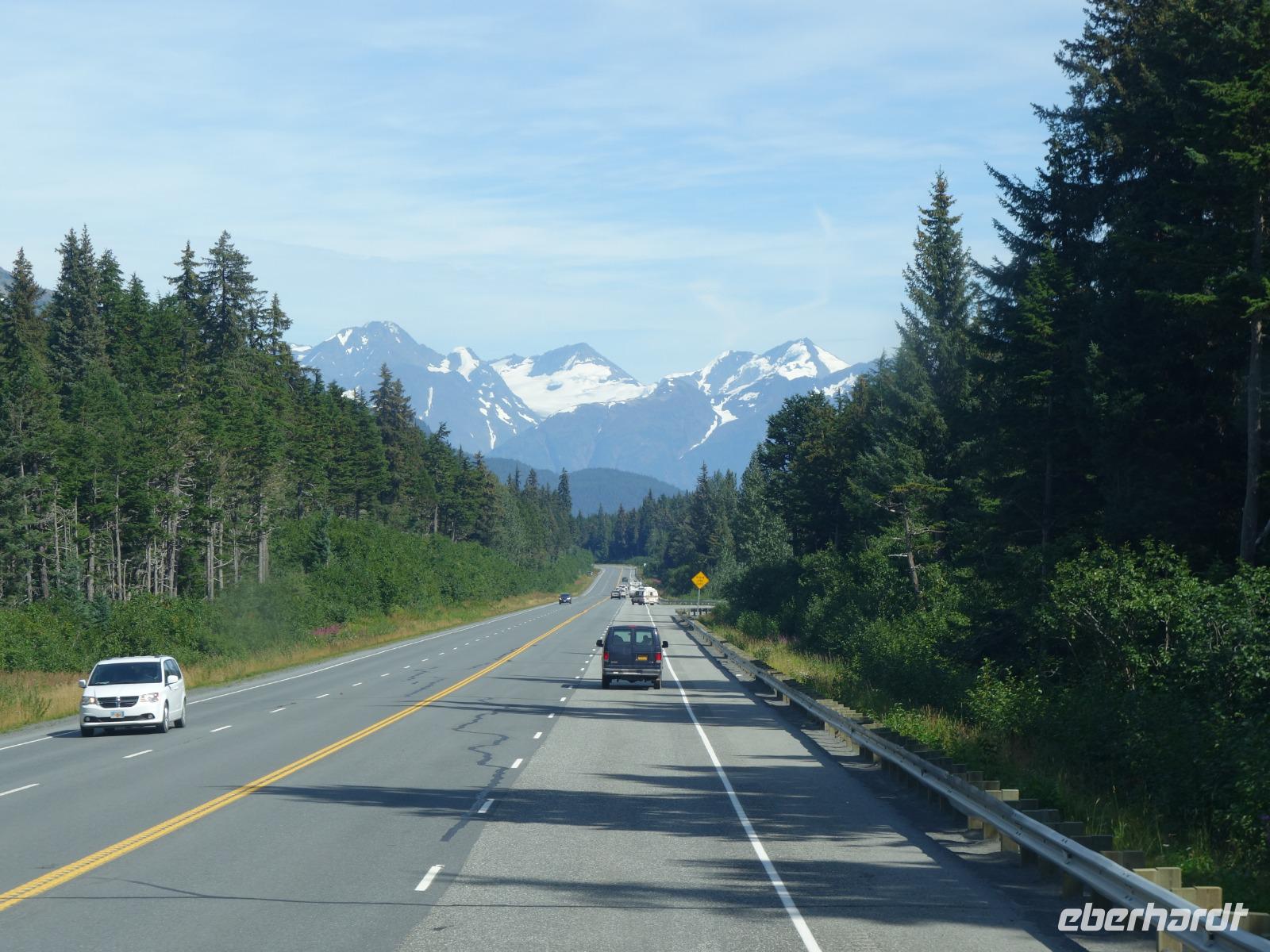 Wir durchqueren das friedliche Örtchen, das heute hauptsächlich vom Tourismus (etwa 1.25 Millionen im Jahr, davon 900.000 allein per Kreuzfahrtschiff) und Regierungstätigkeiten lebt. Juneau zählt je nach Jahreszeit 30.000 bis 32.000 Einwohner.