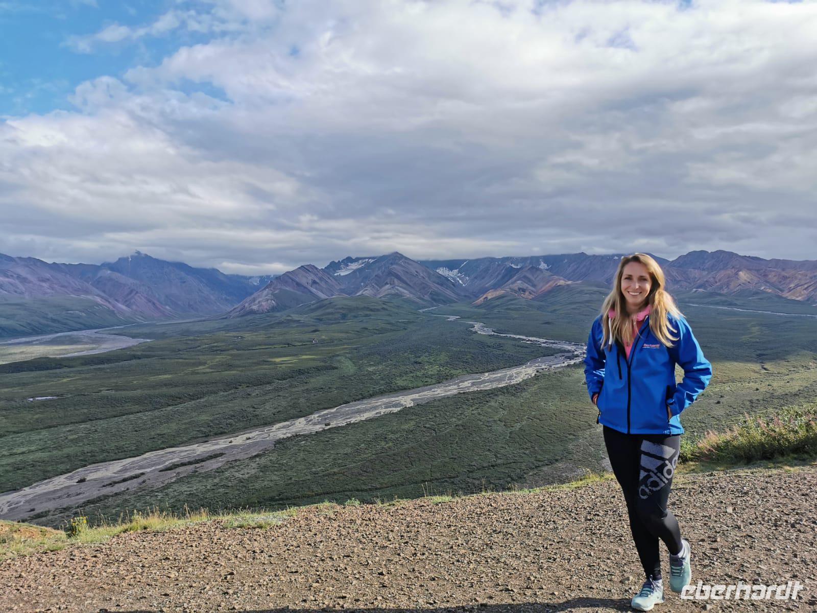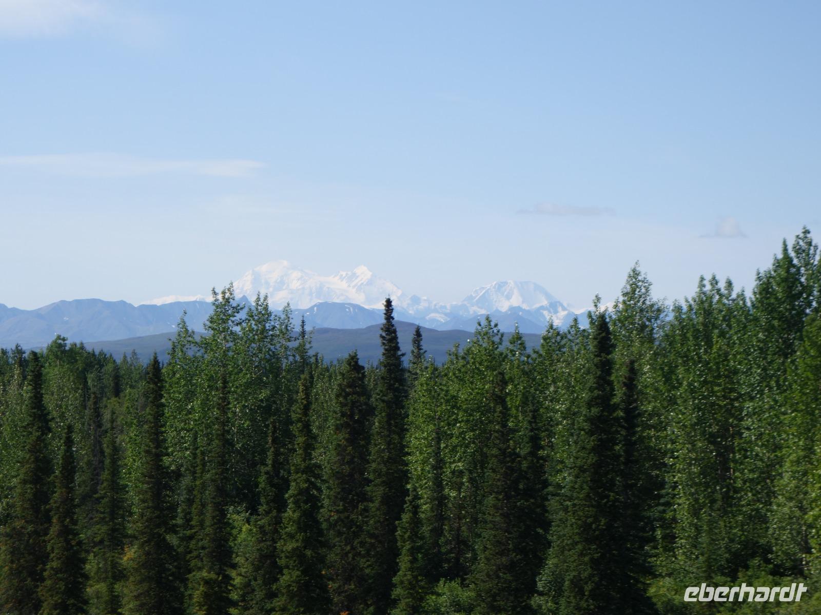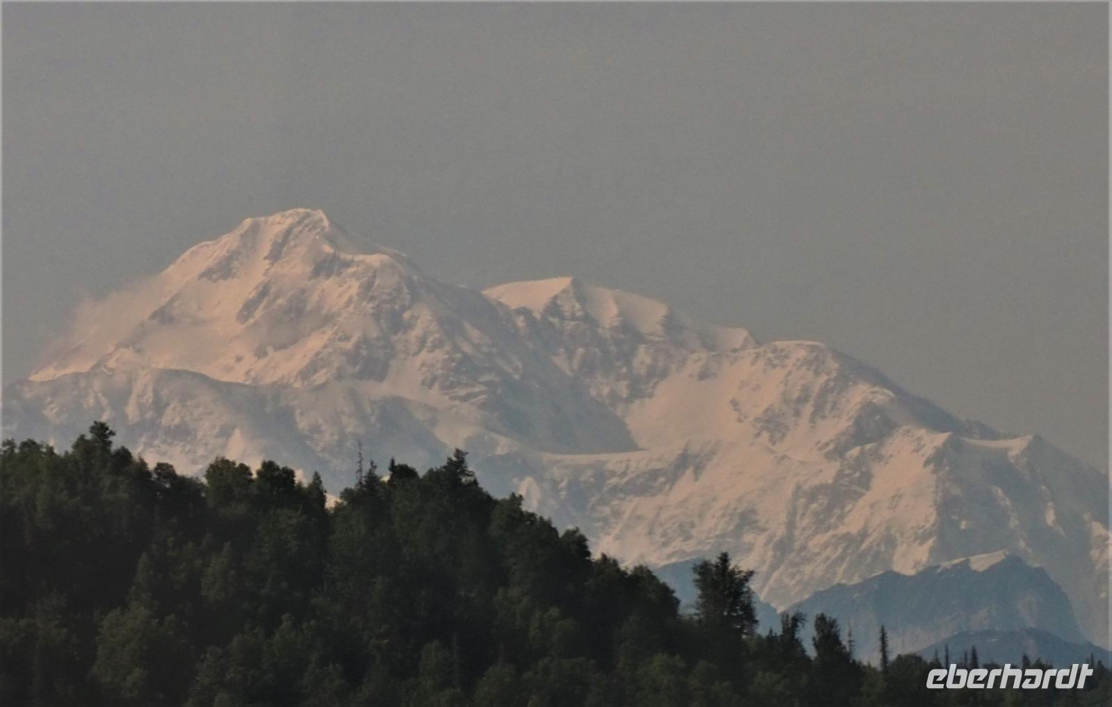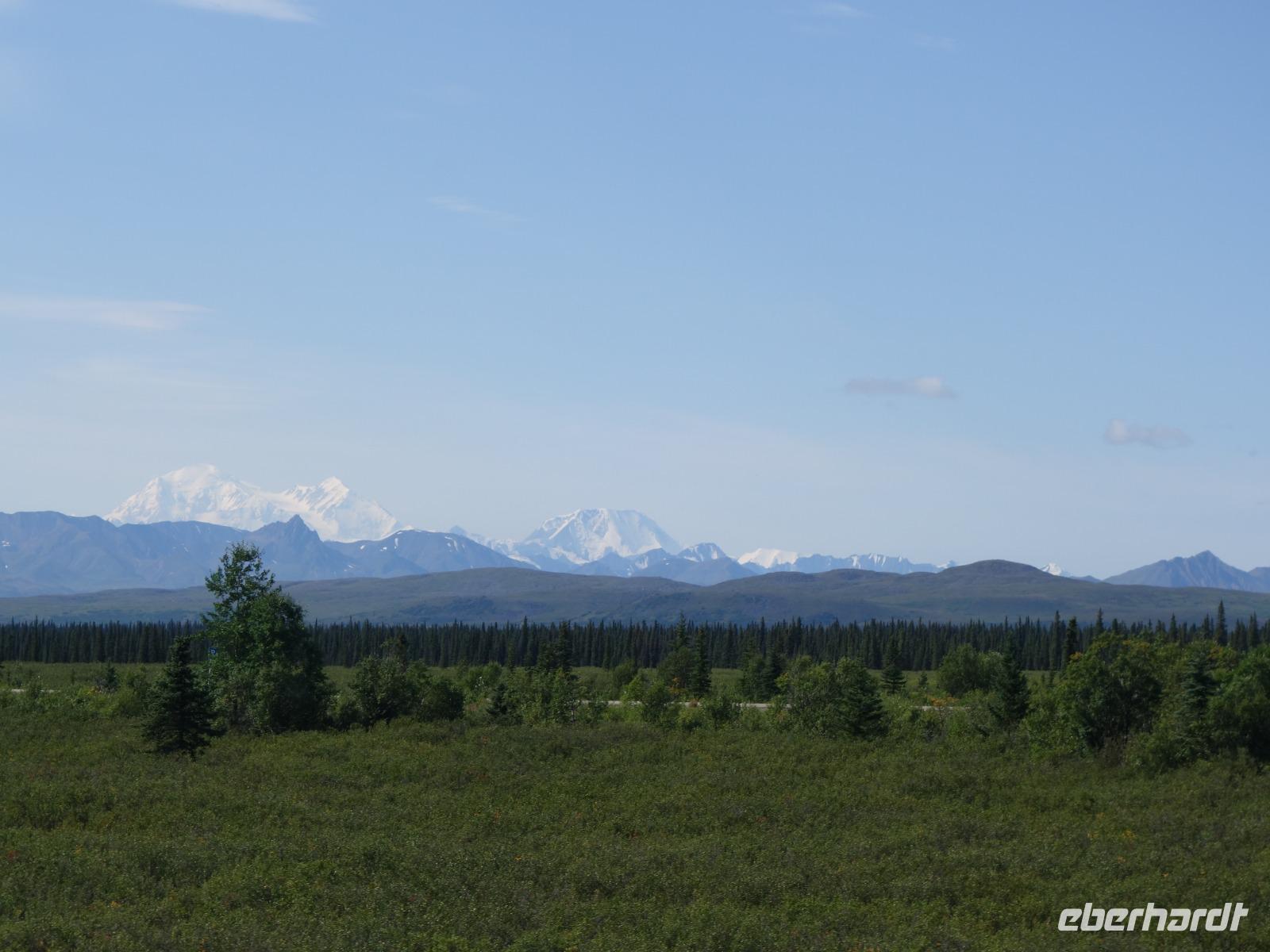 Weiter geht es Richtung Denali, wo wir morgen den Denali-Nationalpark besichtigen werden. Der eindrucksvolle Park erstreckt sich über 24.000 km² und wird dominiert vom 6.194m hohen Mount McKinley (heutig Denali), dem höchsten Berg Nordamerikas. Die Nordhälfte des Parks besteht aus herber, hügeliger Tundra, durch die in breiten Flussbetten weit verzweigte, milchweiße Gletscherströme fließen.