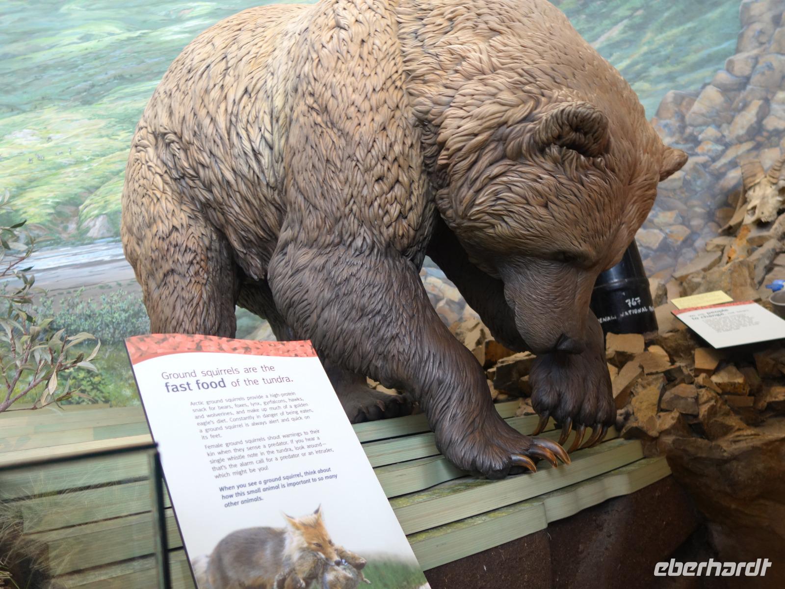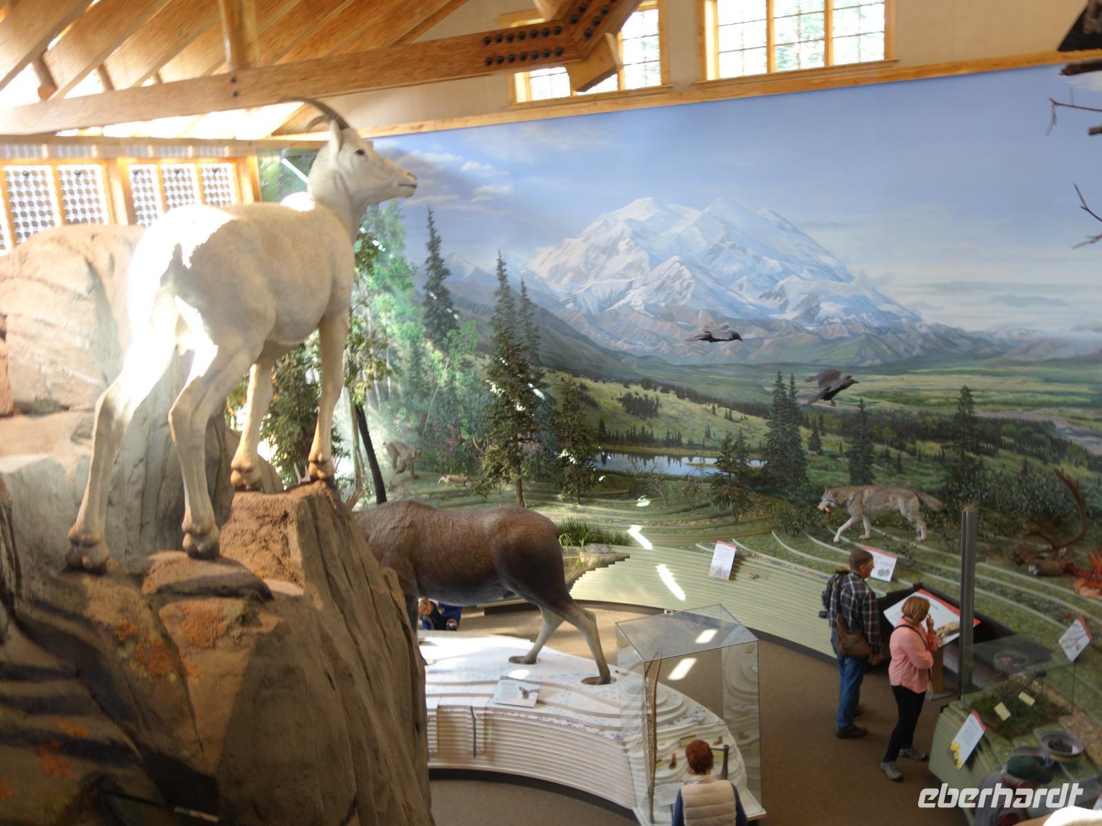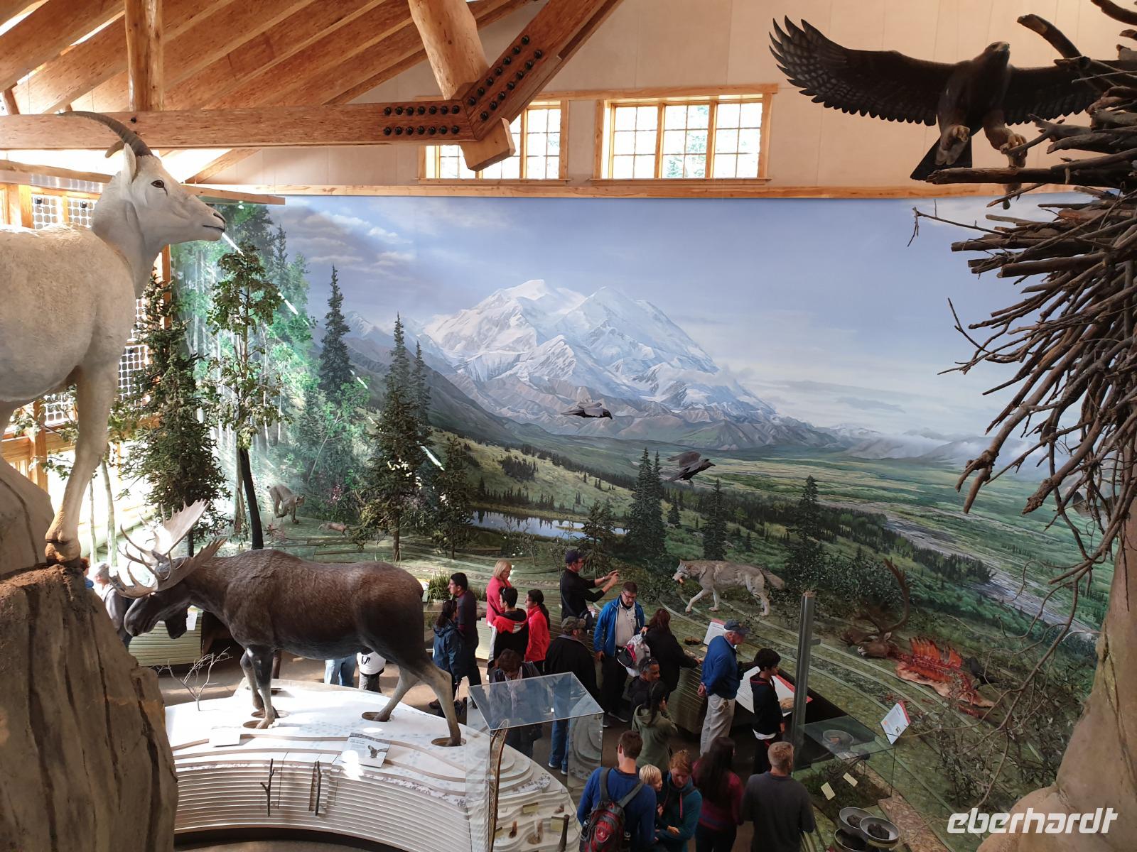 Am Vormittag fahren wir zum Bahnhof, von wo wir mit dem Zug "Alaska Railroad" vom Denali Nationalpark zurück nach Anchorage fahren. Vorher besuchen wir aber noch das Denali Besucherzentrum direkt gegenüber vom Bahnhof. Hier gibt es noch eine Reihe an Informationen über den Nationalpark und der Tierwelt in der Wildnis. Auf jeden Fall ein Besuch wert.