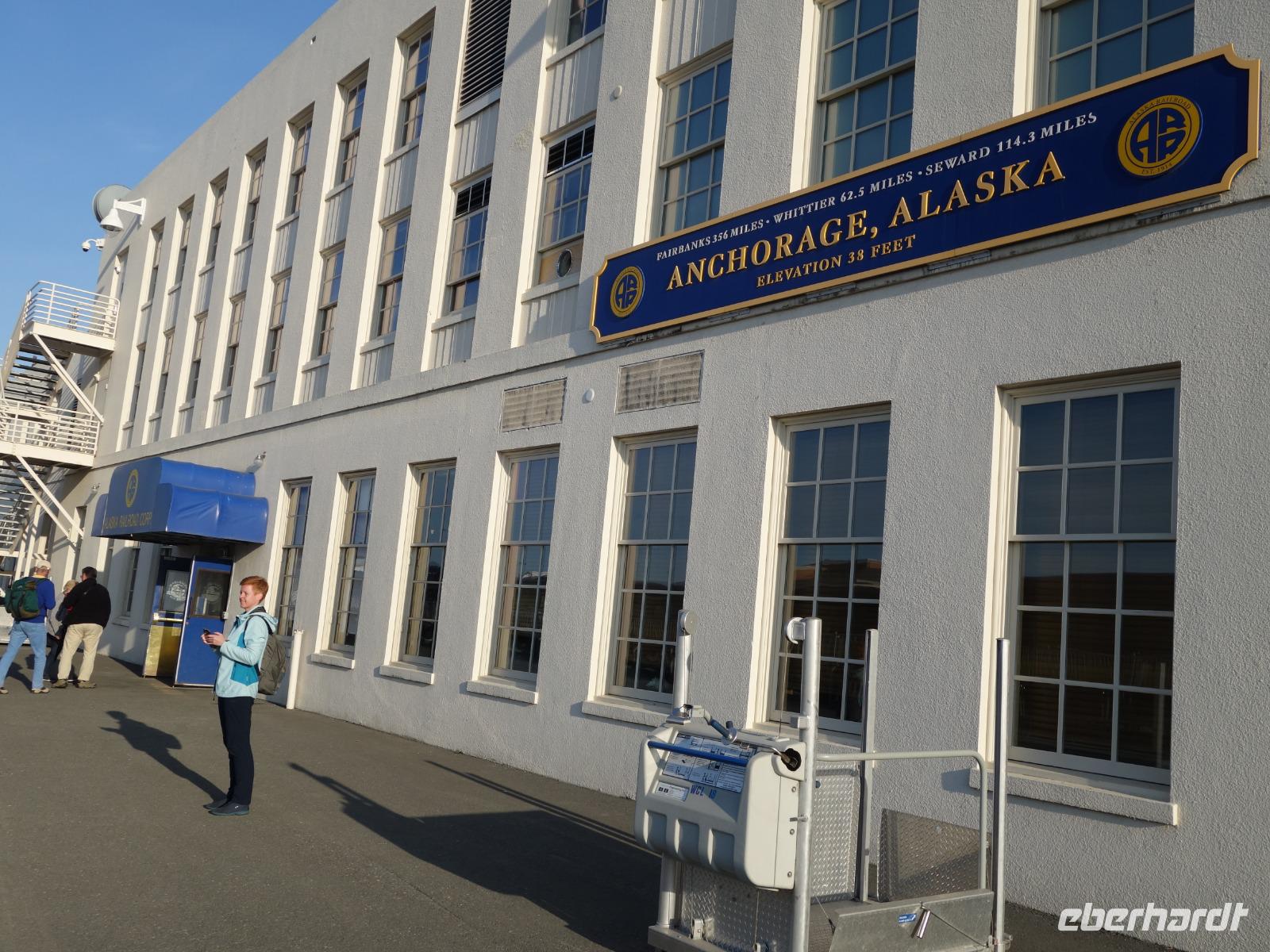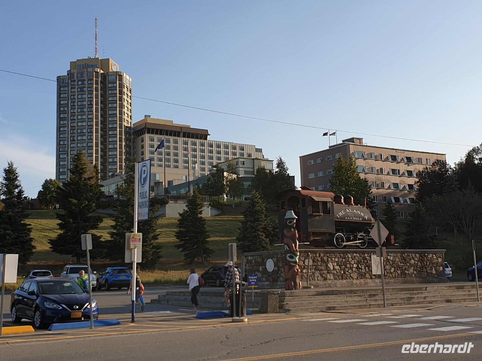 Wir erreichen Anchorage am Nachmittag. Mit über 300.000 Einwohnern ist Anchorage die größte Stadt in Alaska (entspricht 40% der Gesamtbevölkerung Alaskas). Eine Statue des britischen Seefahrers James Cook ziert die Stadt und erinnert an sein erstes Eintreffen 1778 auf der Suche nach der Nordwestpassage.