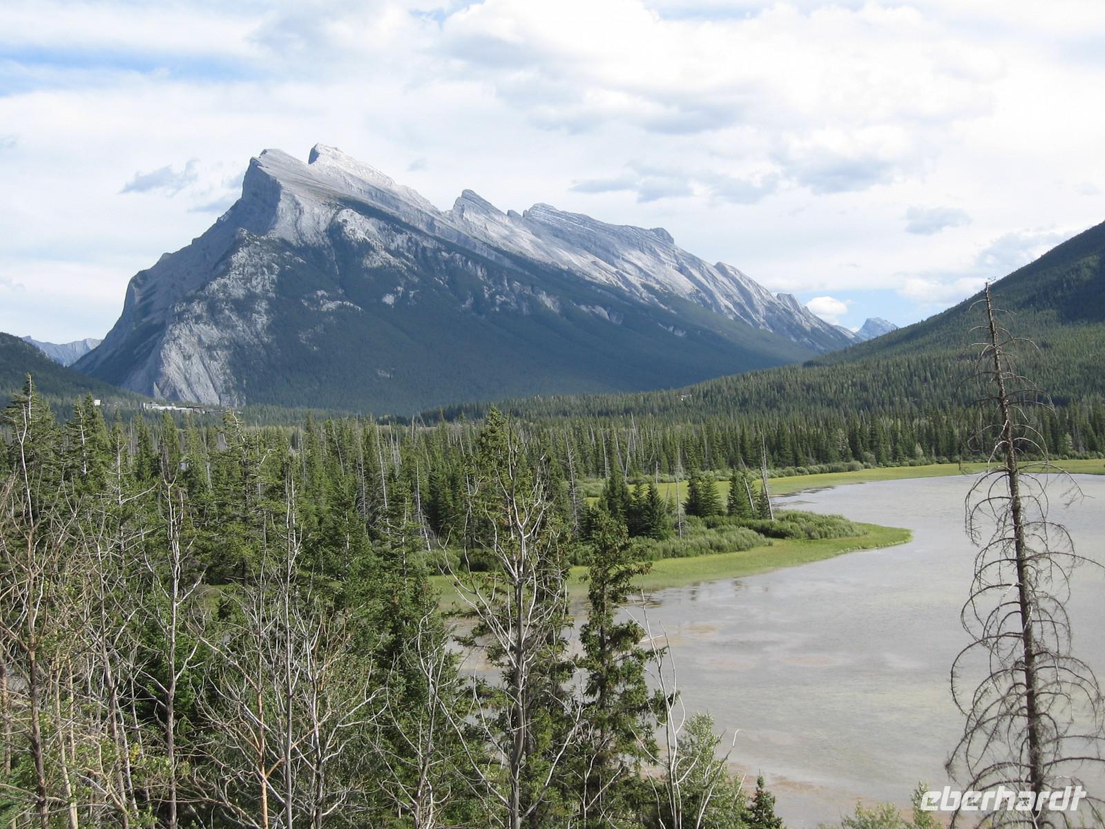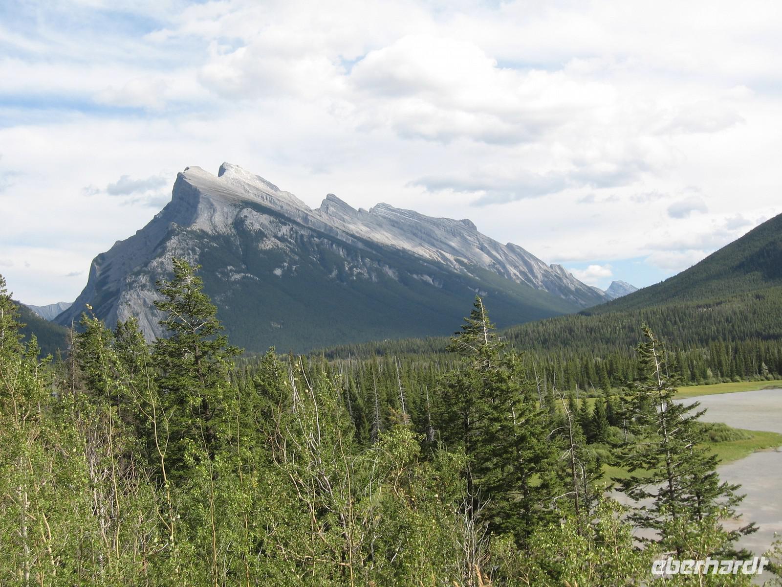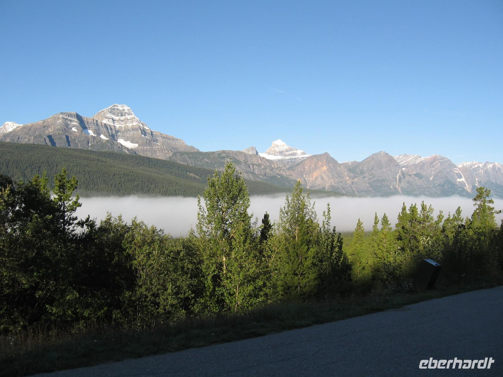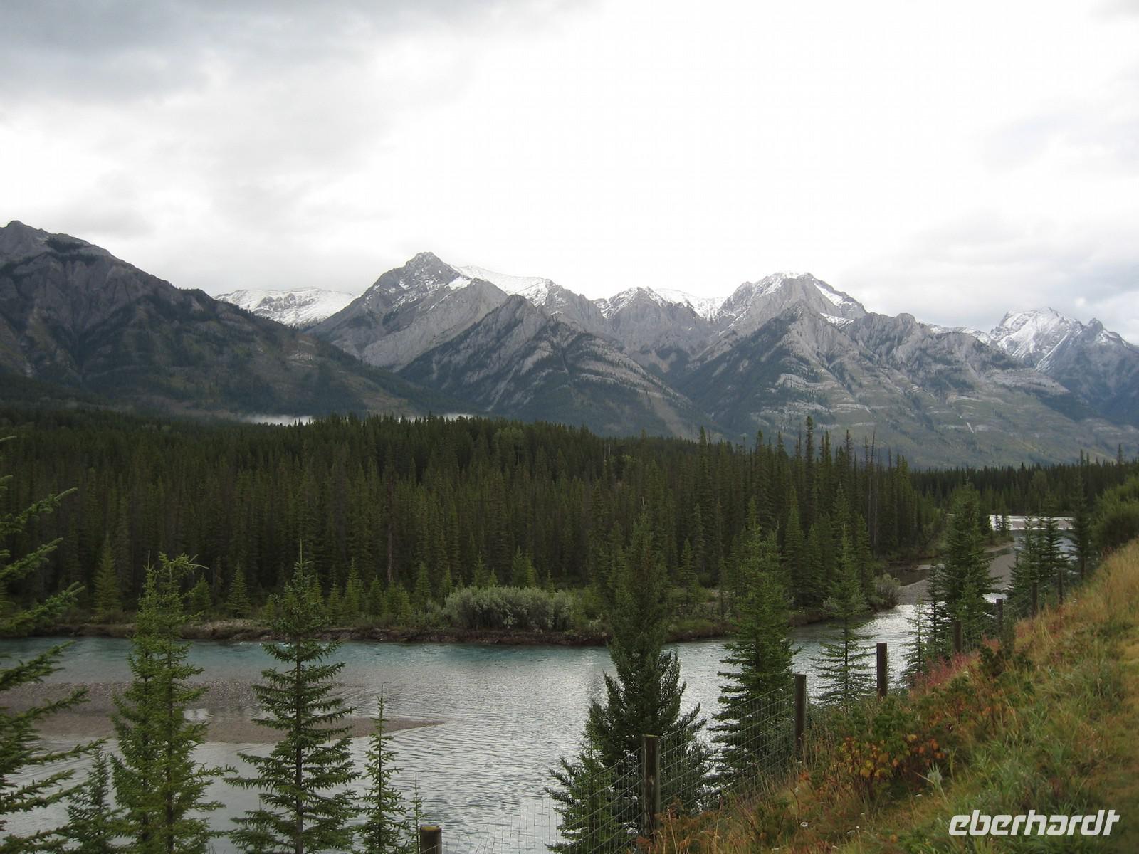 Auf Grund der Streiks des Lufthansa-Kabinenpersonals am Vortag wollte Eberhardt TRAVEL allen Unwägbarkeiten aus dem Weg gehen. Die Gäste von zwei Kanada Reisegruppen fuhren also von Dresden aus mit einigen Zustiegen entlang der Autobahn nach Frankfurt/Main. Den Flughafen erreichten wir pünktlich und der Check in bei Air Canada ging problemlos von statten. Allerdings sind wir dann etwa eine Stunde später abgeflogen, wegen zu viel Verkehr in der Luft. Vielleicht noch eine Auswirkung vom Vortag. So erreichten wir Calgary nach einem ruhigen Flug und am Flughafen wurden wir nach einer unkomplizierten Einreise von unserem örtlichen Reiseleiter Barry erwartet. Er stammt aus der Schweiz, lebt aber schon über 30 Jahre in Kanada und kann somit als echter Kanadier gelten. Unser Busfahrer heißt Mohsen und stammt eigentlich aus dem Iran, beide haben auch im letzten Jahr schon unsere Wandergäste betreut. Auf der Fahrt vom Flughafen nach Banff bekommen wir schon mal einen ersten Eindruck von der Weite des Landes. Auf dem Weg sehen wir auch einige der Sportstätten der Olympischen Winterspiele von 1988. In Banff angekommen beziehen wir unsere Zimmer im „Irwines Mountain Inn". Nach der langen Reise erfasst den einen oder anderen der Gruppe schon etwas die Müdigkeit und so geht es nach einem guten Abendessen schnell ins Bett.