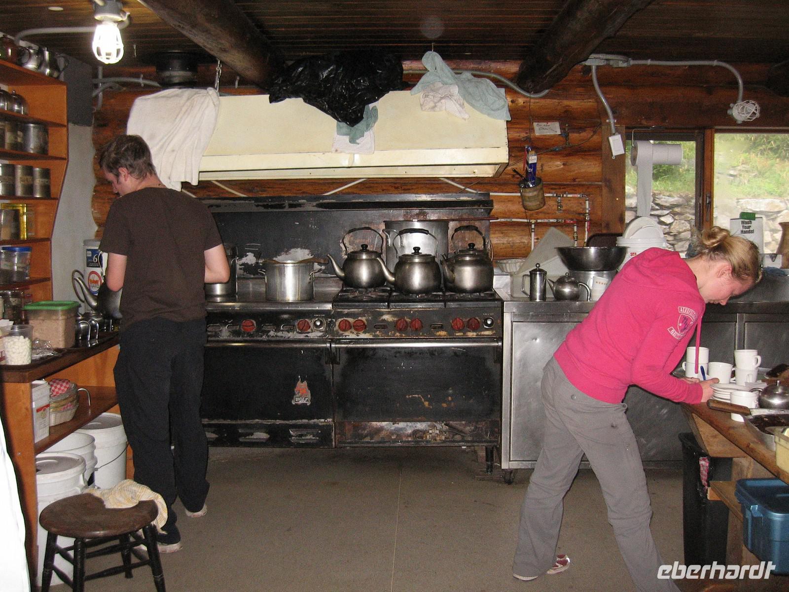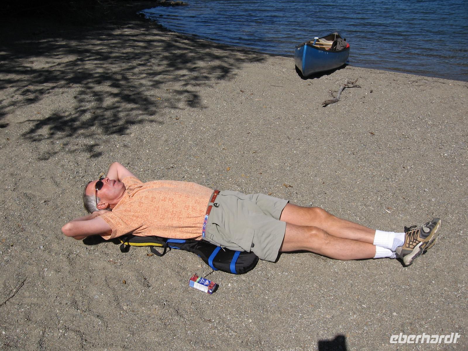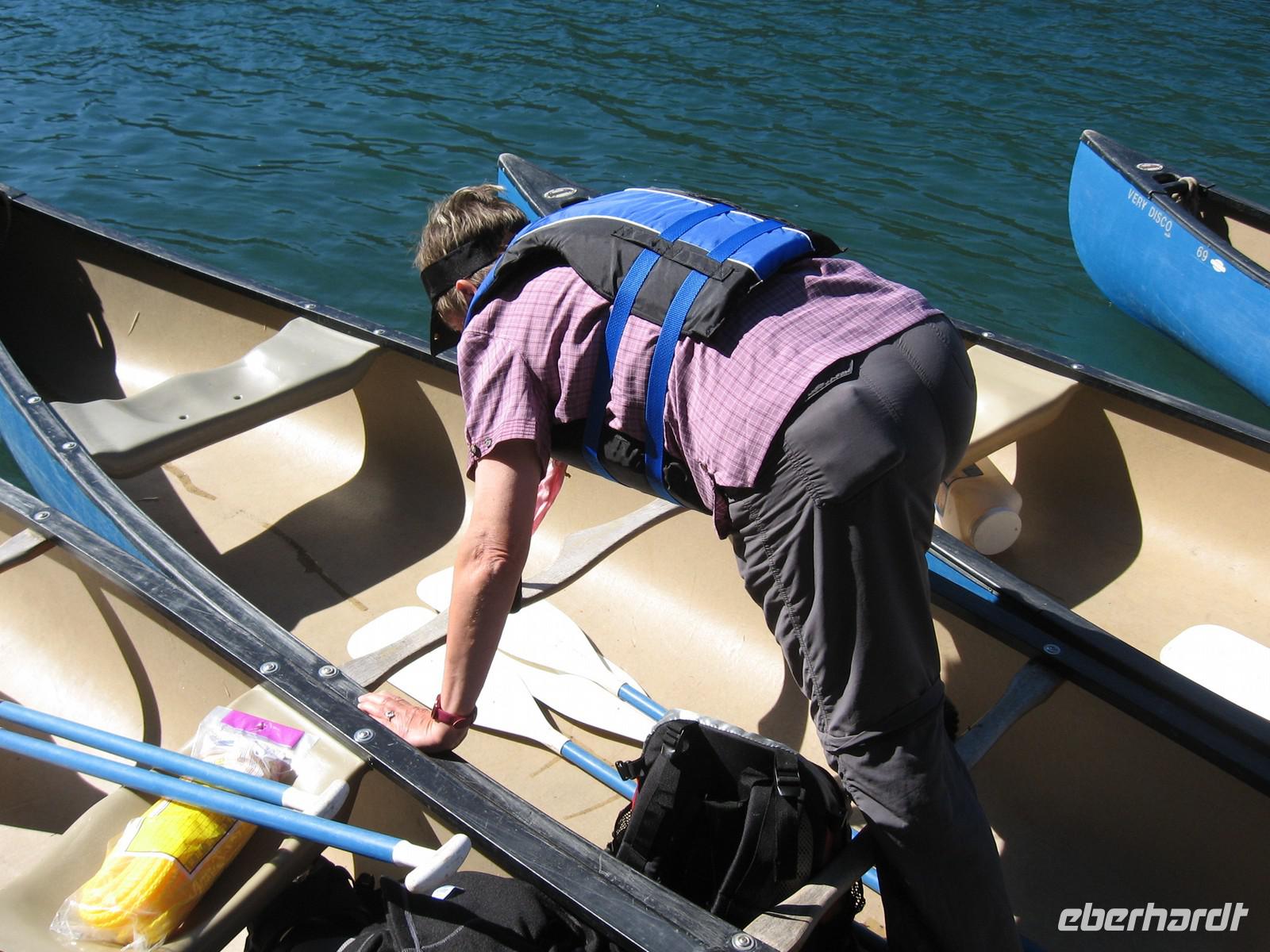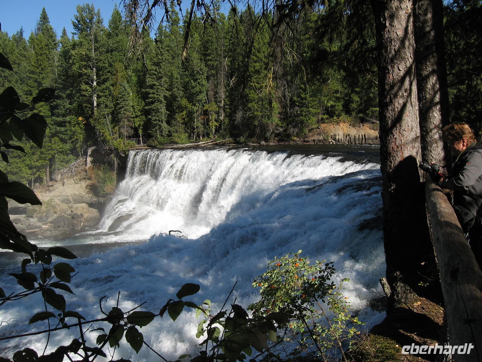 Wieder begrüßt uns die Sonne und nach einem tollen Frühstück im unserem Hotel, der Clearwater Lodge, fahren wir erstmal zur Wells Gray Guest Ranch. der Besitzer, Mike, eigentlich Österreicher, sorgt heute dafür das es uns an nichts fehlt. Auf dem Weg zum Clearwater Lake gibt es noch einen Fotostopp auf dem Green Mountain und an den Dawson Falls. Bei erreichen des See wechseln wir das Verkehrsmittel. Immer zwei Personen in einem Kanu paddeln wir über den See. Das geht besser als erwartet auch wenn manchmal die Richtung nicht ganz stimmt. Am anderen Ufer erwartet uns dann ein Picknick in Wild West Art. Auf dem Holzgrill werden Würstchen zubereitet, wer mal Holz hacken will kann das hier gut tun. Zum Schluss wird daraus eine Art Burger, ich nenne ihn mal kurzerhand „Clearwater Lake Hot Dog Burger". Wir lassen es uns so richtig gut gehen und genießen die Landschaft, die Ruhe und den Service. Leider müssen wir irgendwann wieder zurück, das paddeln fällt uns jetzt schon wesentlich leichter. Nach dem aufräumen der Boote geht es zurück Richtung Ranch. Beim Fotostopp an den Bailey's Pots können wir Lachse springen sehen. Die Fische sind auf dem Weg in ihre Laichgebiete und Barry erklärt uns den Lebenszyklus der Lachse. Der Helmcken Fall, ein weiterer Stopp, stürzt sich rund 145 m in die Tiefe, beeindruckend. Auf der Wells Gray Ranch bei Mike kann man auch einen Ausritt machen, was einige von unserer Gruppe fakultativ machen. Die nicht reitenden machen sich noch auf eine kleine Wanderung in Richtung des Mous Fall. Ein Erlebnisreicher Tag lässt uns zufrieden nach dem Abendessen in unsere Betten fallen.